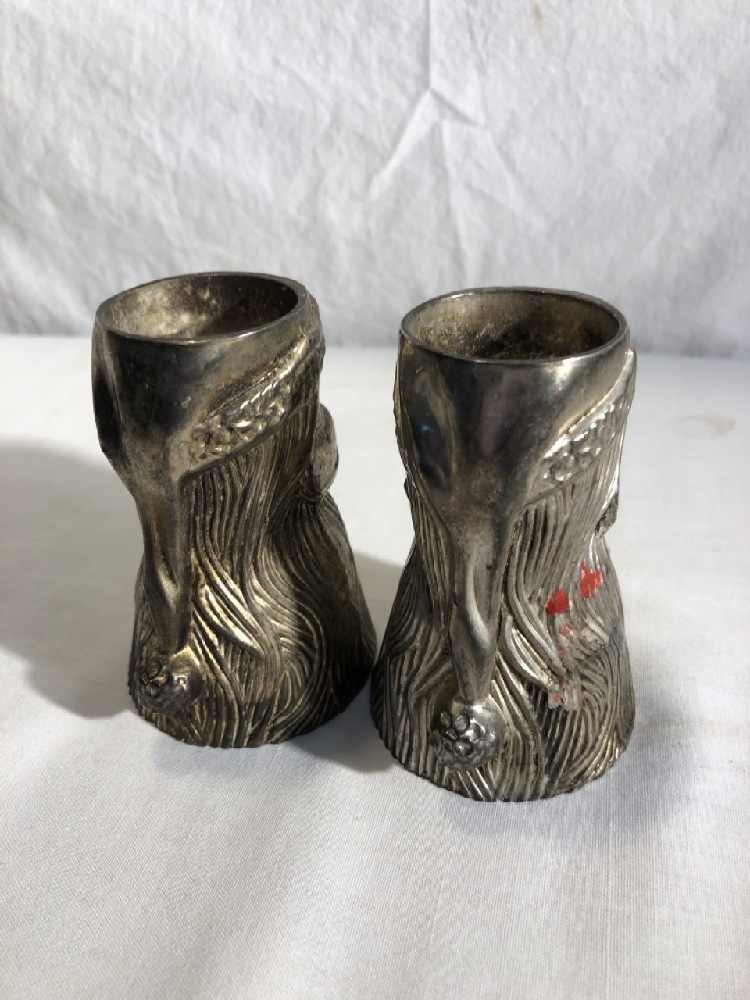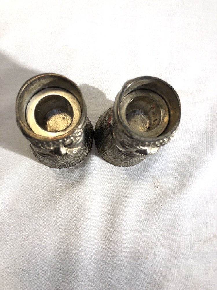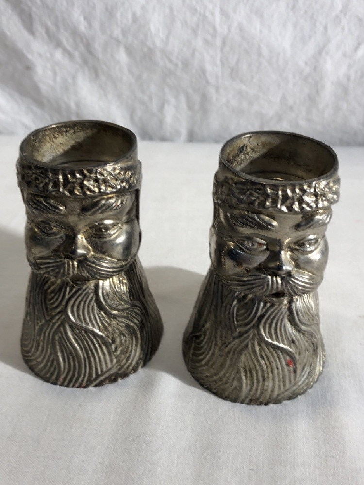 Pr. Chrome Santa Clause Candlestick Holders ~ 3 1/2” Tall
