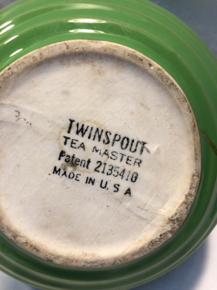 Twinspout Teamaster Teapot ~ USA 1940s ~ Emerald Green ~ Patent 2135410