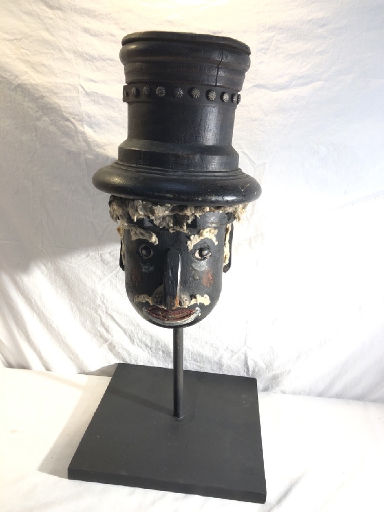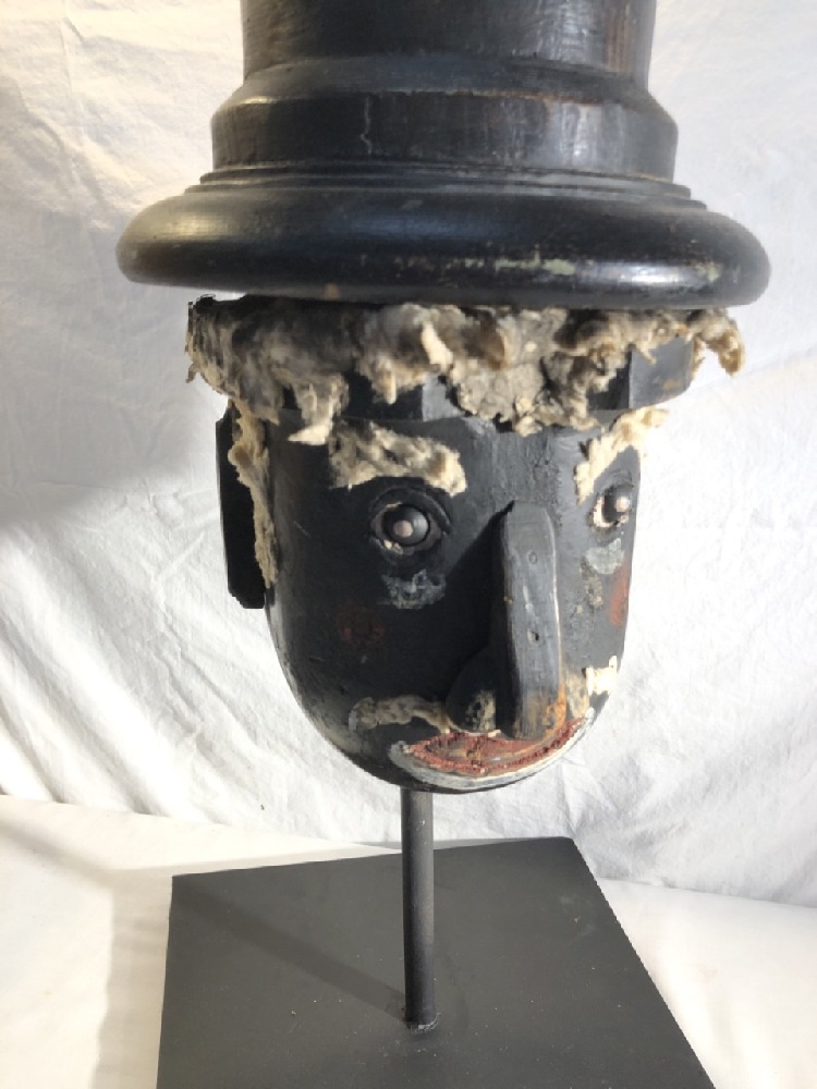 Wooden Folk Art Head on Stand~ Black Americana ~ 23” Tall