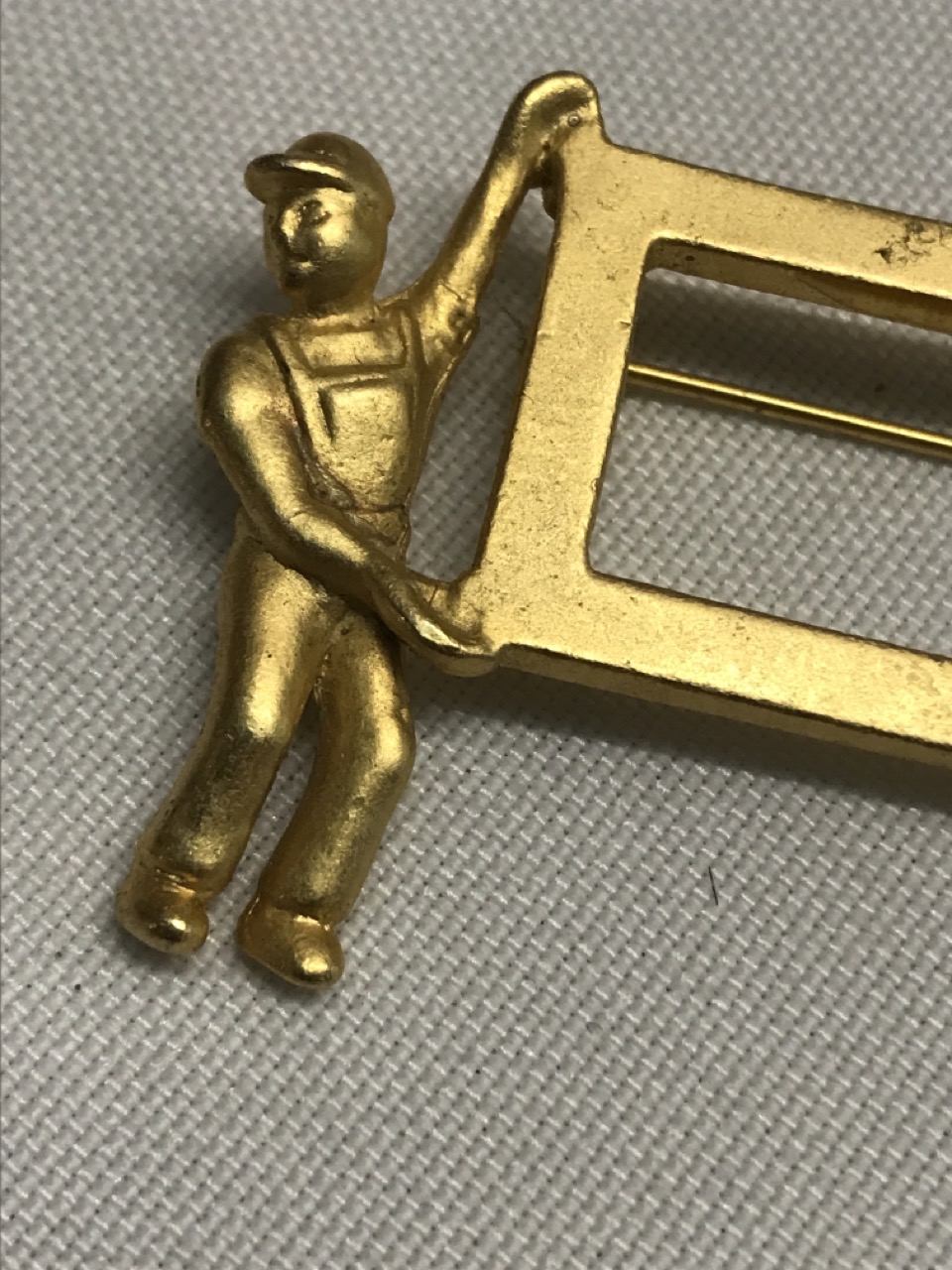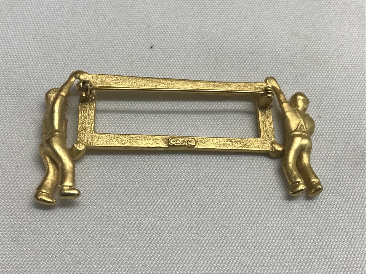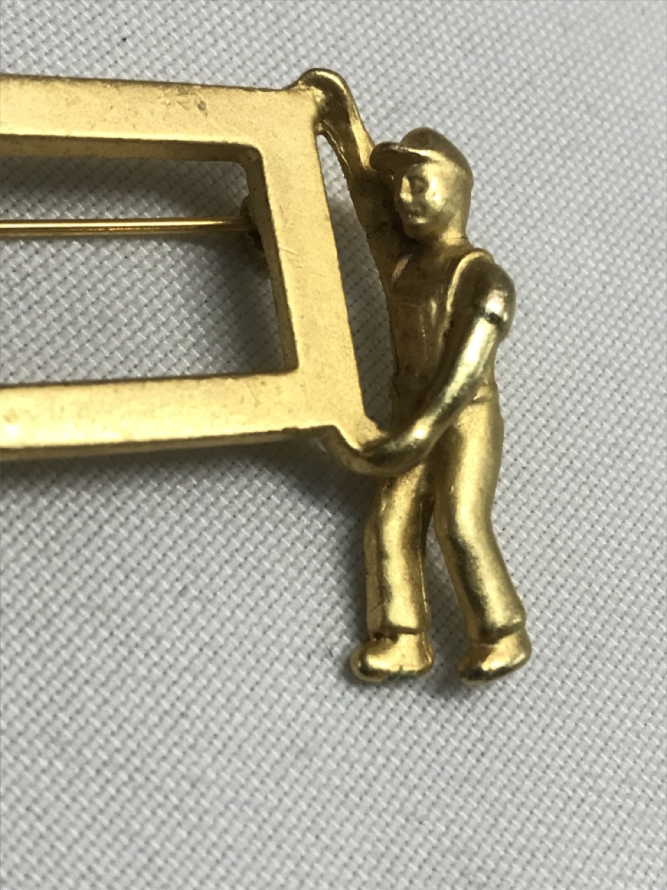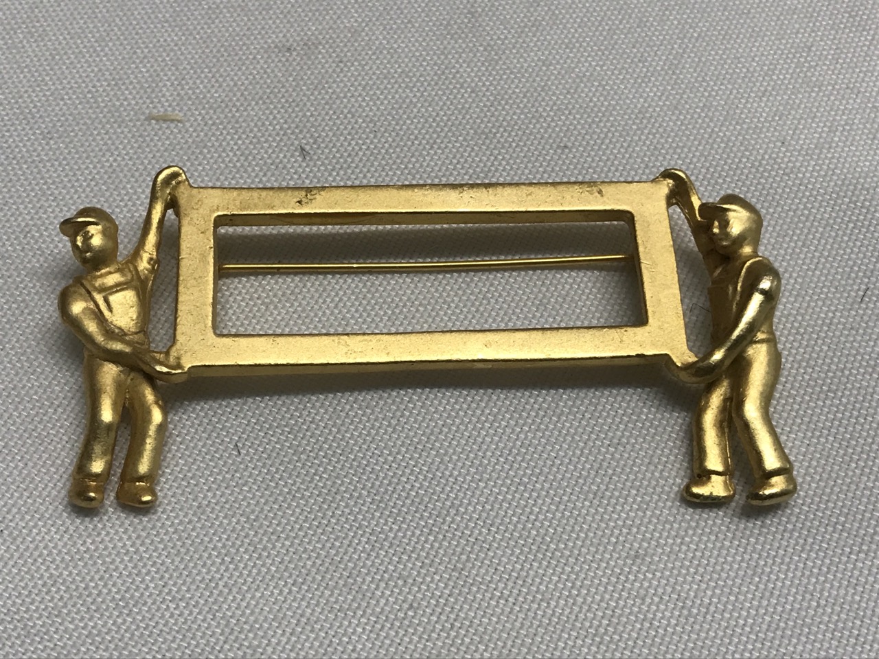 Moving Company Men Brooch Signed AJC - 2 3/4” x 1 3/4”