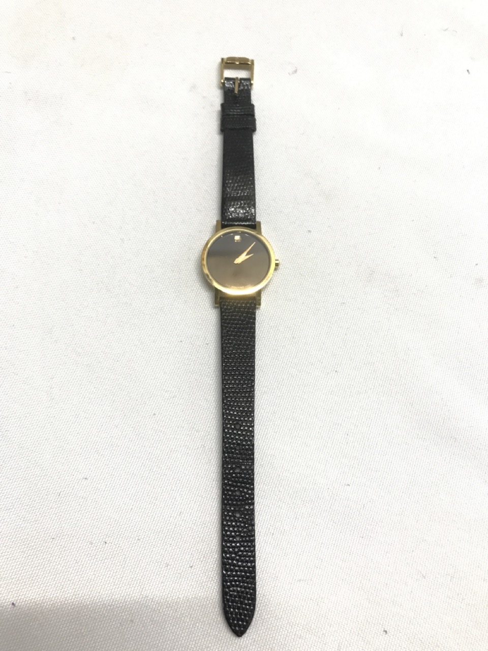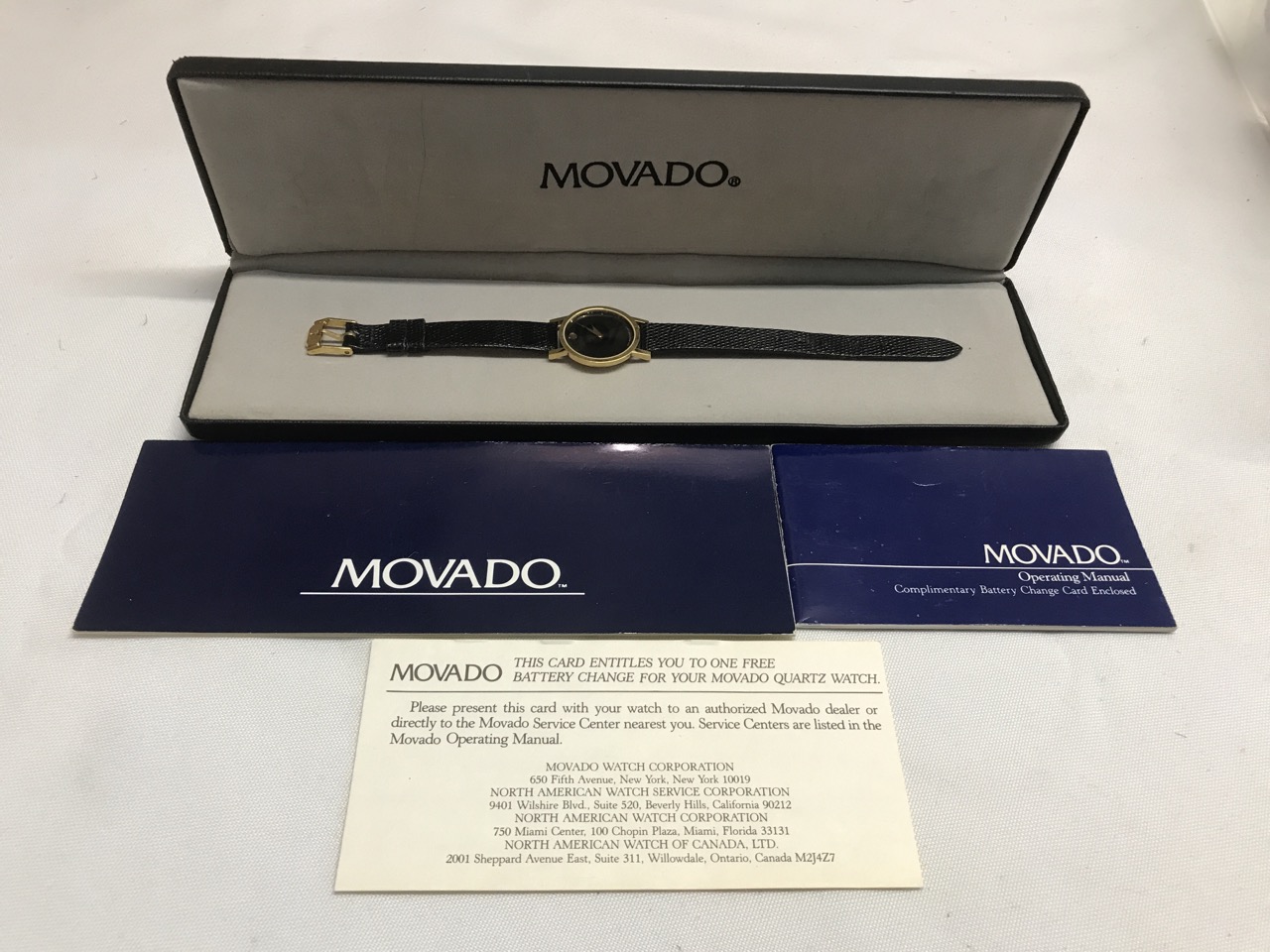 Vtg. Movado Swiss Watch- Recent Jeweler Cleaned & Maintained(Works)- Ladies- Gold Tone - 550627 - Black leather Band