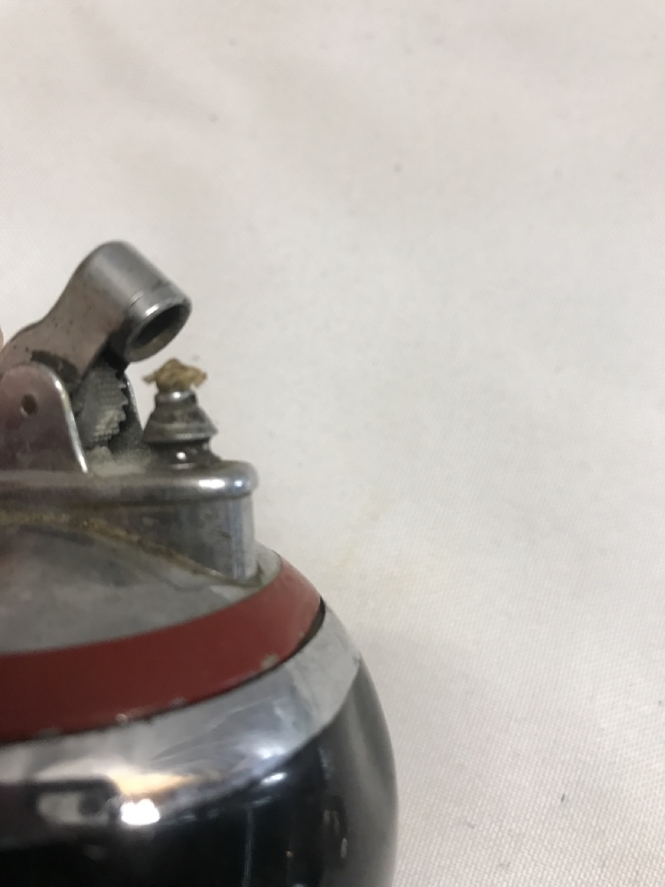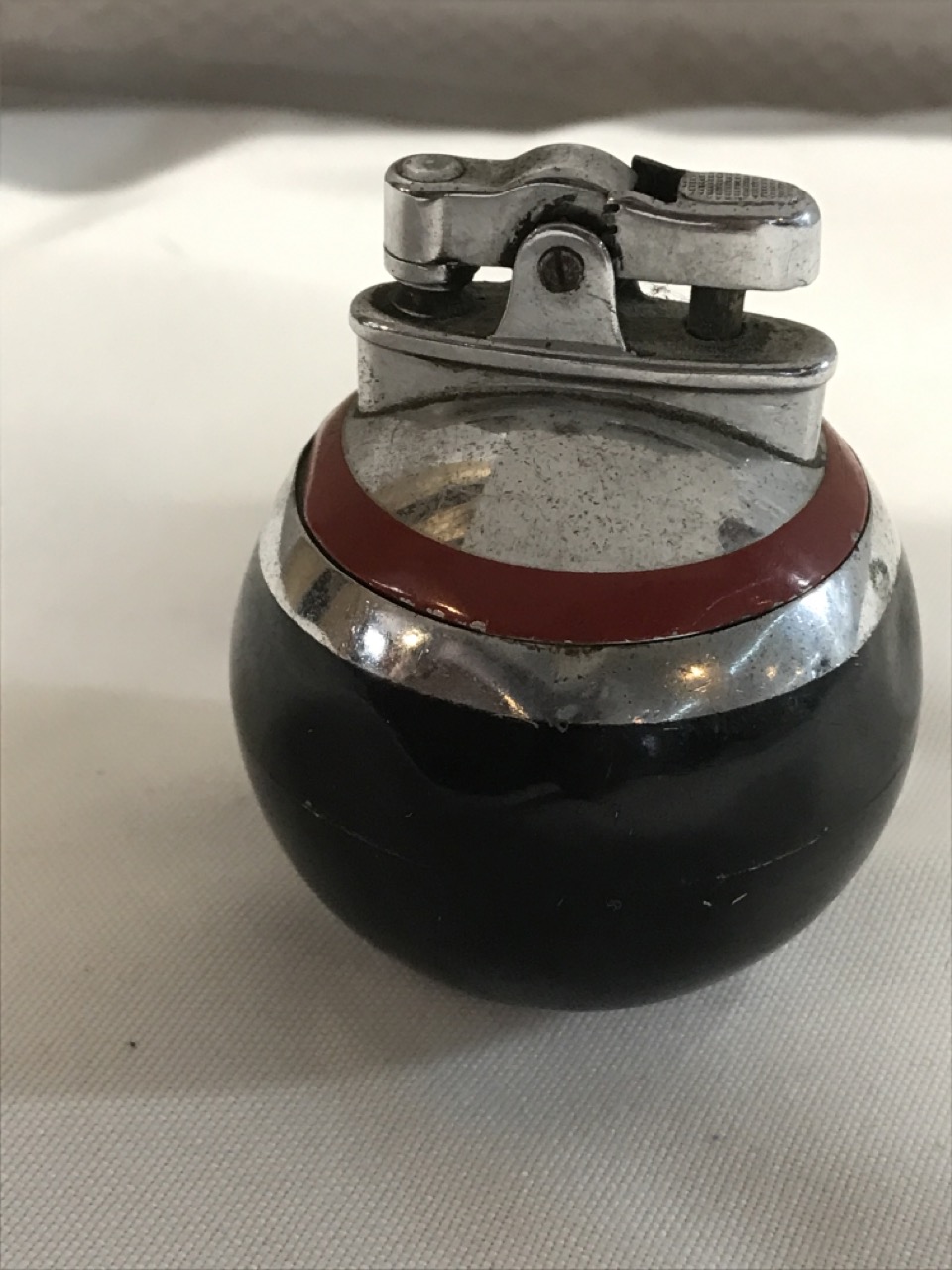 Ronson USA Art Deco lighter - Red and Black Lacquer, Steel Ball- 3" T, Ball is 2" T