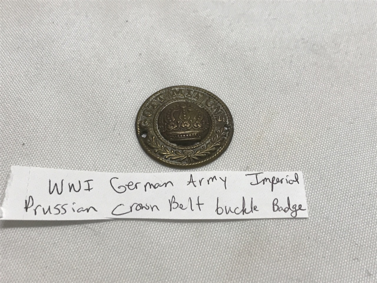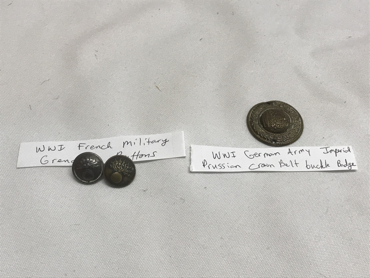 WWI Military Buttons - German Army Imperial Prussian crown Belt buckle Badge and French Grenadiers Buttons