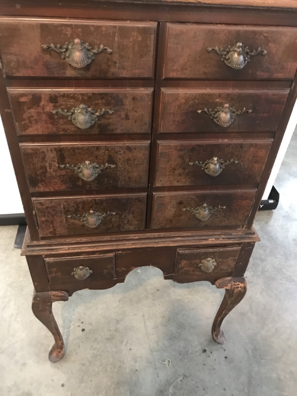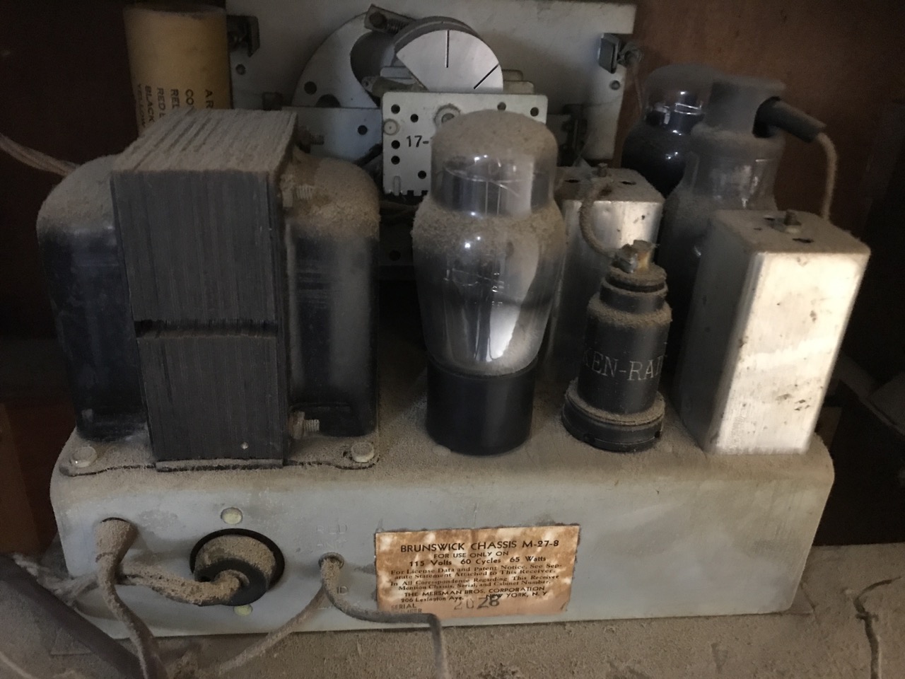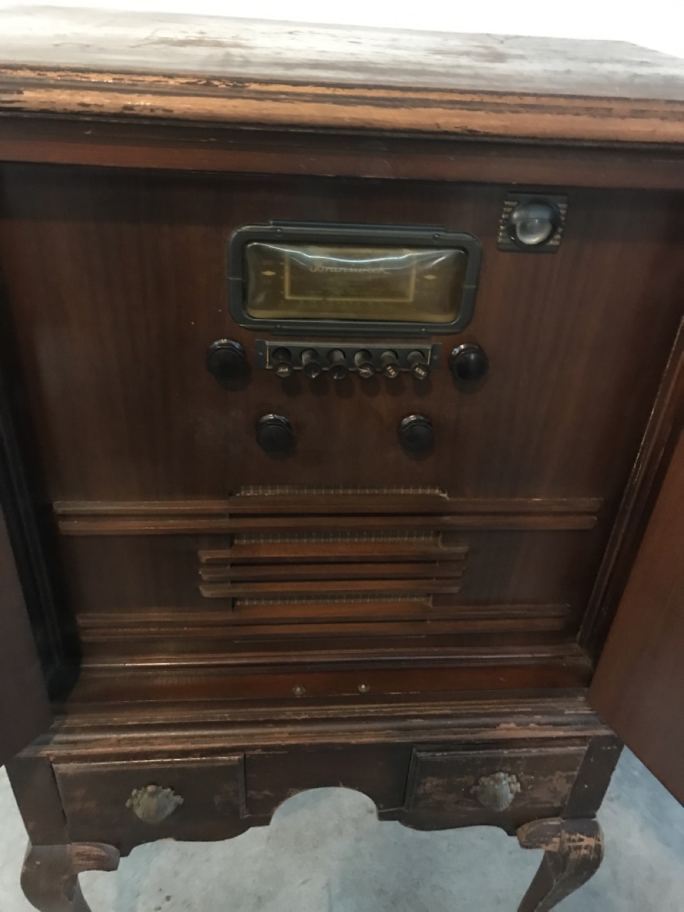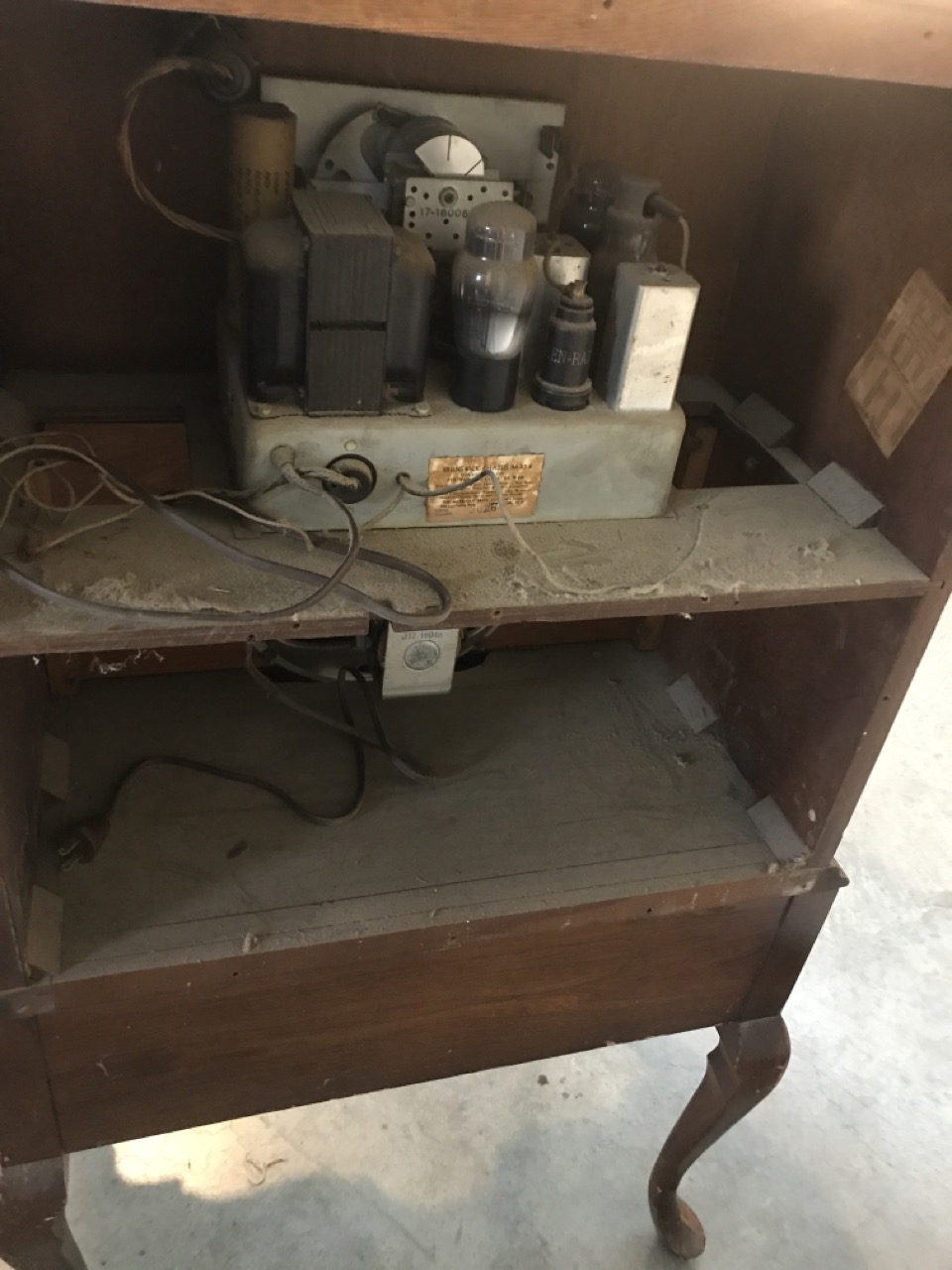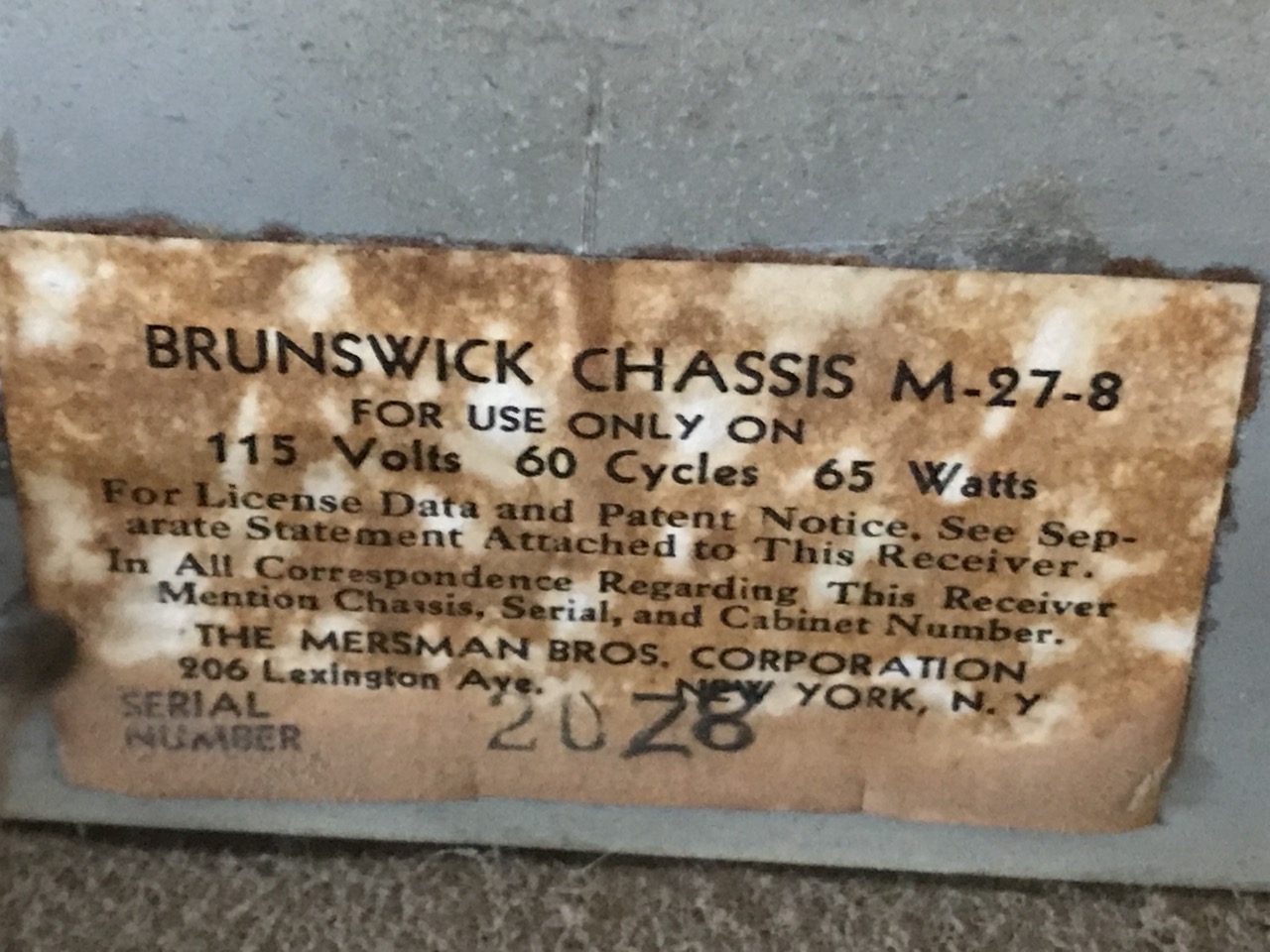 Brunswick Shortwave Radio Chasis M-27-8/ Serial # 2028 in Queen Anne Cabinet w/ Brass Handles- Comes on & Hums- 42” T x 24” W x 14” D