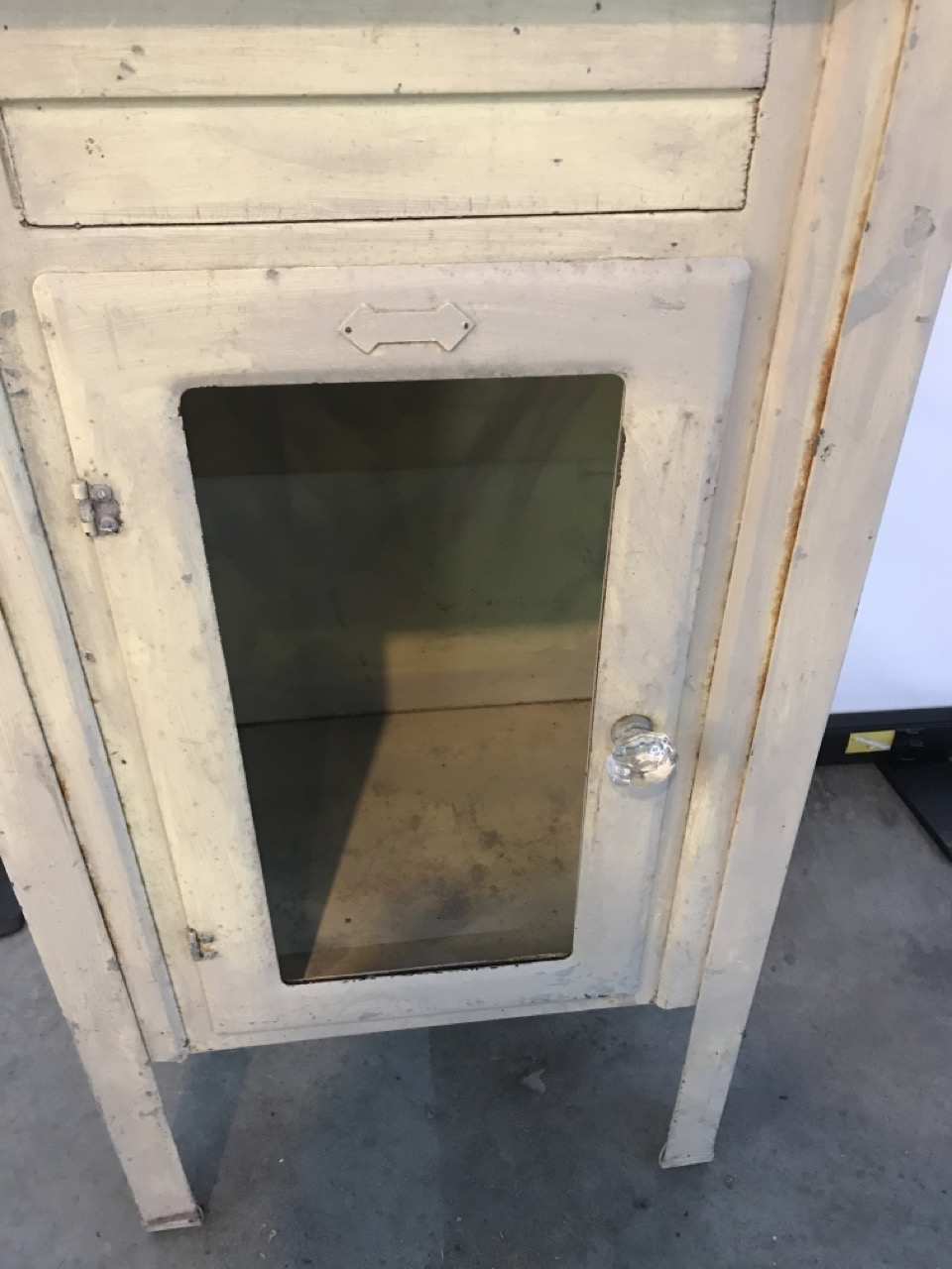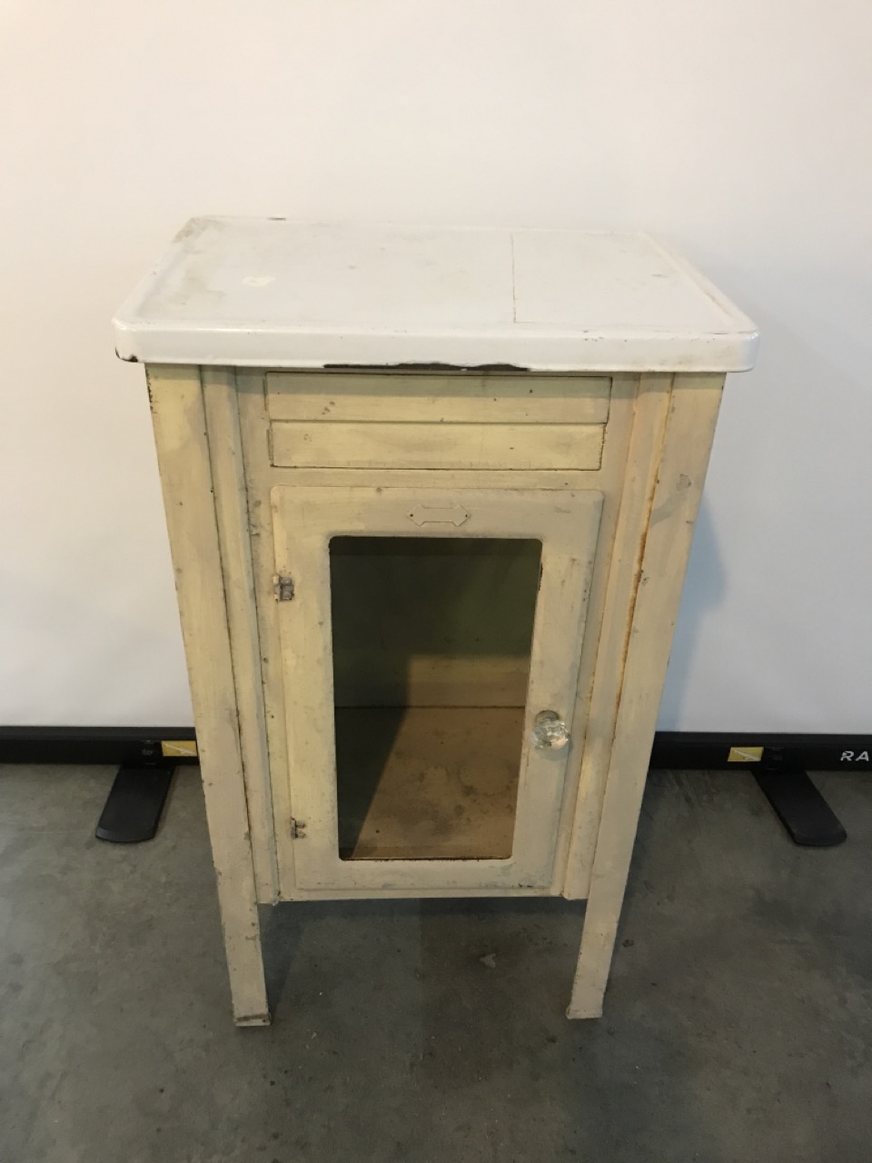 Vtg Medical Cabinet W/ Porcelain Top/ Door with Gass Knob(Needs Glass)- 32.5” T x 18” W x 13” D
