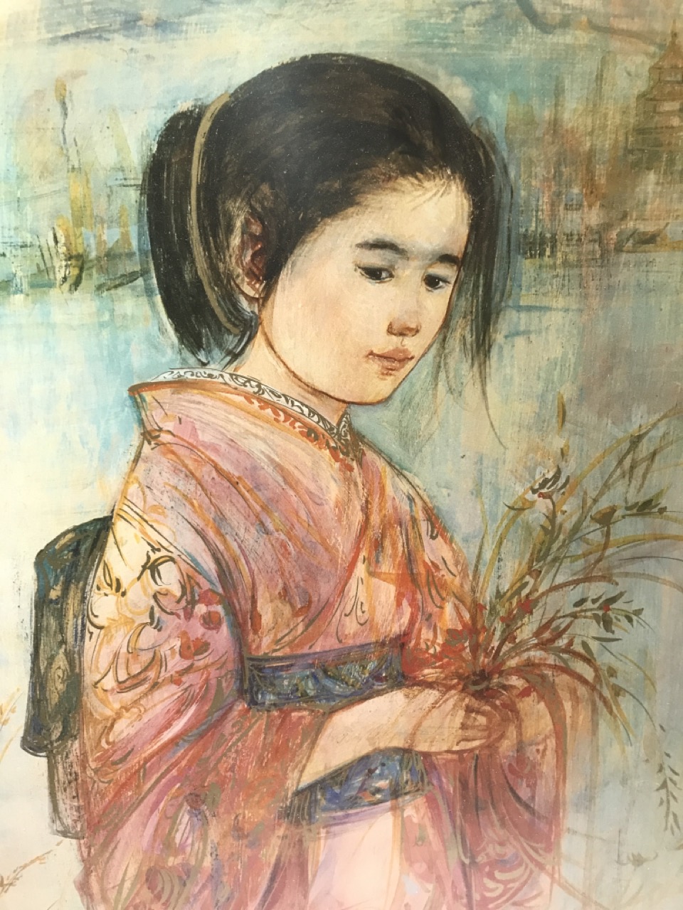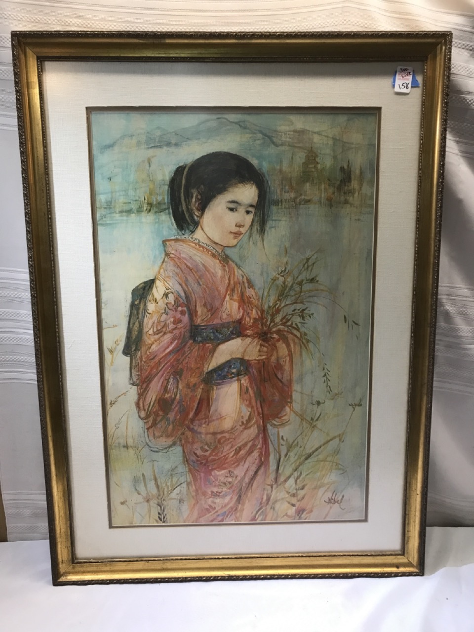 Edna Hibel “Red Kimono” Print~ 367/1000- Framed 37” x 27”