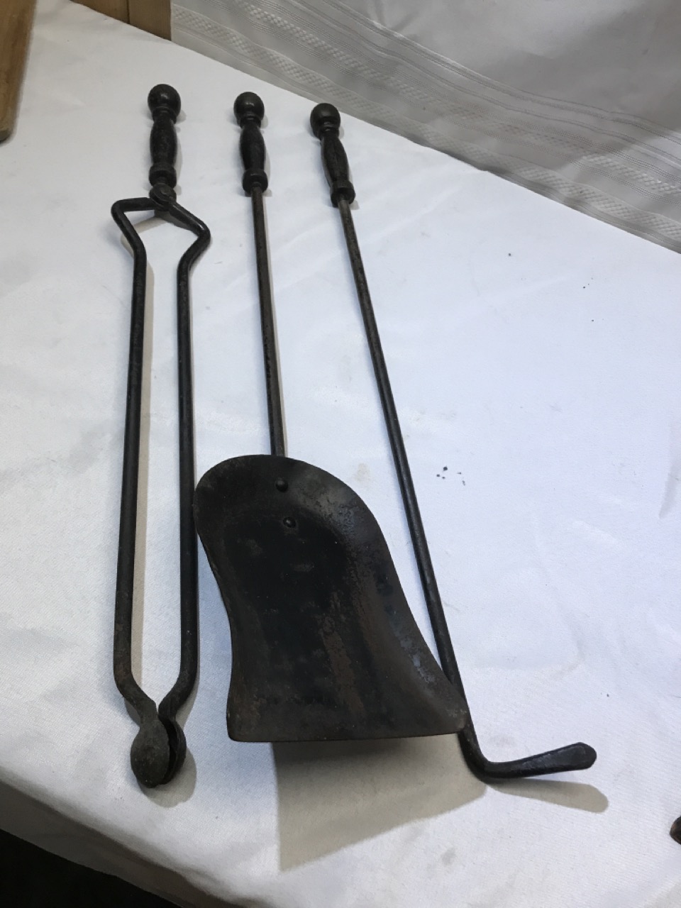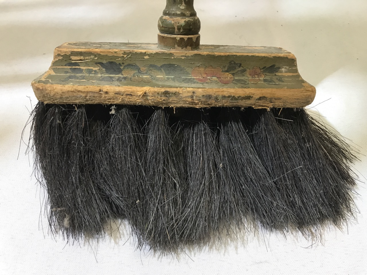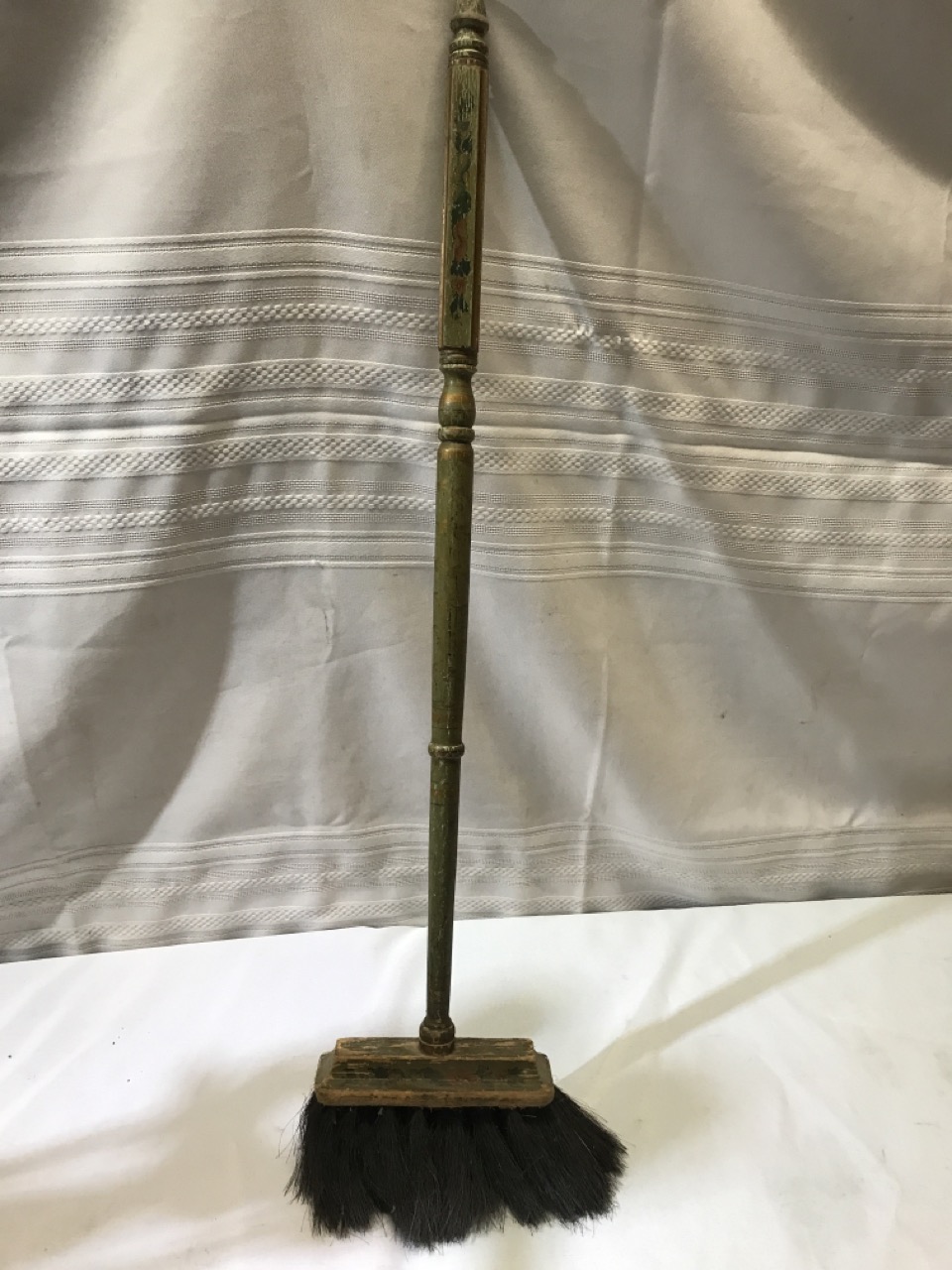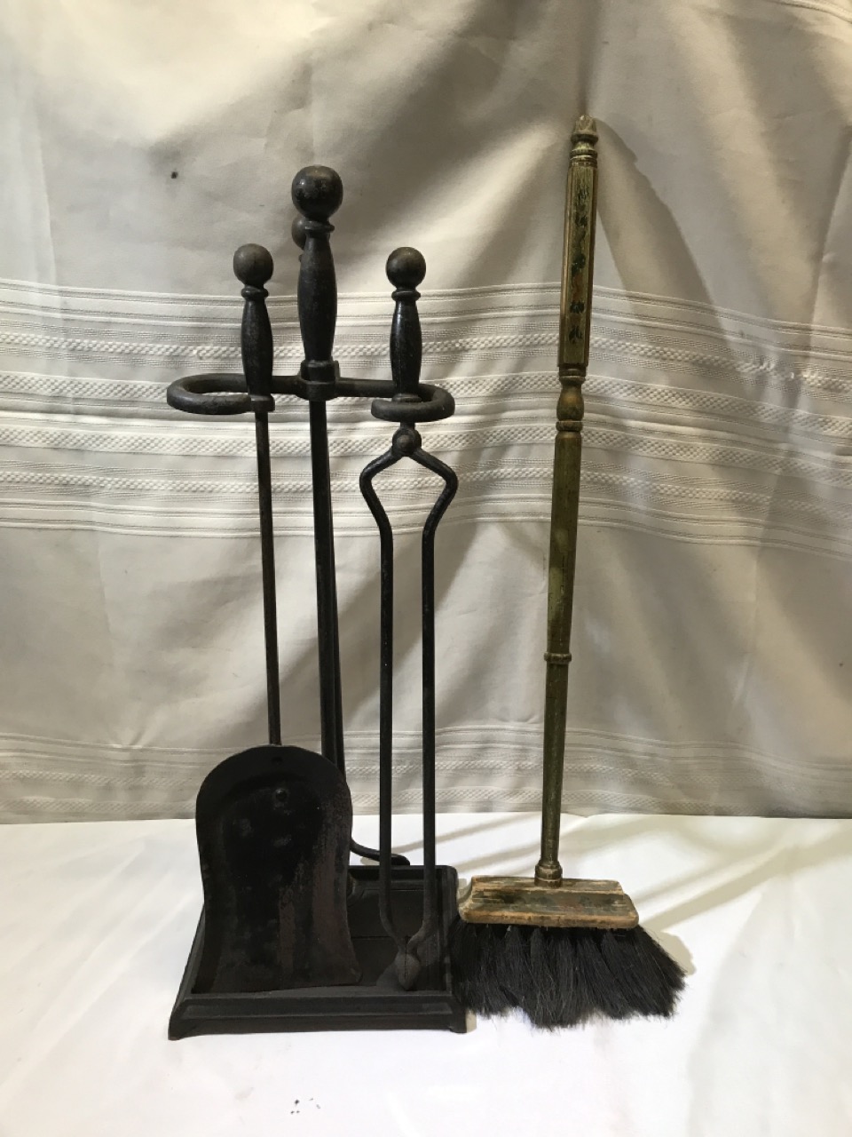 Bradley & Hubbard Fireplace Tools & Tole Painted Horsehair Broom