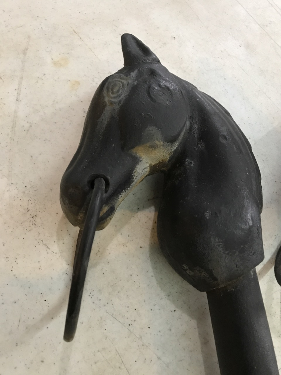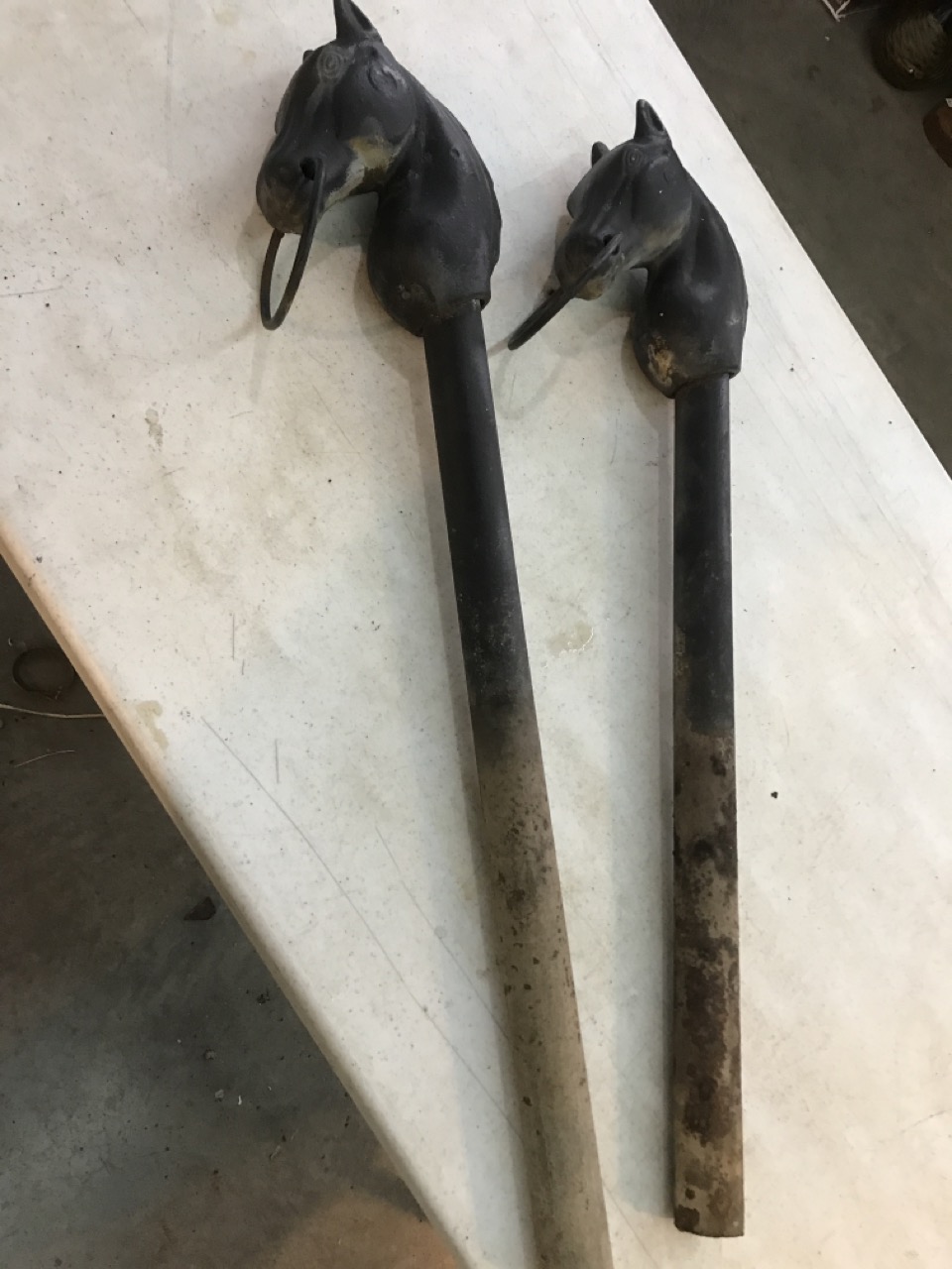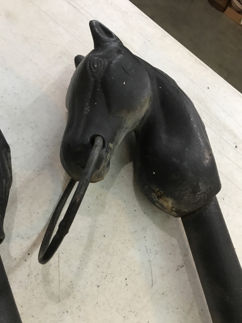 Pr. Antique Cast Iron Horse Head Hitching Posts~ 33” T x Head is 9” T x 4” W