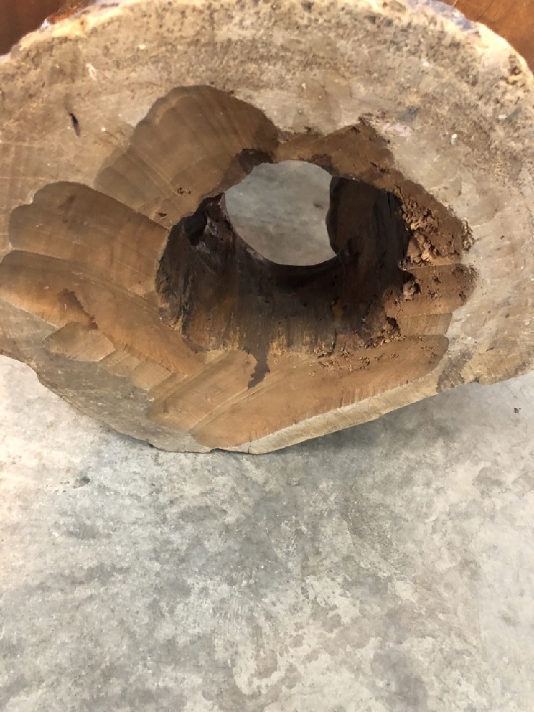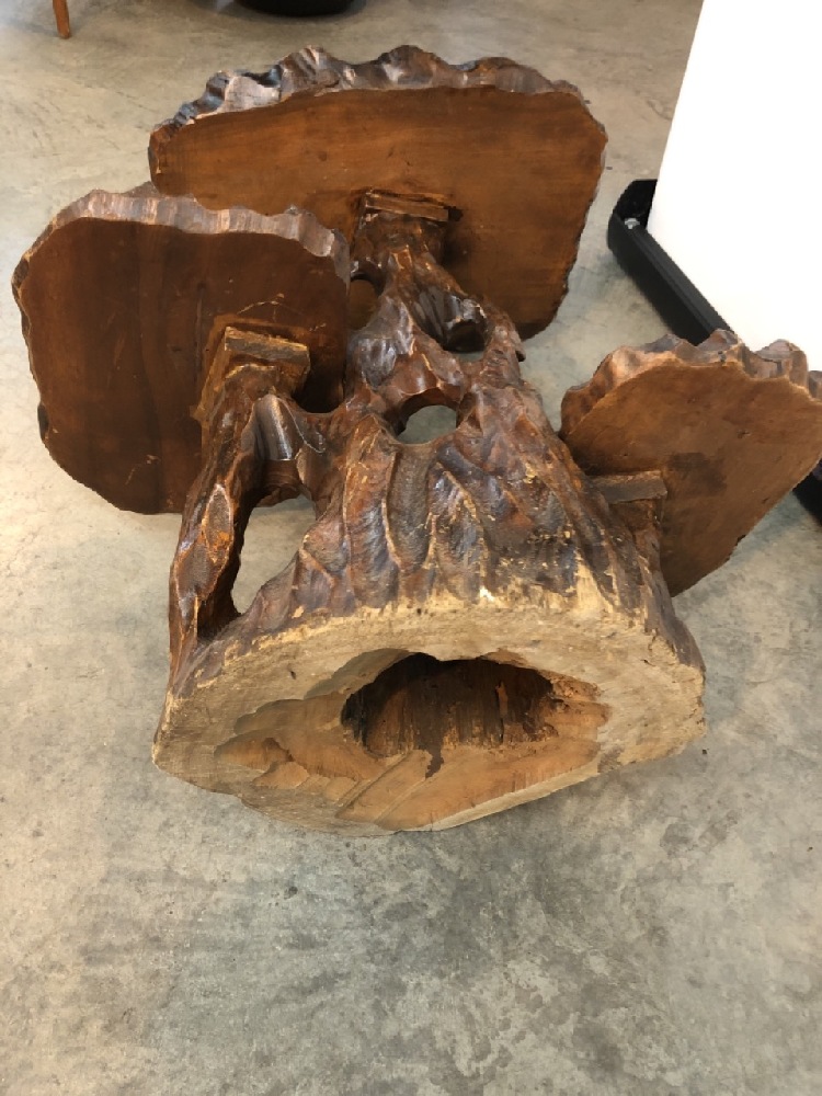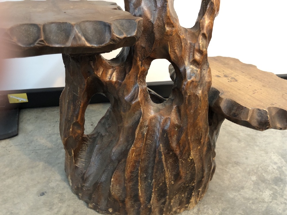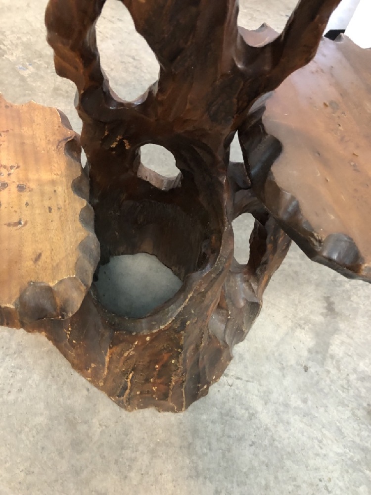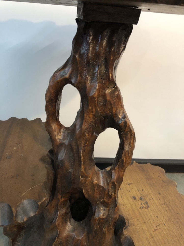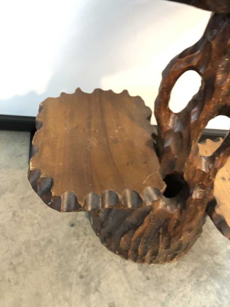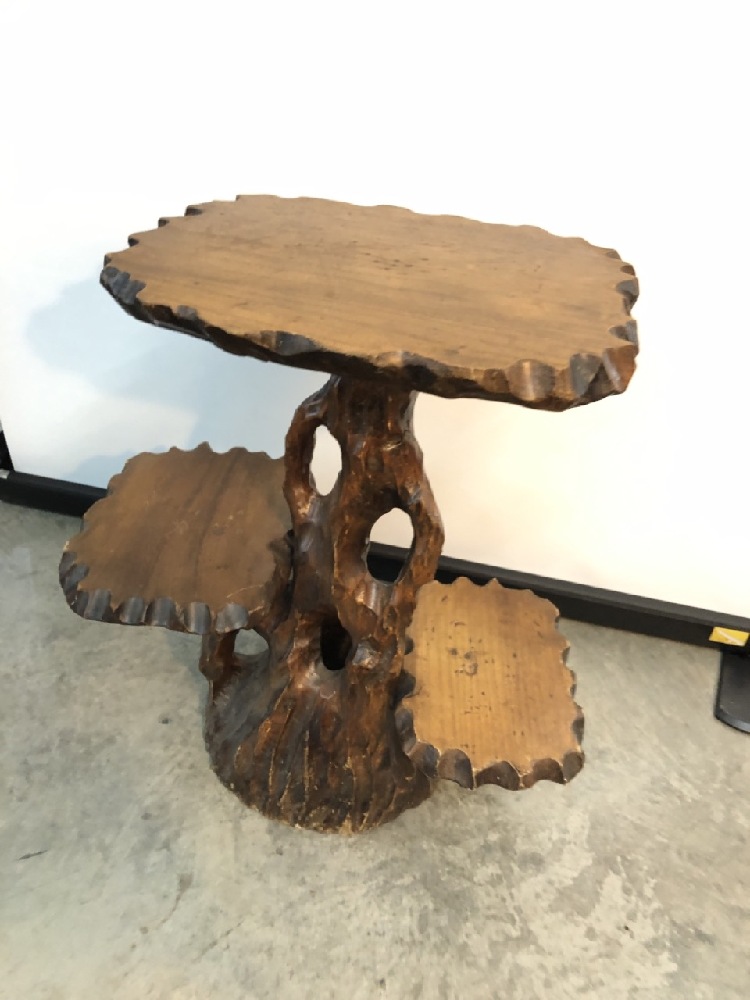 MCM 3 Tiered Live Edge Carved Table- 26” T x 24” W x 16” D