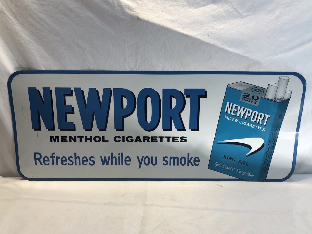 1960’s Newport Menthol Cigarettes Tin Advertising Sign - 30” long x 12” Tall