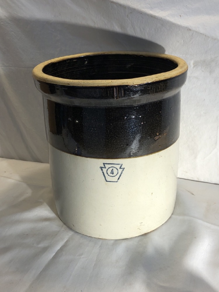 4 Gallon Two Tone Belted Crock - 12 1/2” Tall x 12” Round