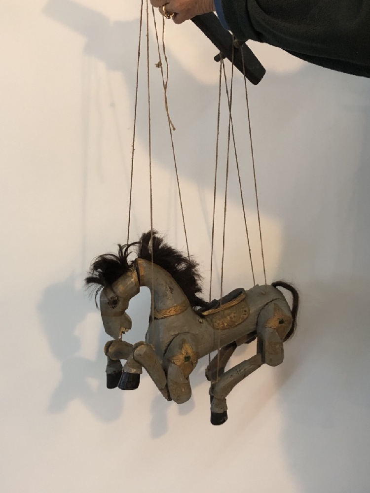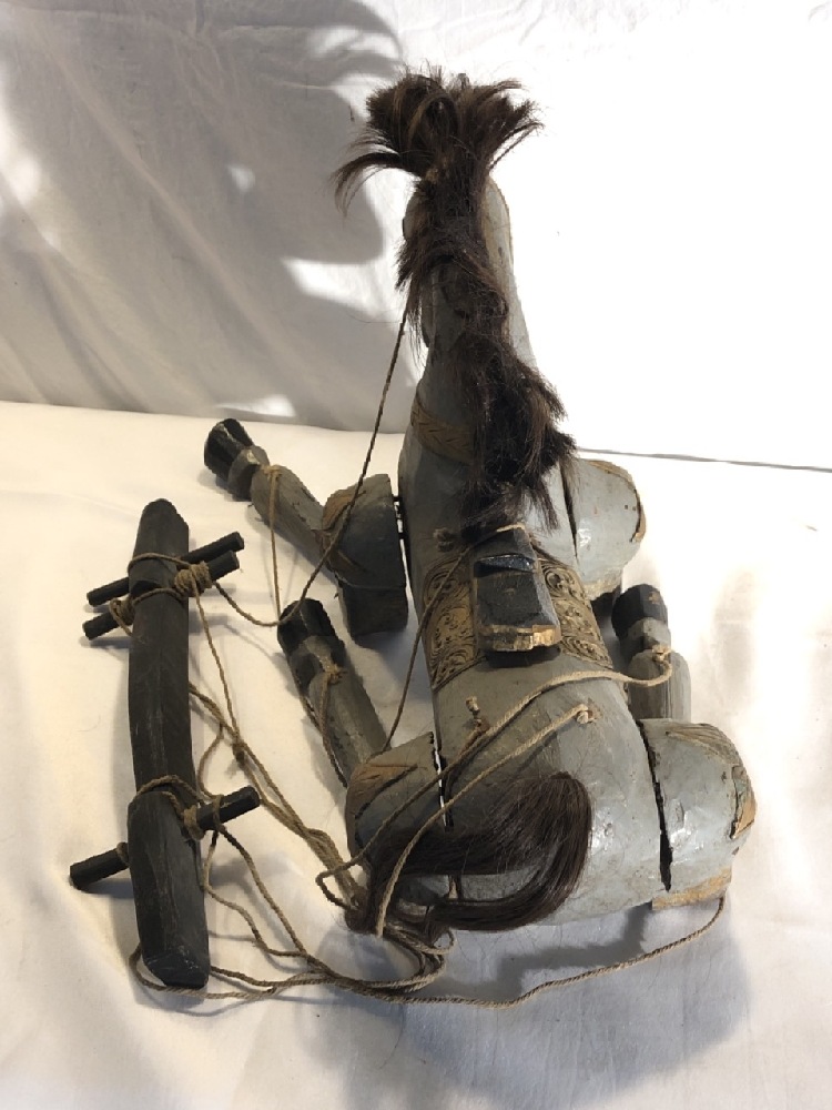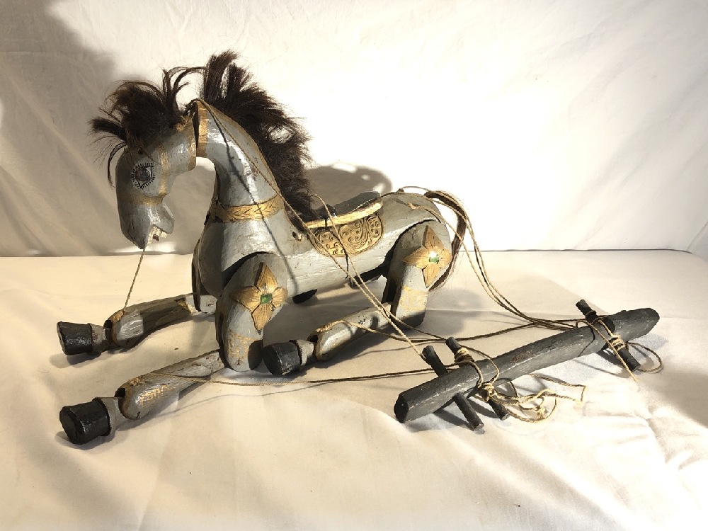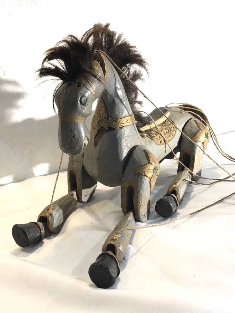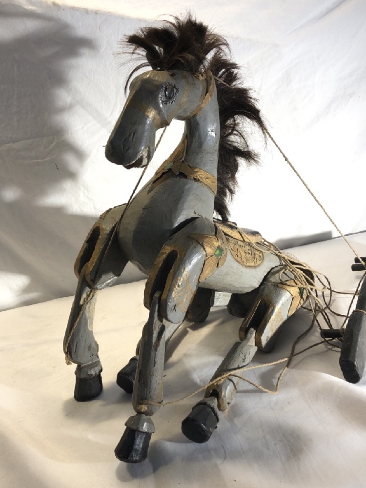 Vintage Hand Carved Wooden Horse Puppet- 14” long - Jointed, Hand Painted with Real Hair