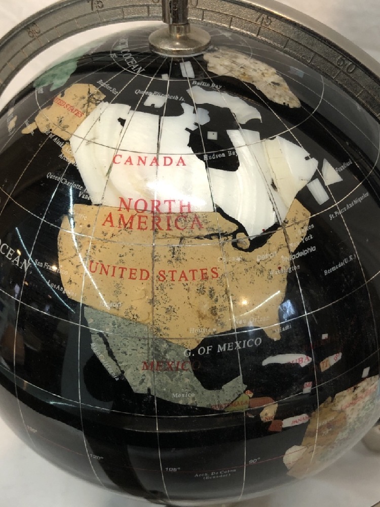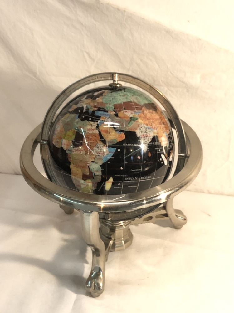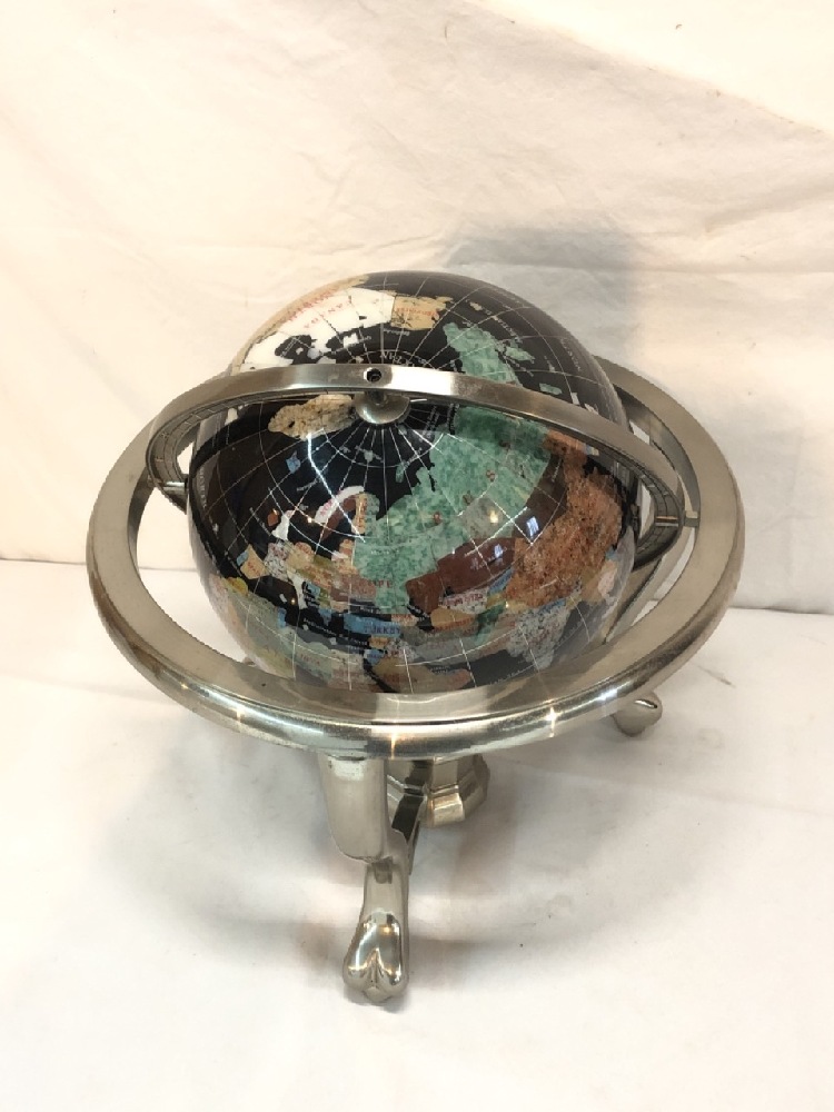 Black Ocean Tripod Globe w/ Semi Precious Stone inlay - 14”