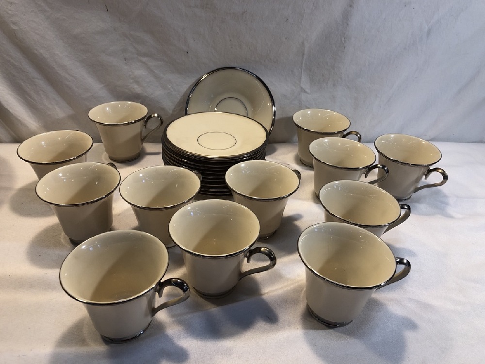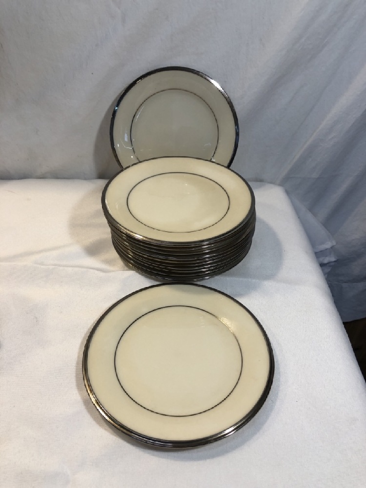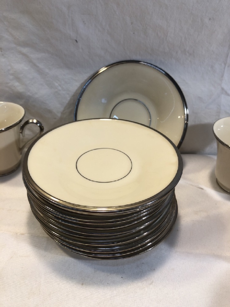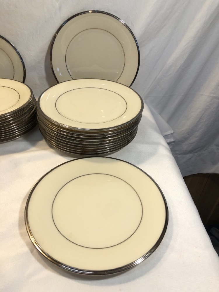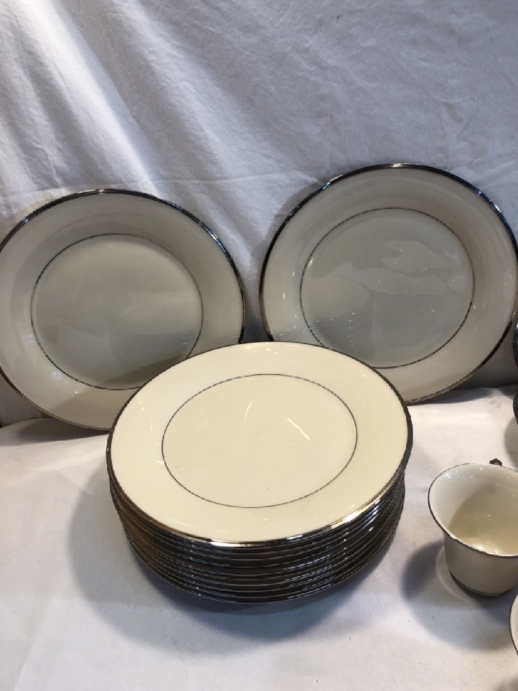 Vtg Lenox Solitaire Serving for 12- No Damage~ 10 3/4” Dinner Plates, 8 1/8” Salad Plates, 6 3/8” Bread & Butter Plates, Footed Cups & Saucer Sets