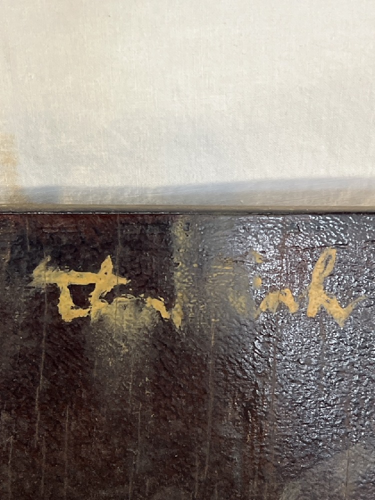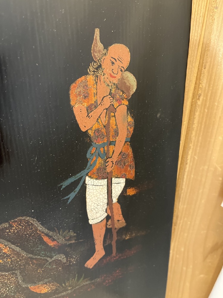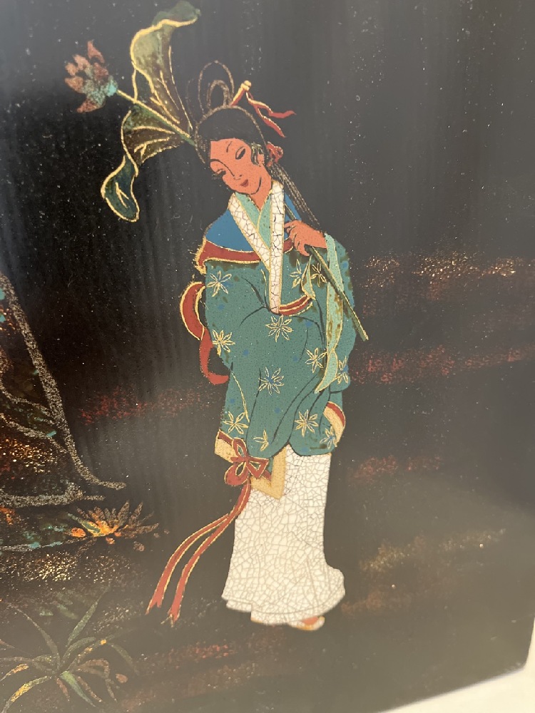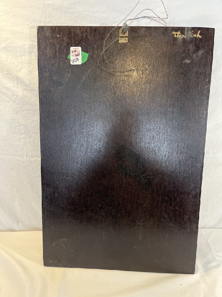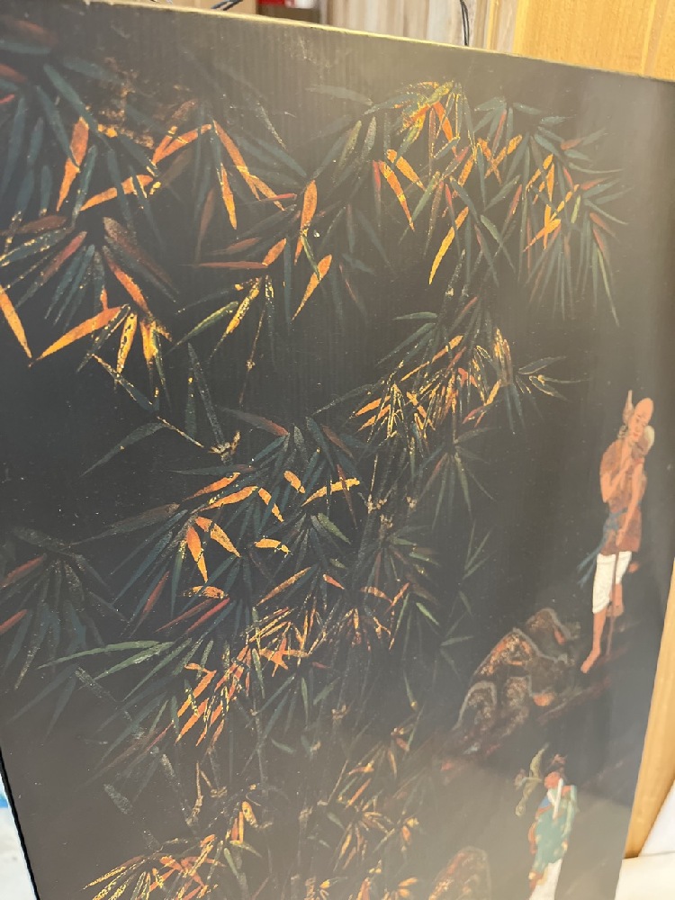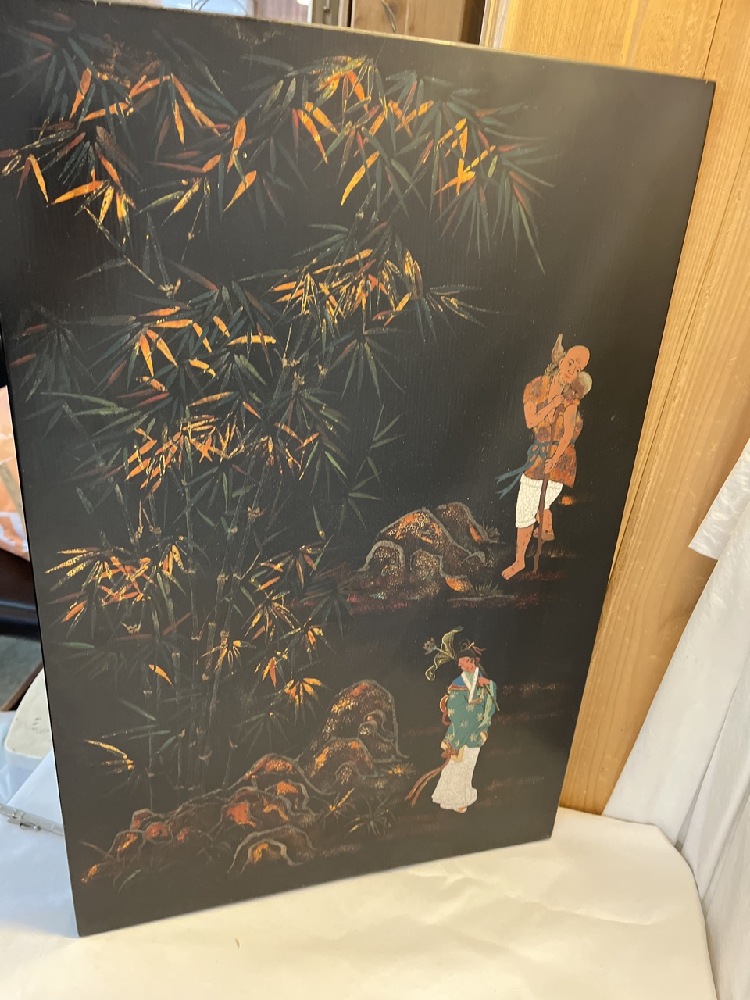 Asian Black Lacquer Wood Panel with Stone Inlay - 24” tall x 16” Wide - Family Brought Over From WWII - Signed