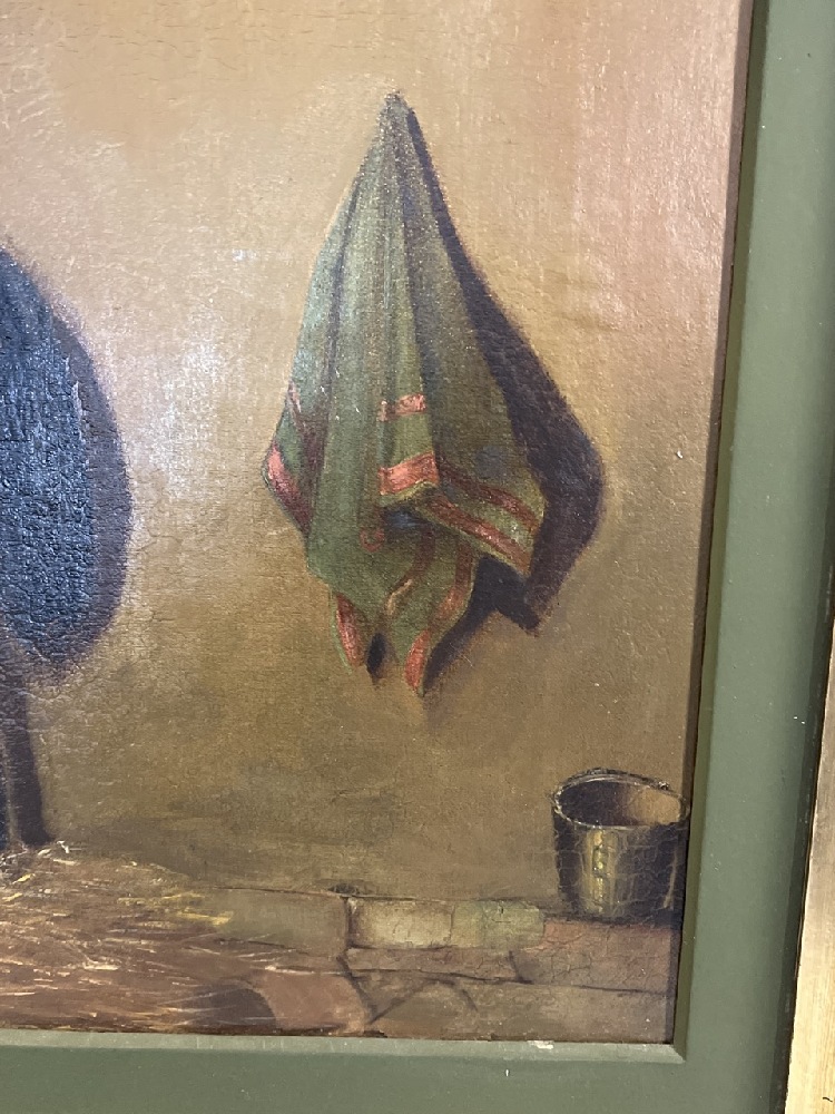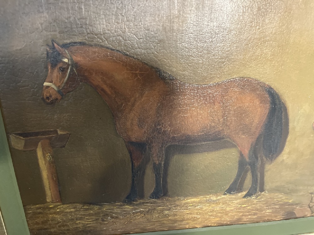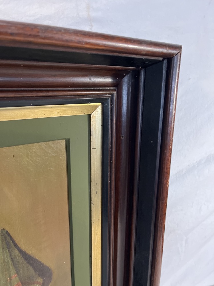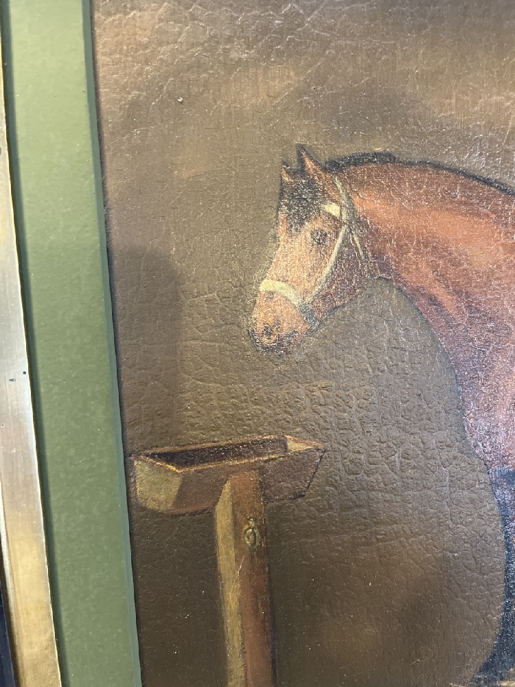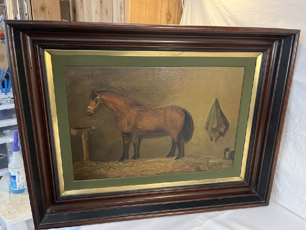 Vtg. Deep Walnut Framed Oil on Board “Horse” - 29” Long x 22” Tall x 3” Deep- No signature Seen