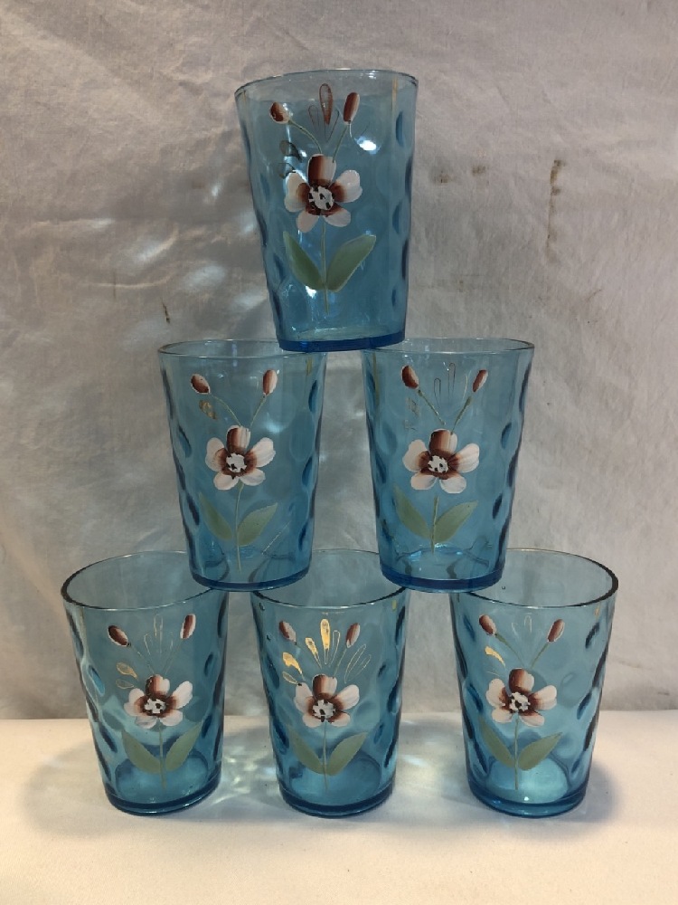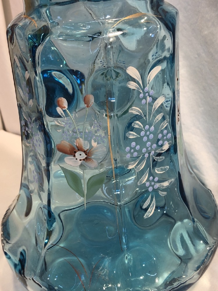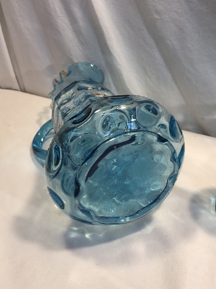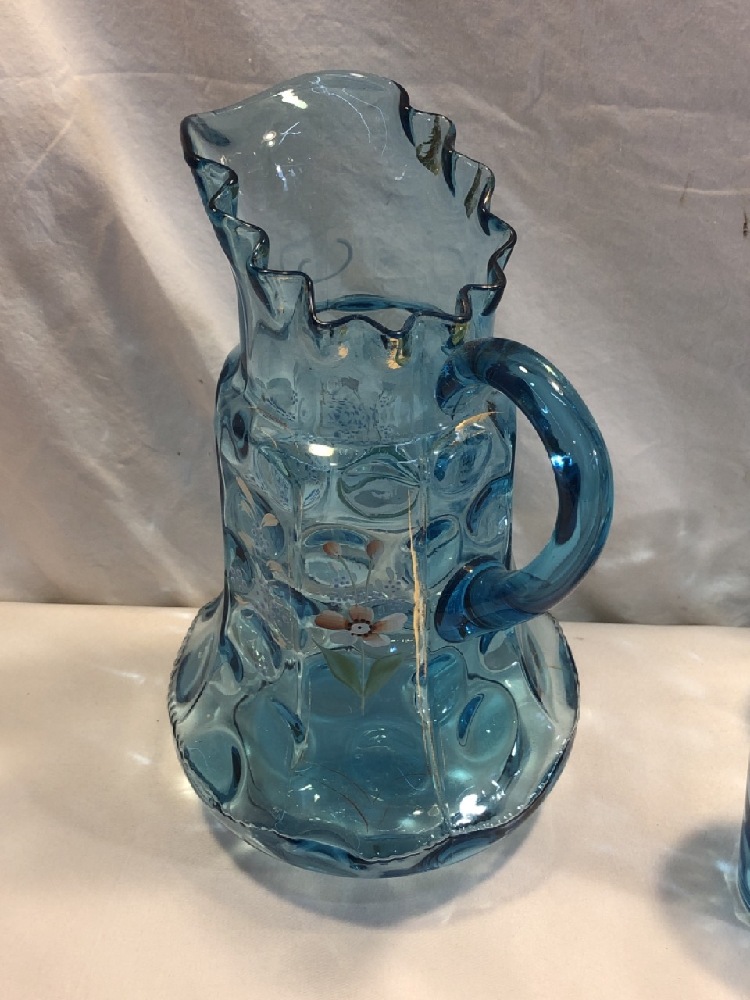 Victorian Hand Painted Pitcher and 6 Glasses- 11 1/2” tall - Ruffled top