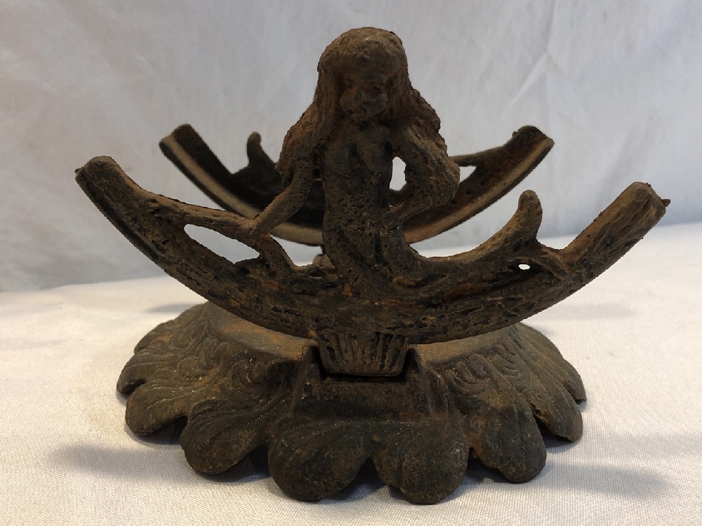 Art Deco Iron Fishbowl Stand - 5 1/2” tall - Mermaid