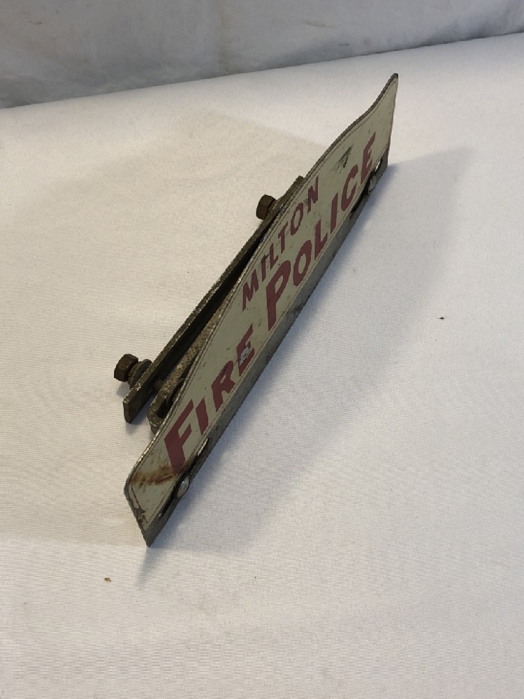 Vtg. Milton Fire Police License Plate Topper - 10”long x 4” Tall