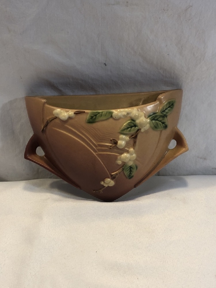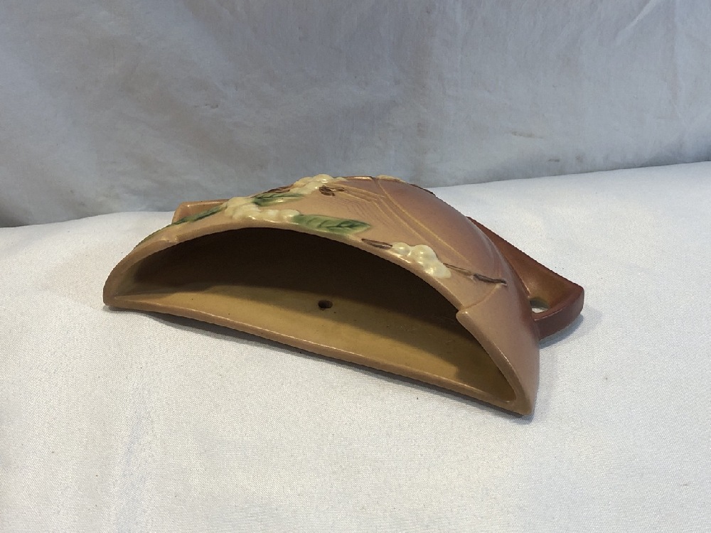 Vtg. Roseville Snowberry Wall Pocket - 8” Wide x 5 1/2” Tall