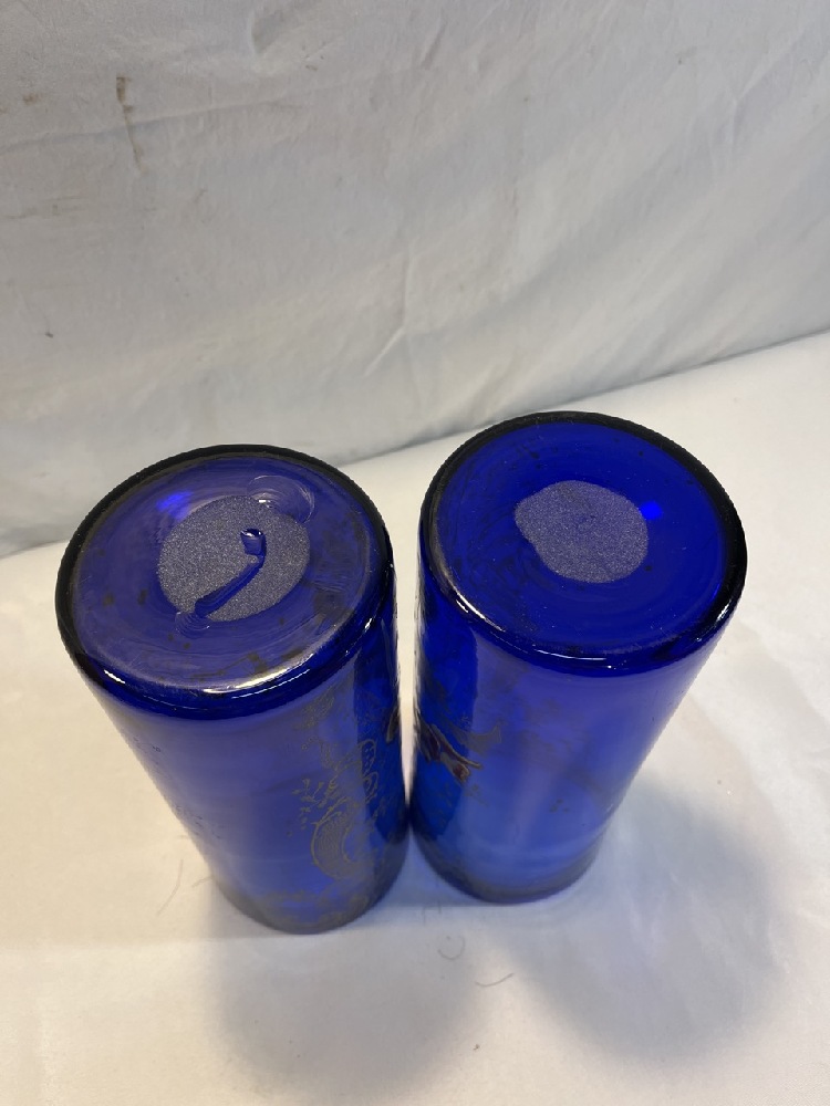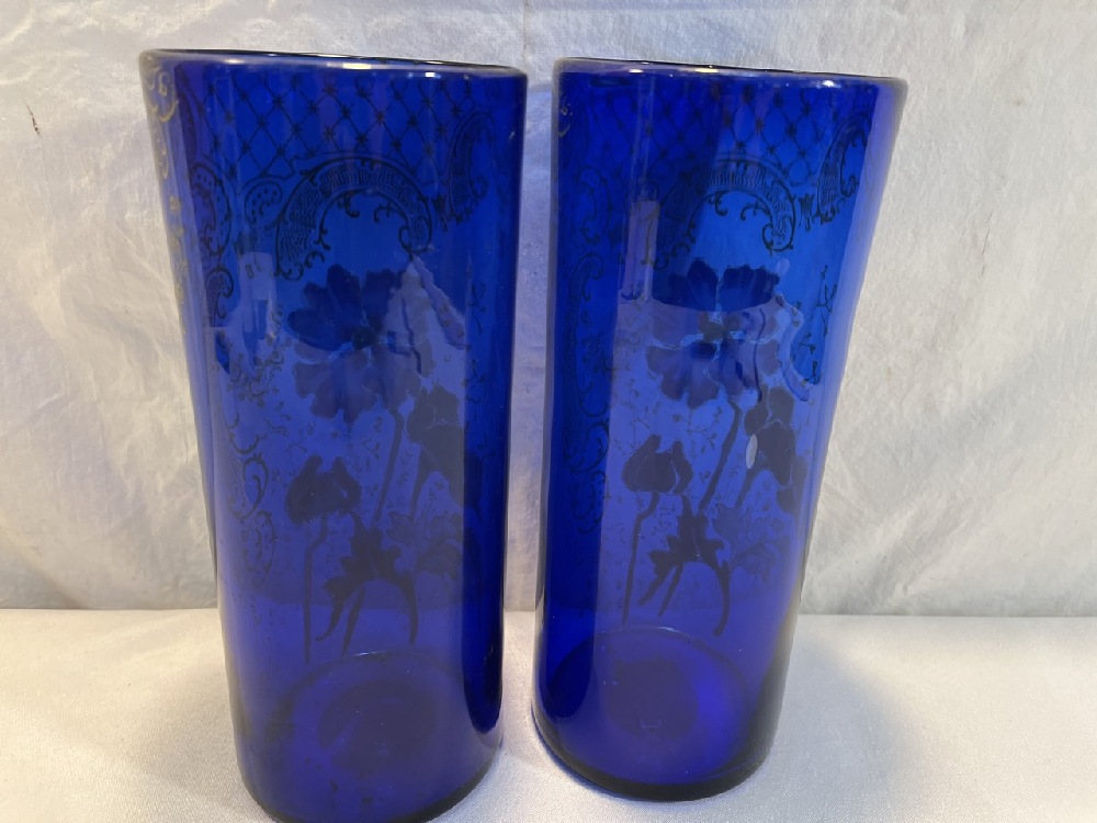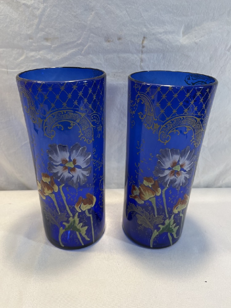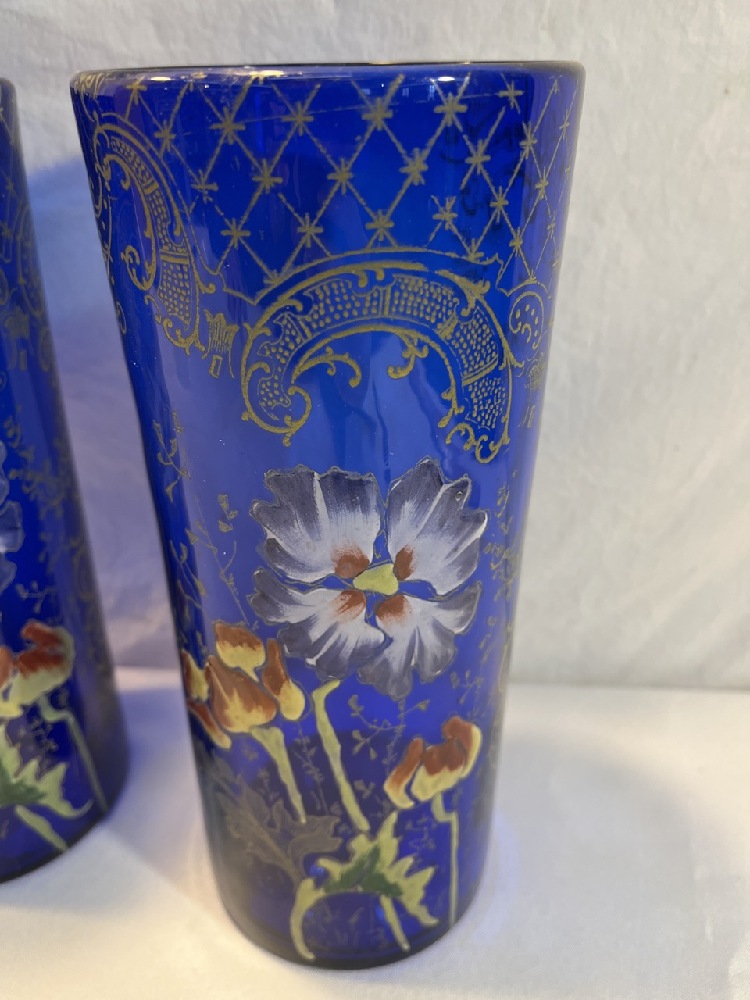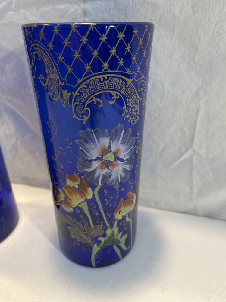Pr. Legras Art Nouveau Cobalt Blue Enameled Vases - 10 3/4” Tall