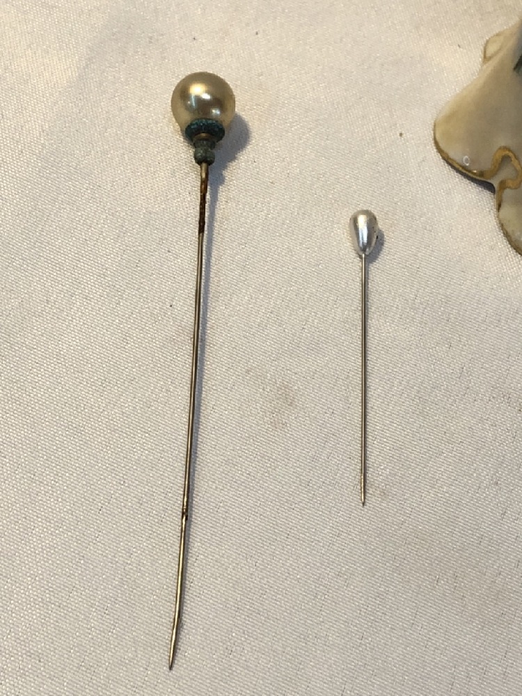Vtg Porcelain Hat Pin Holder w/ 2 Pins~ 5” T
