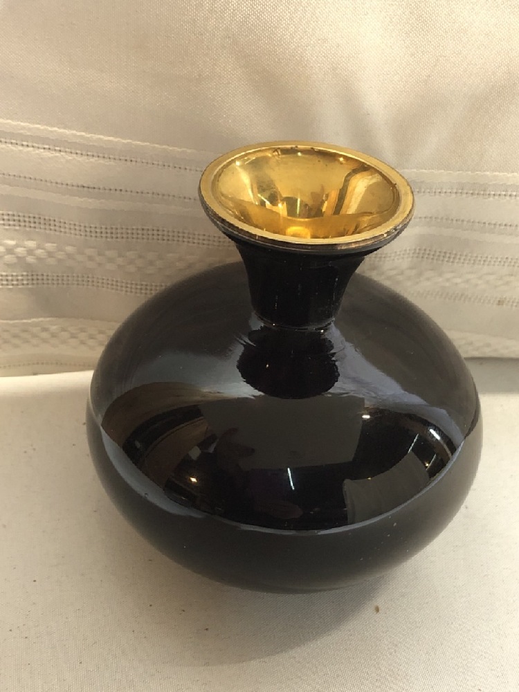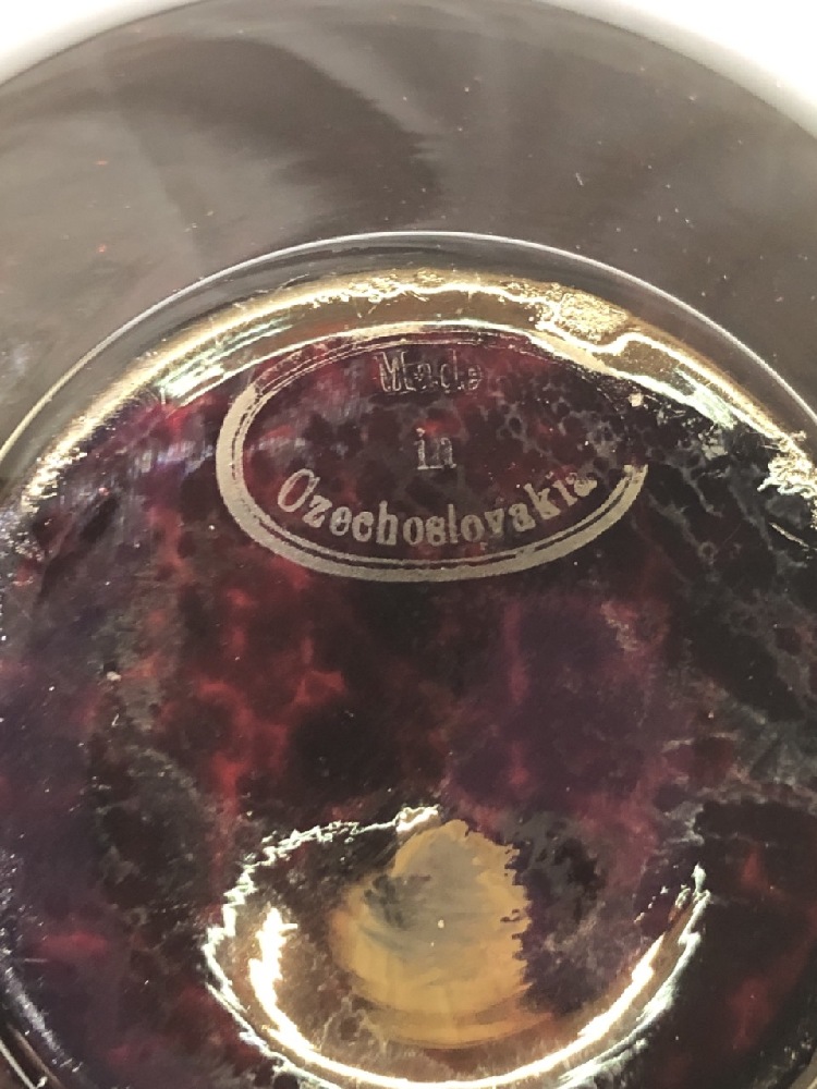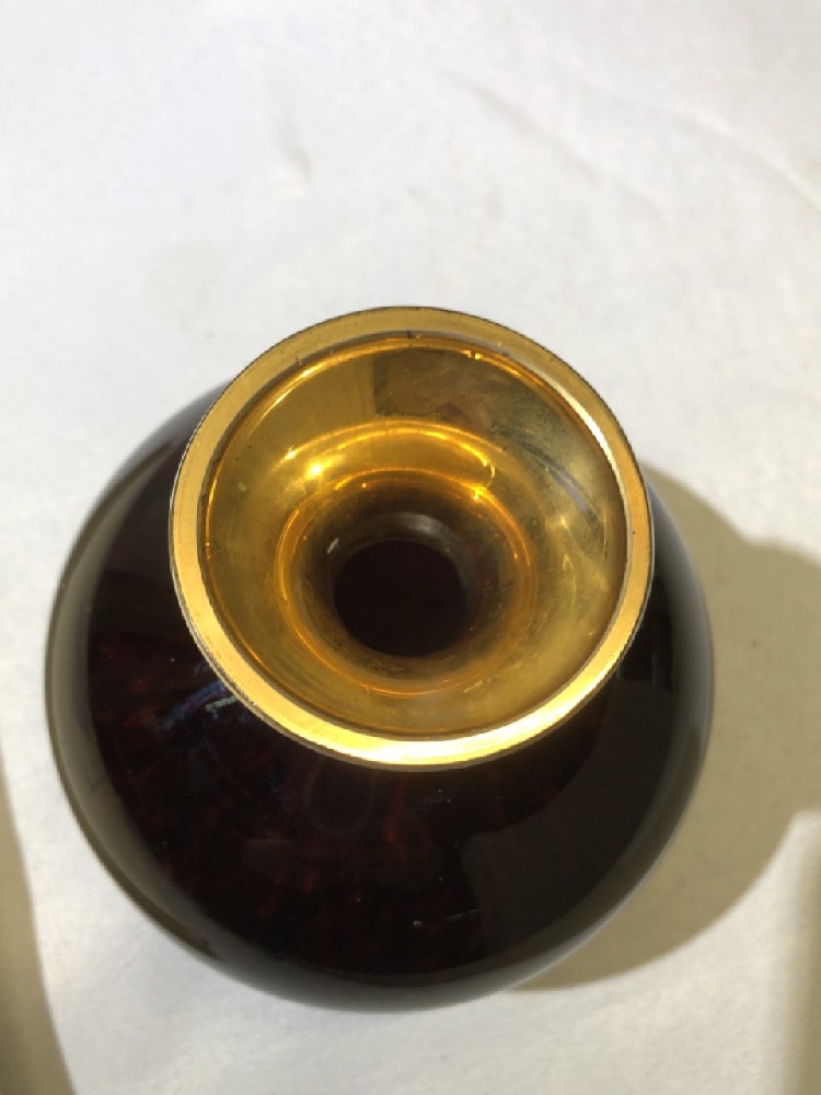 Vtg Red Gold Cased Glass 5” Vase Made in Czechoslovakia