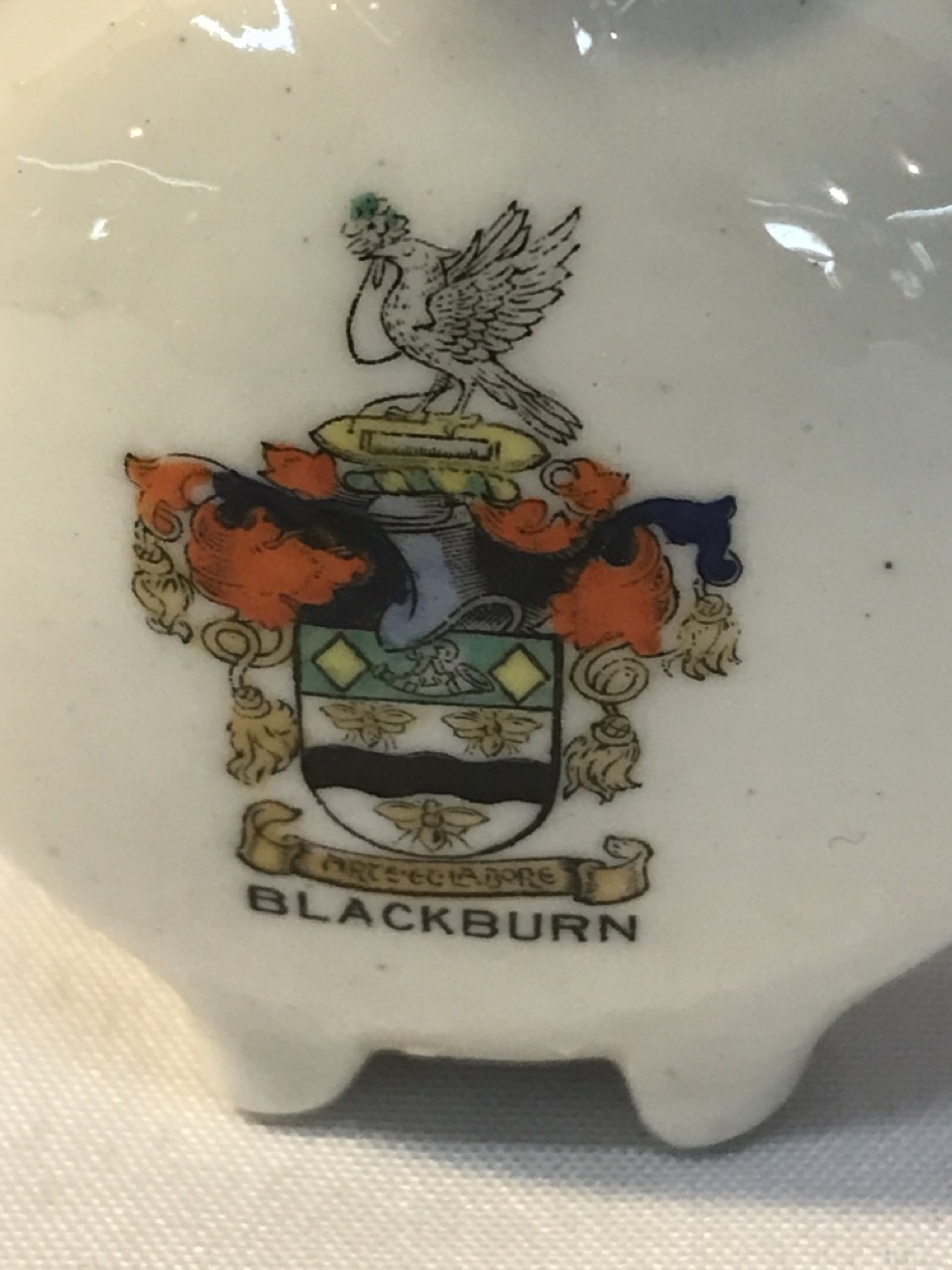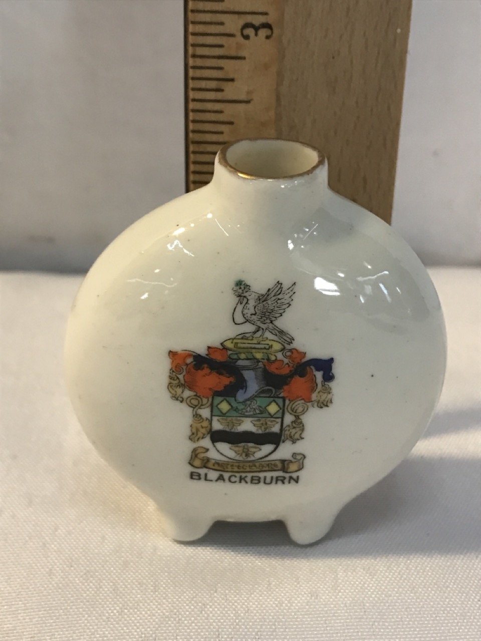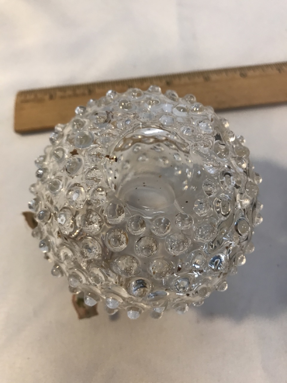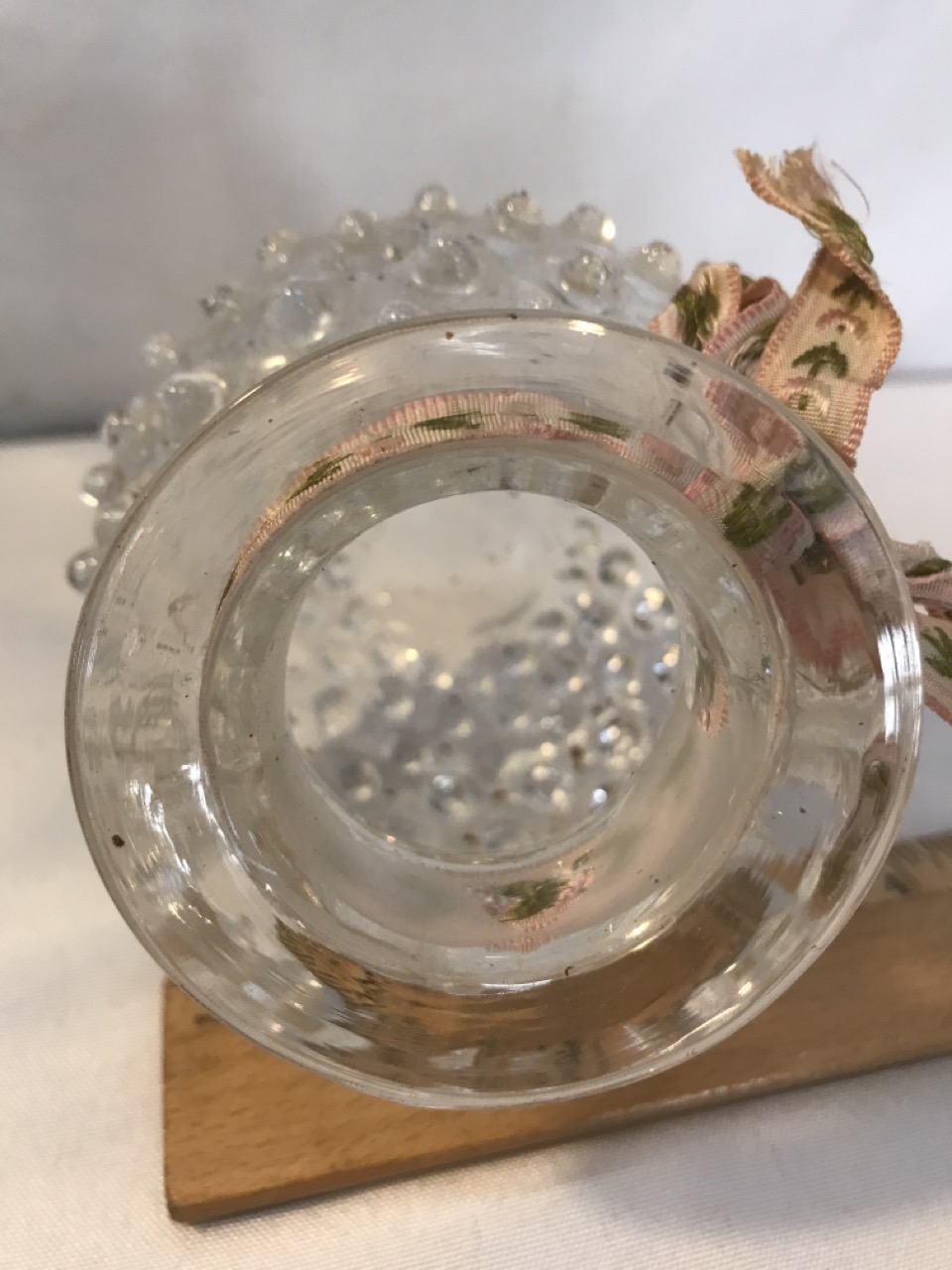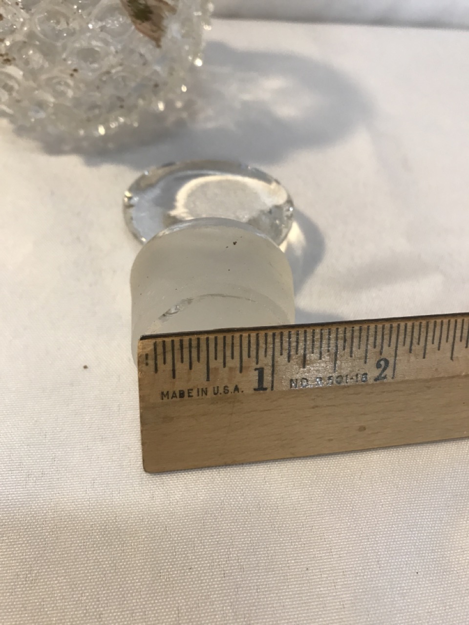 Vtg Bottles including Bohemian Cranberry Etched & Cut Crystal Colonge Bottle, Hobnail Bottle W/ Glass Stopper, & Shelley Porcelain Crest Blackburn 1 Stem Souvenir vase