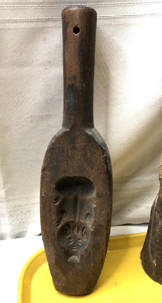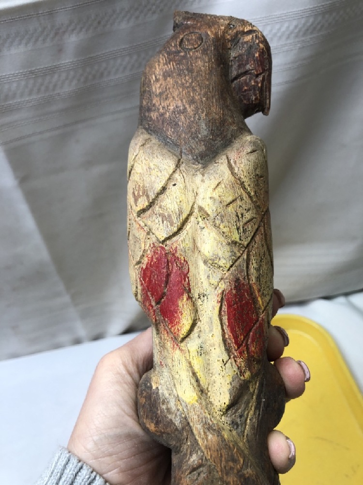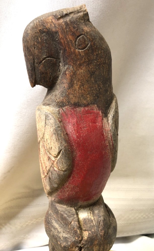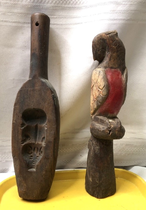 19th Century Carved Butter/Rice Mold 14.5" & Hand Carved Wooden Parrot 12.5"