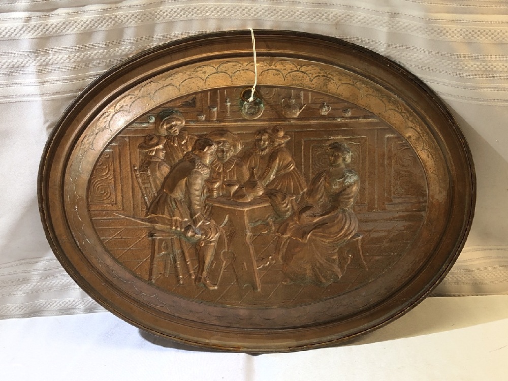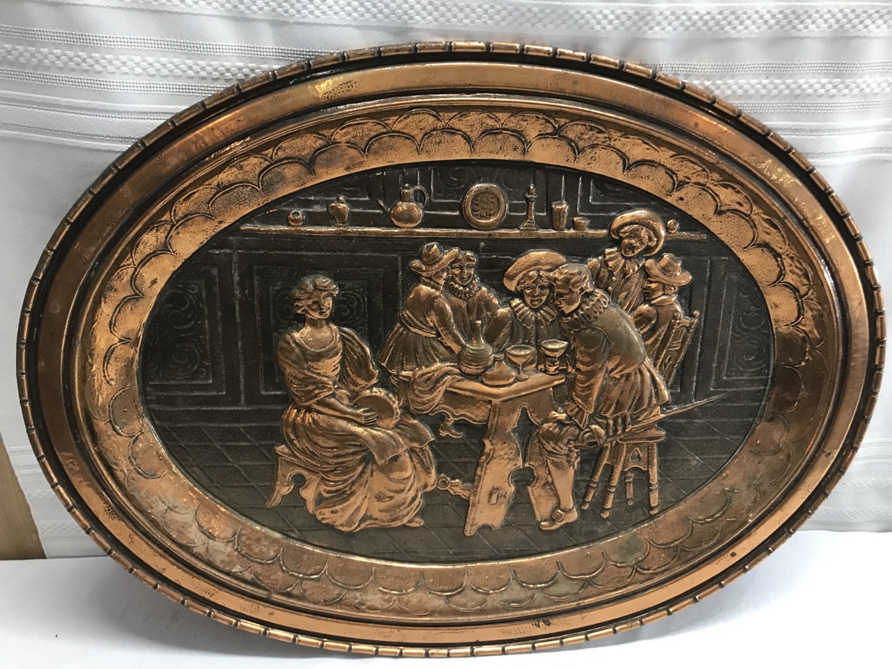 19th Century Embossed Copper Tray/Picture~22” x 16”
