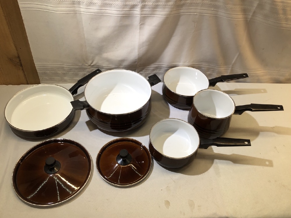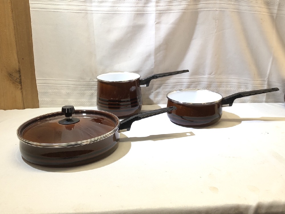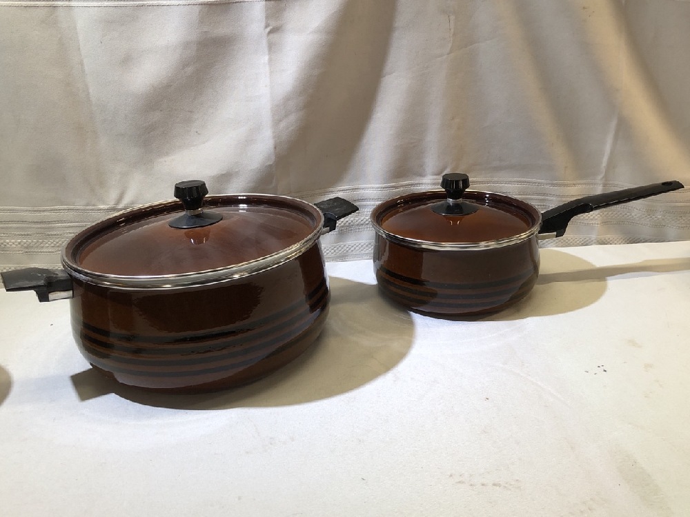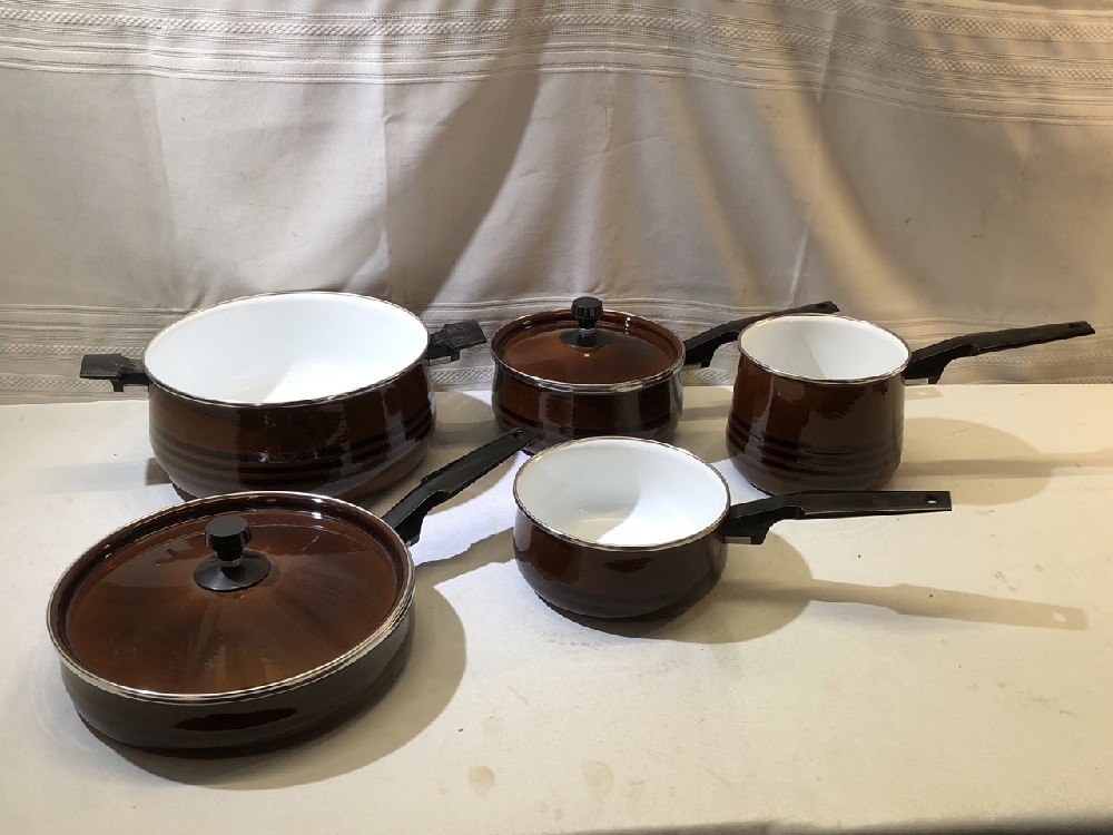 Vtg. Scandia by West Bend Cookware - Pots/ Pans/Lids- 5 ct. , 2 lids - Like New Condition