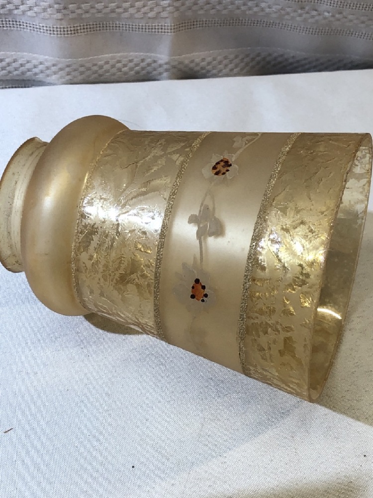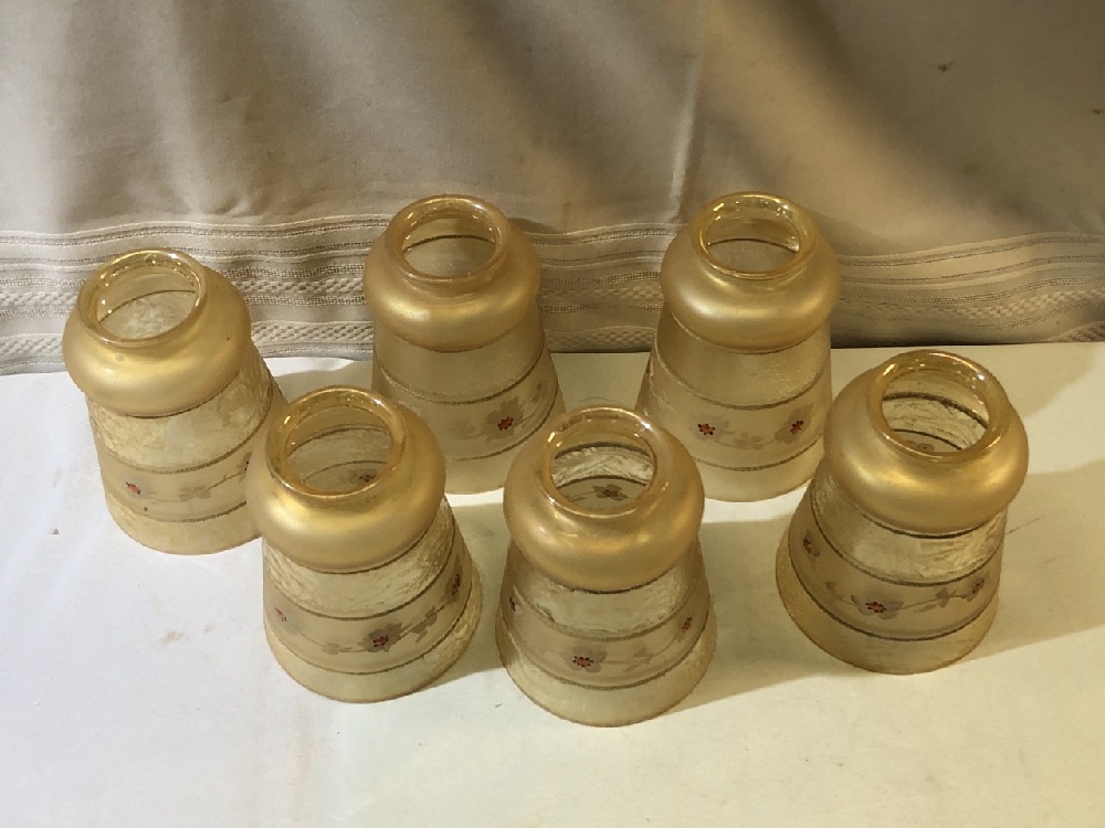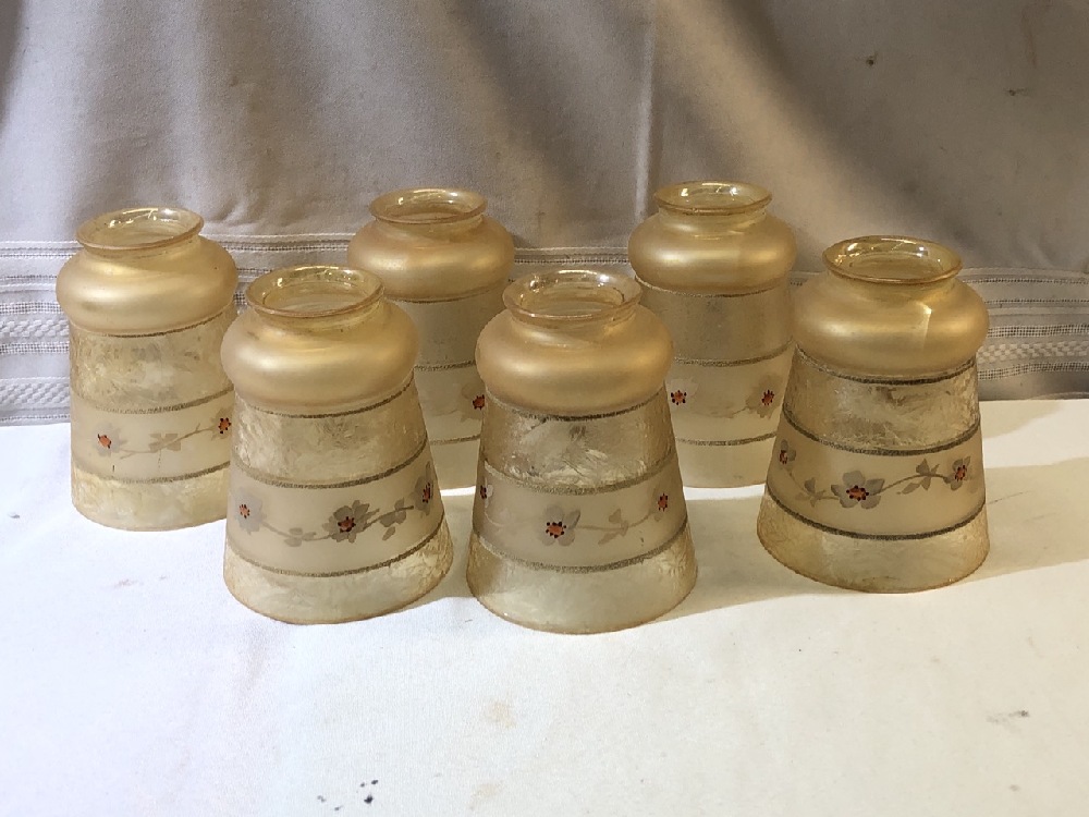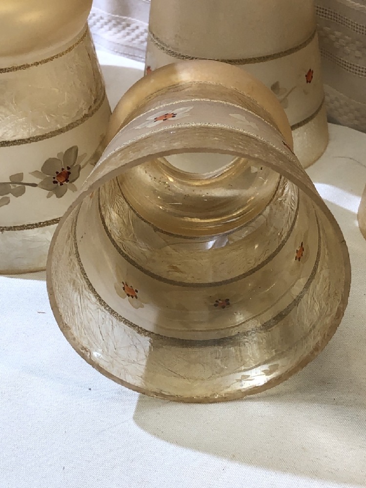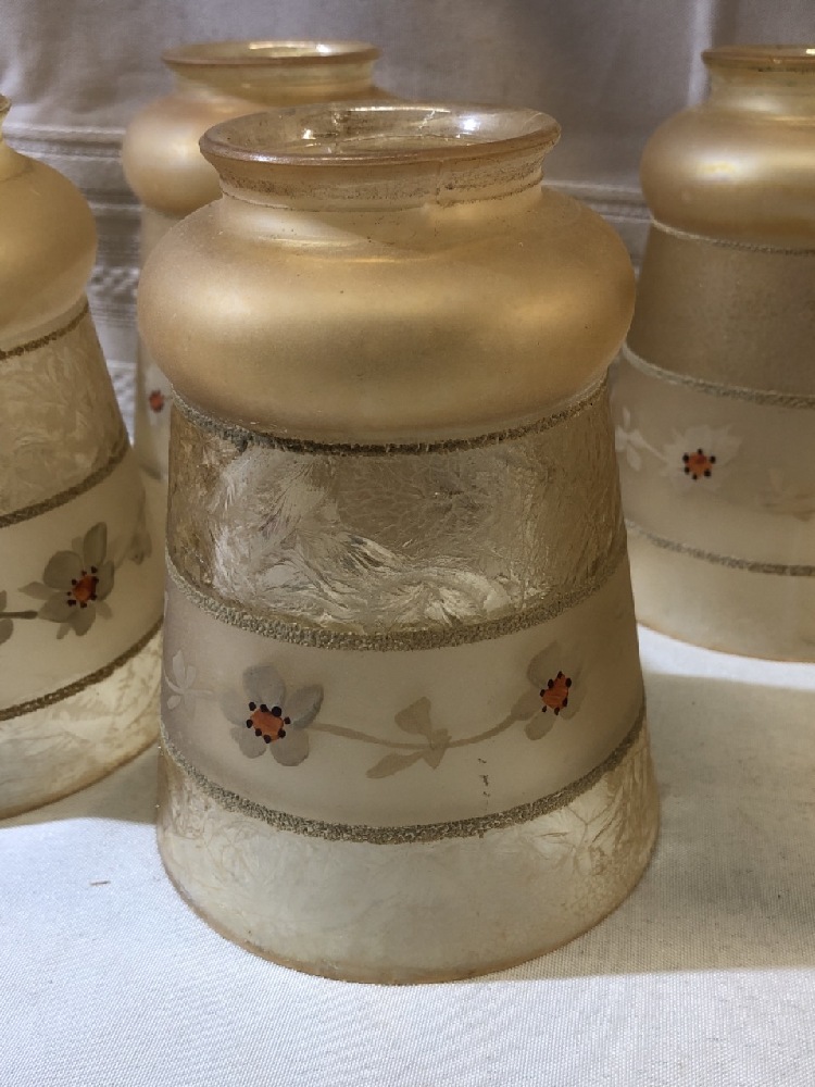 Early Glass Lamp Shades - Hand Painted And Etched - 5 1/2” Tall x 4” round