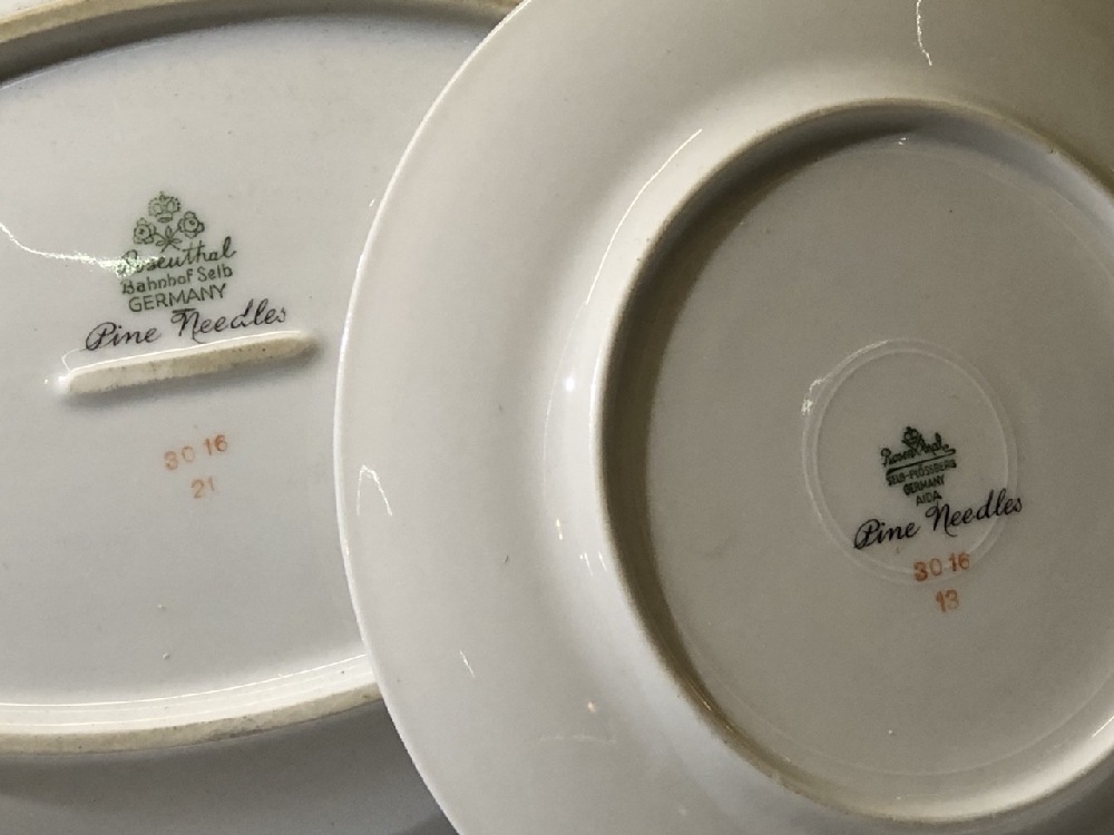 Vtg. Roseuthal Germany And Limoges France Dinnerware- 7 Teacups, 9 Suacers, 12 Lrg Bowls ( 8 1/4”) , 12 Small bowls (5 1/4”), 2 Severware ( platter and bowl), 7 plates ( 7 3/4”), 7 Plates (6 1/4”) and one tea cup and saucer (Limoges France)