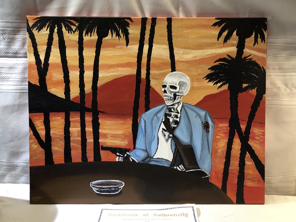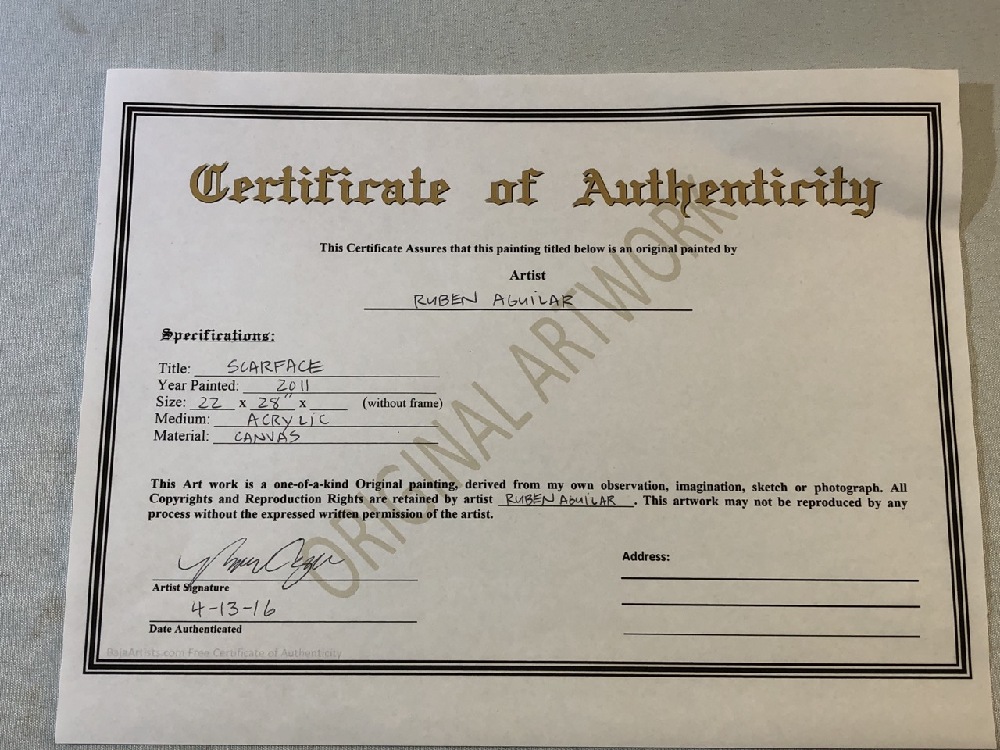 One-of-a-kind Original Acrylic on Canvas “Scarface” -22” x 28”- Signed Ruben Aguilar With Certificate of Authenticity.