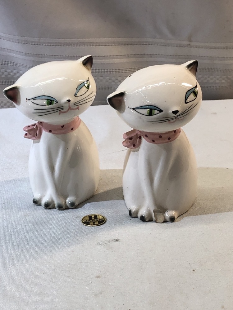 Vintage Holt Howard Cozy Kitten Salt & Pepper Shakers with Original cork - 4 1/4” tall