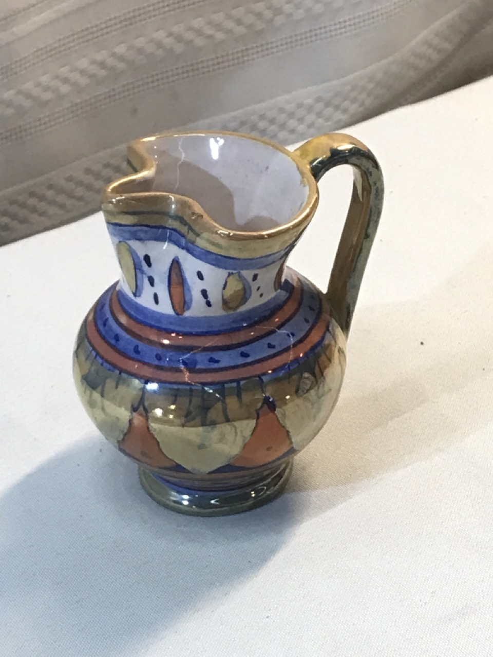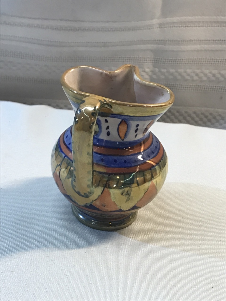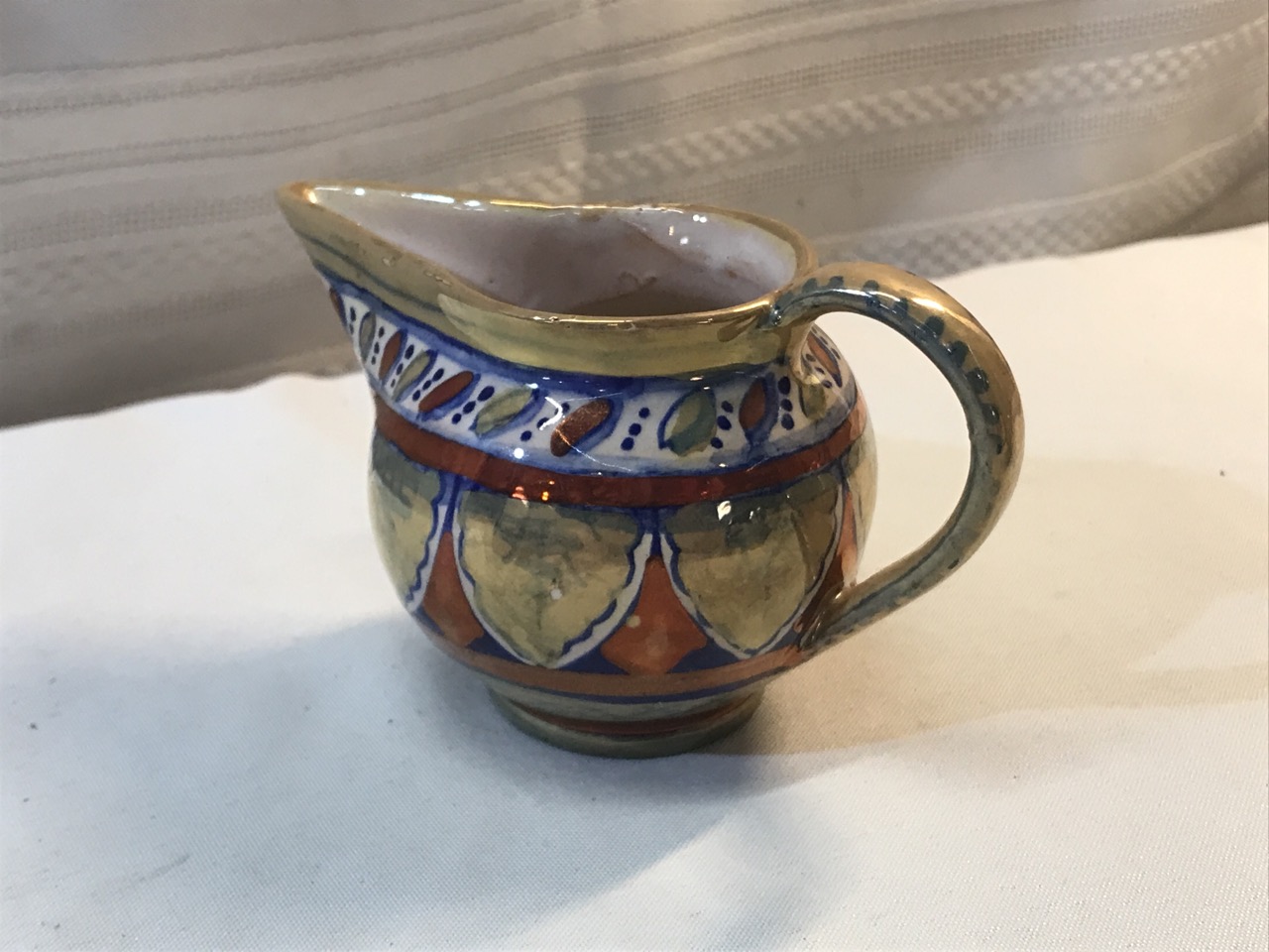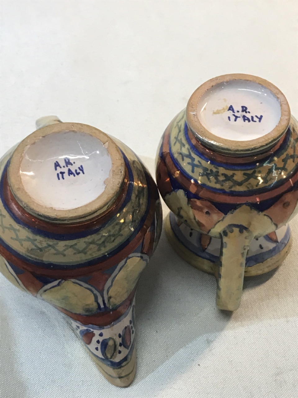 2 Vtg. Creamers Marked A.R. Italy - majolica Pottery - 3” Tall - Hand Painted
