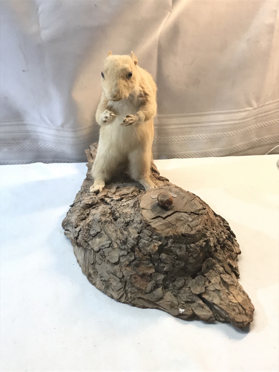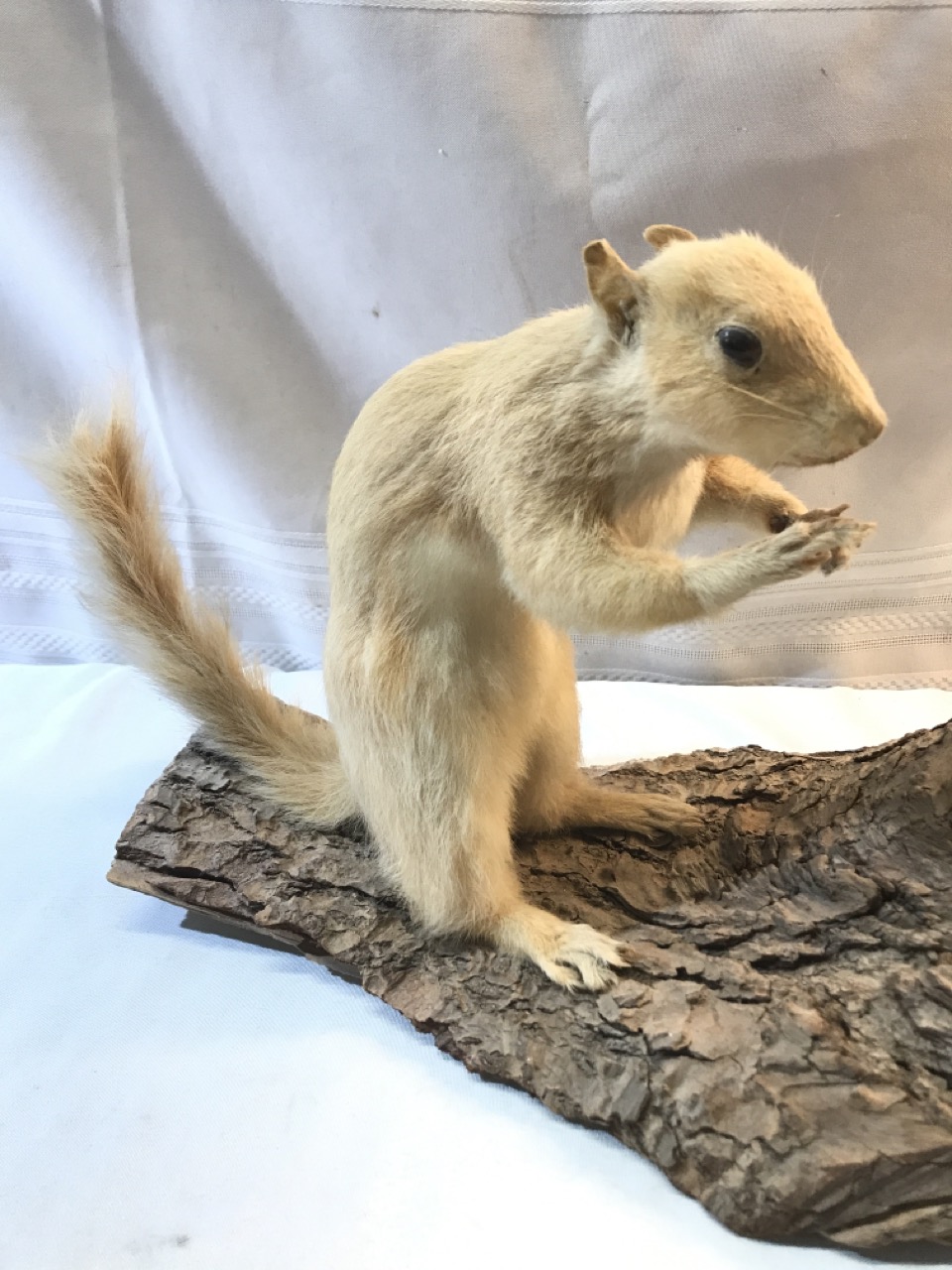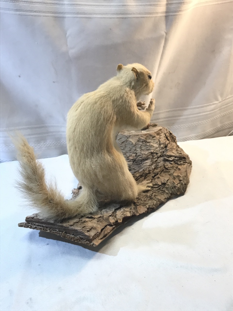 Taxidermy White Squirrel on Tree Branch - 9” Tall x 21” to end of tail