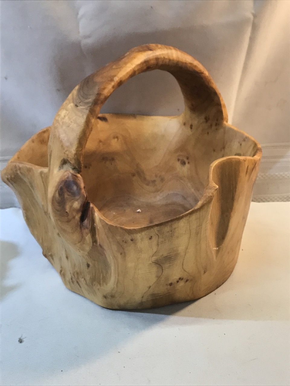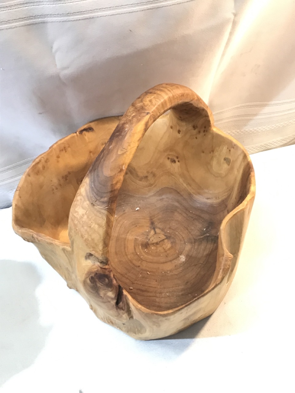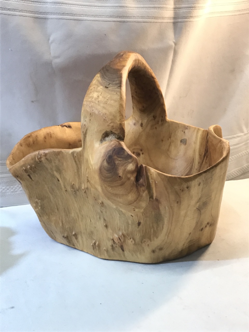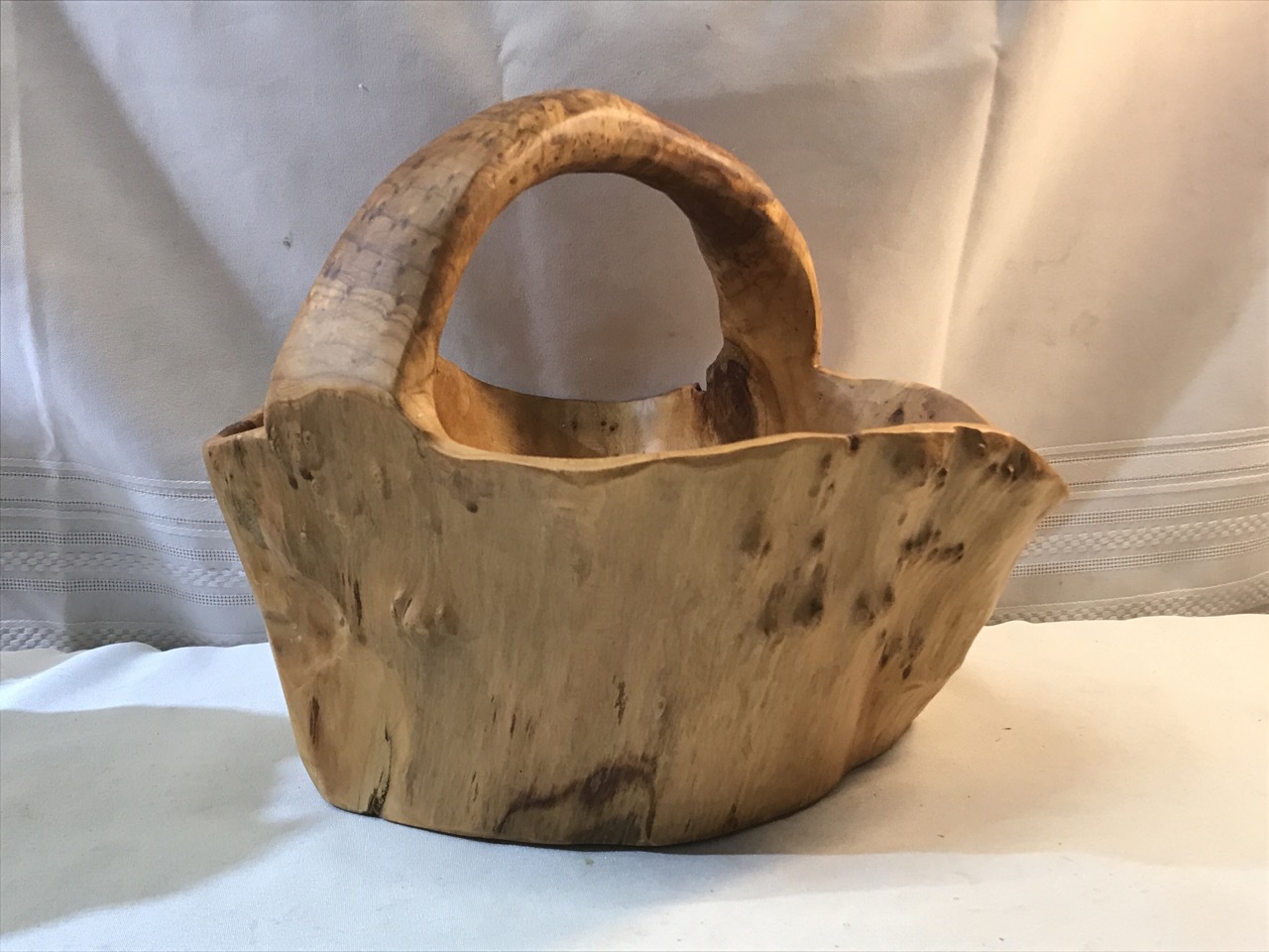 Hand Carved Burl Wood Basket - 10” Tall x 11” Round - Stamped CON2