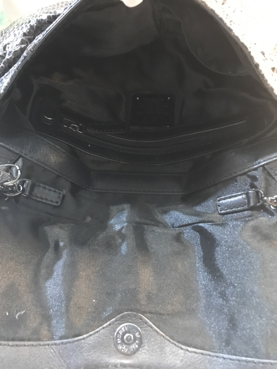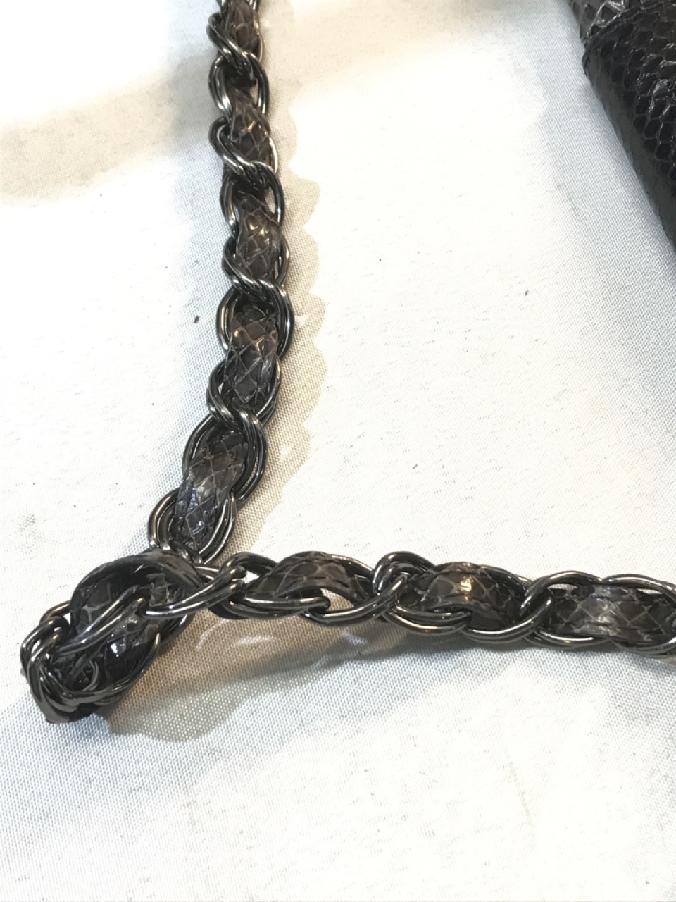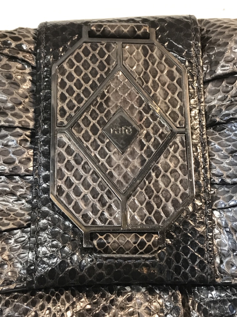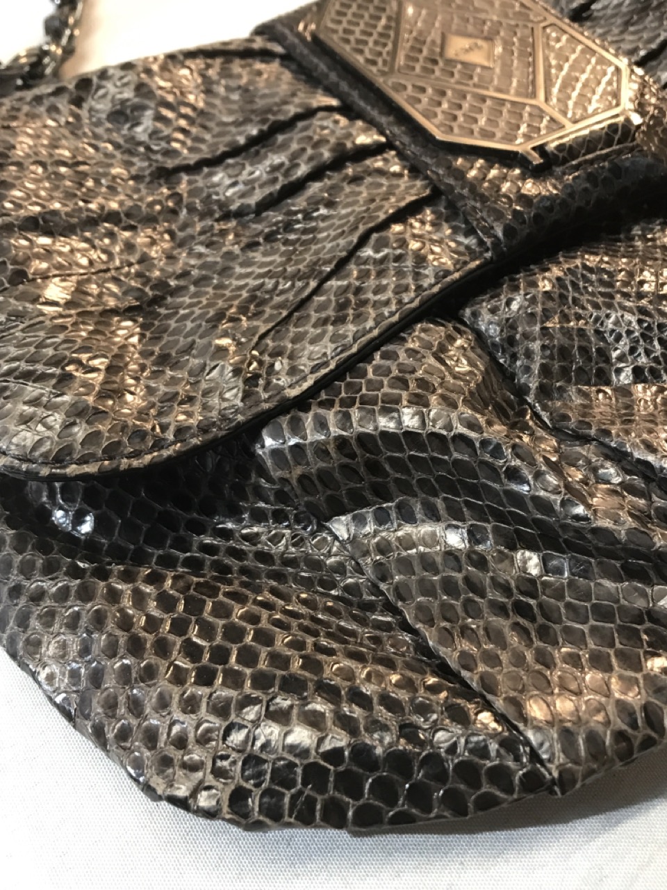 Vtg. Rafe' Snake Print Patent Leather Flap Chain Shoulder Bag - 13” x 9”