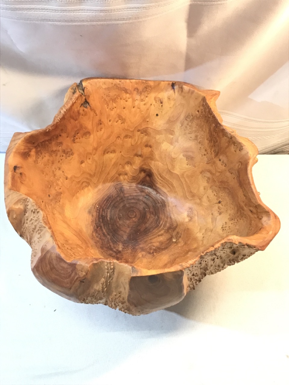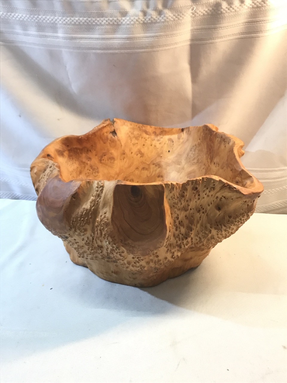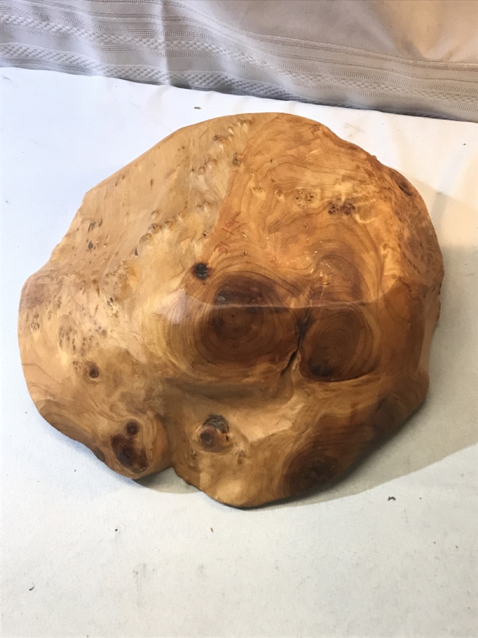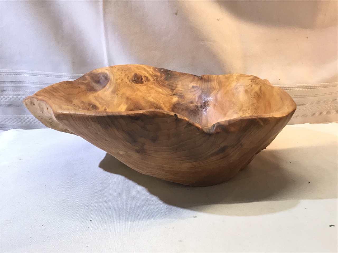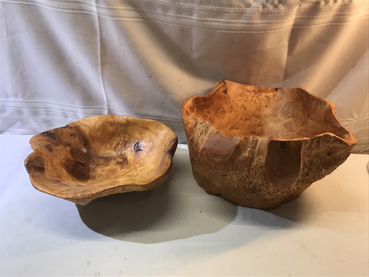Vtg. Hand Carved Burl Wood Bowls - One is 12" Around x 3 1/2" Tall, Other is 12" Around x 7 1/2' Tall