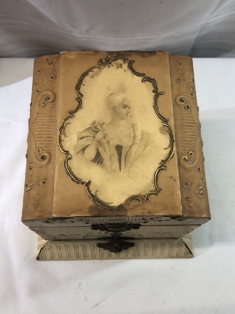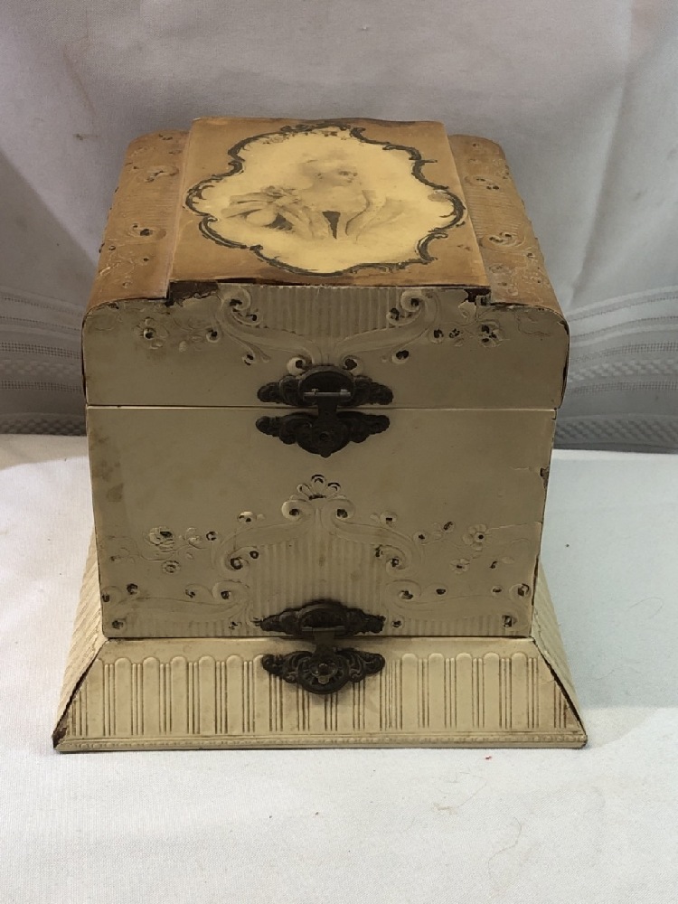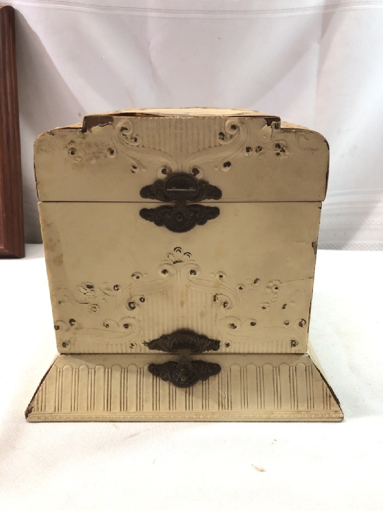 Victorian Collar Box - 2 Sections- Celluloid ~ 7 1/2” tall x 6 3/4” deep x 8” wide