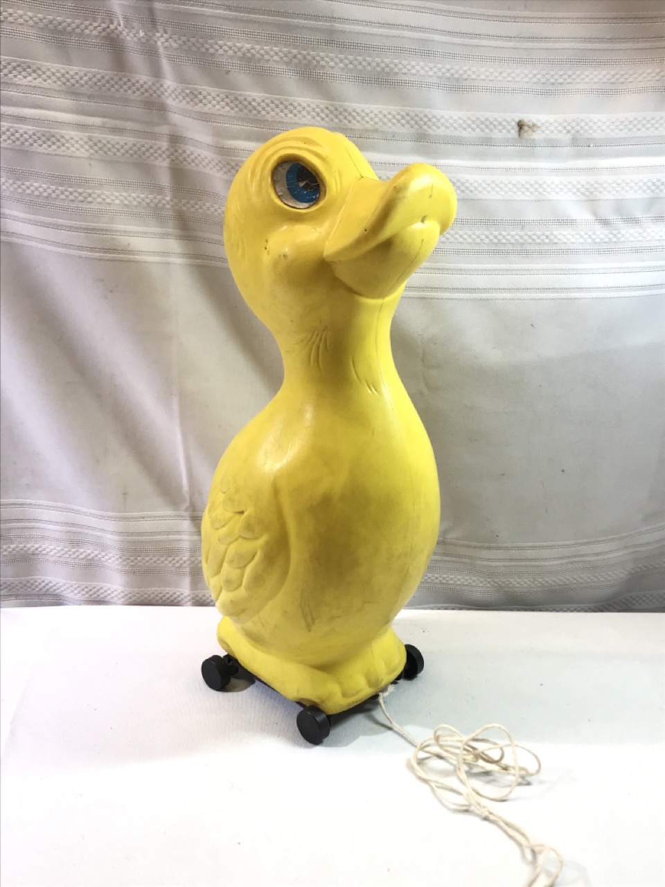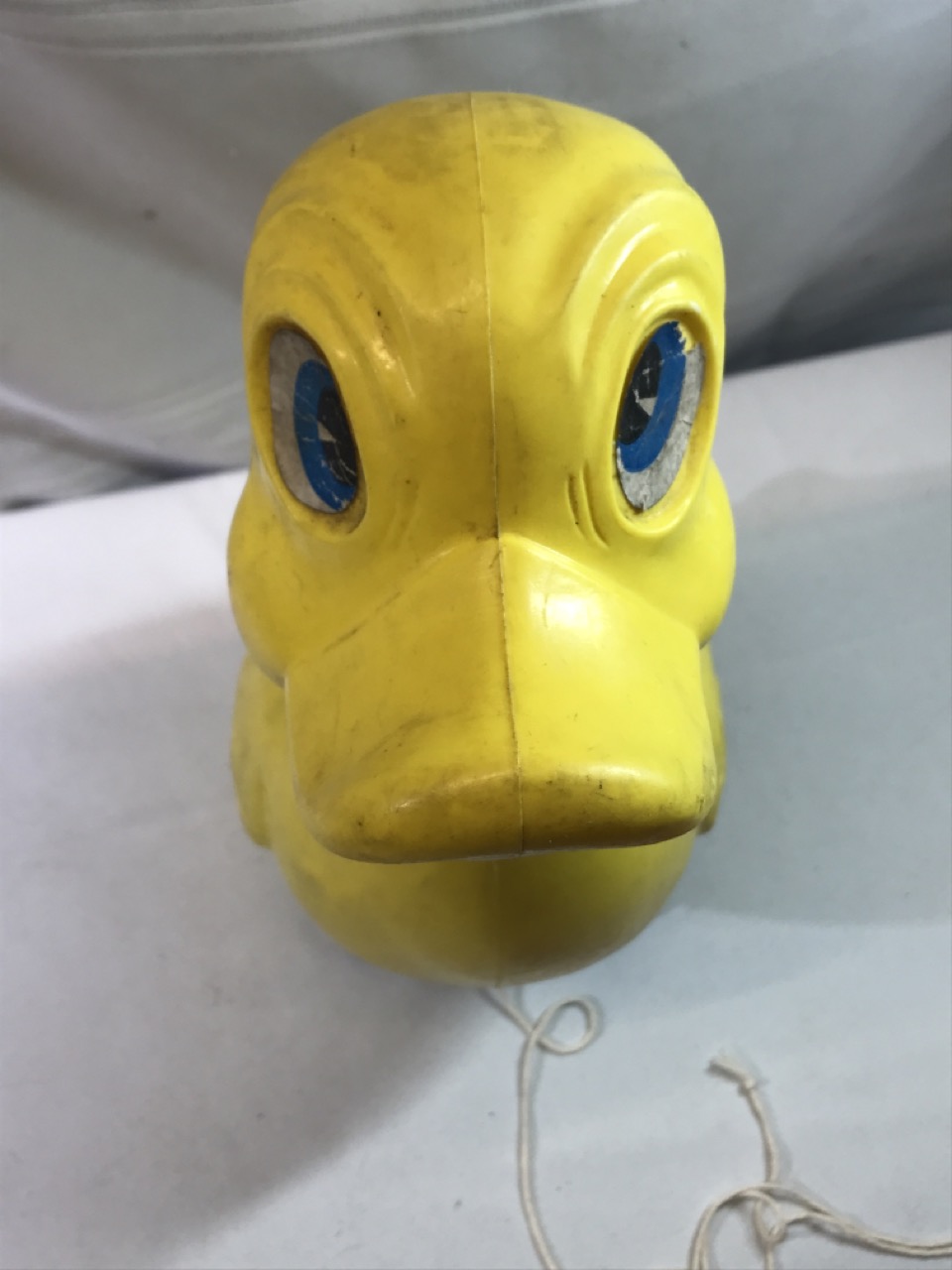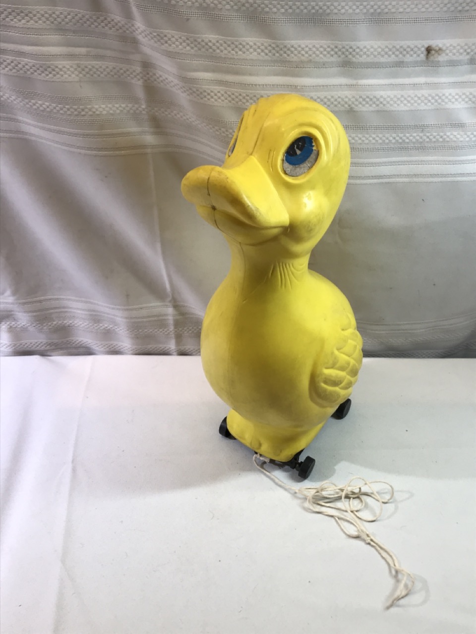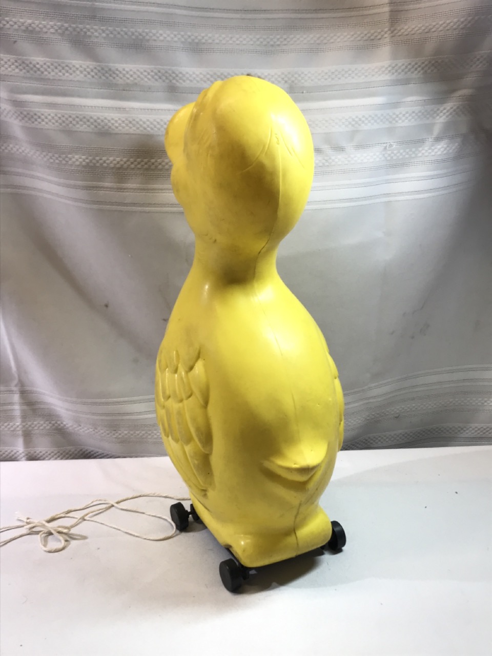 1965 Vtg. Louis Marx Rubber Blow Mold Yellow Duckling Pull Toy - Quacks when Squeezed- “Quackers the Duck” - 16 1/2” Tall