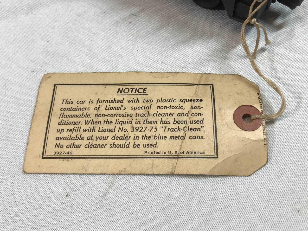 Lionel Track Cleaning Car With Original Clean Bottles and Factory Tag - No. 3927