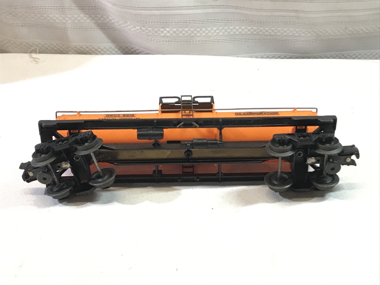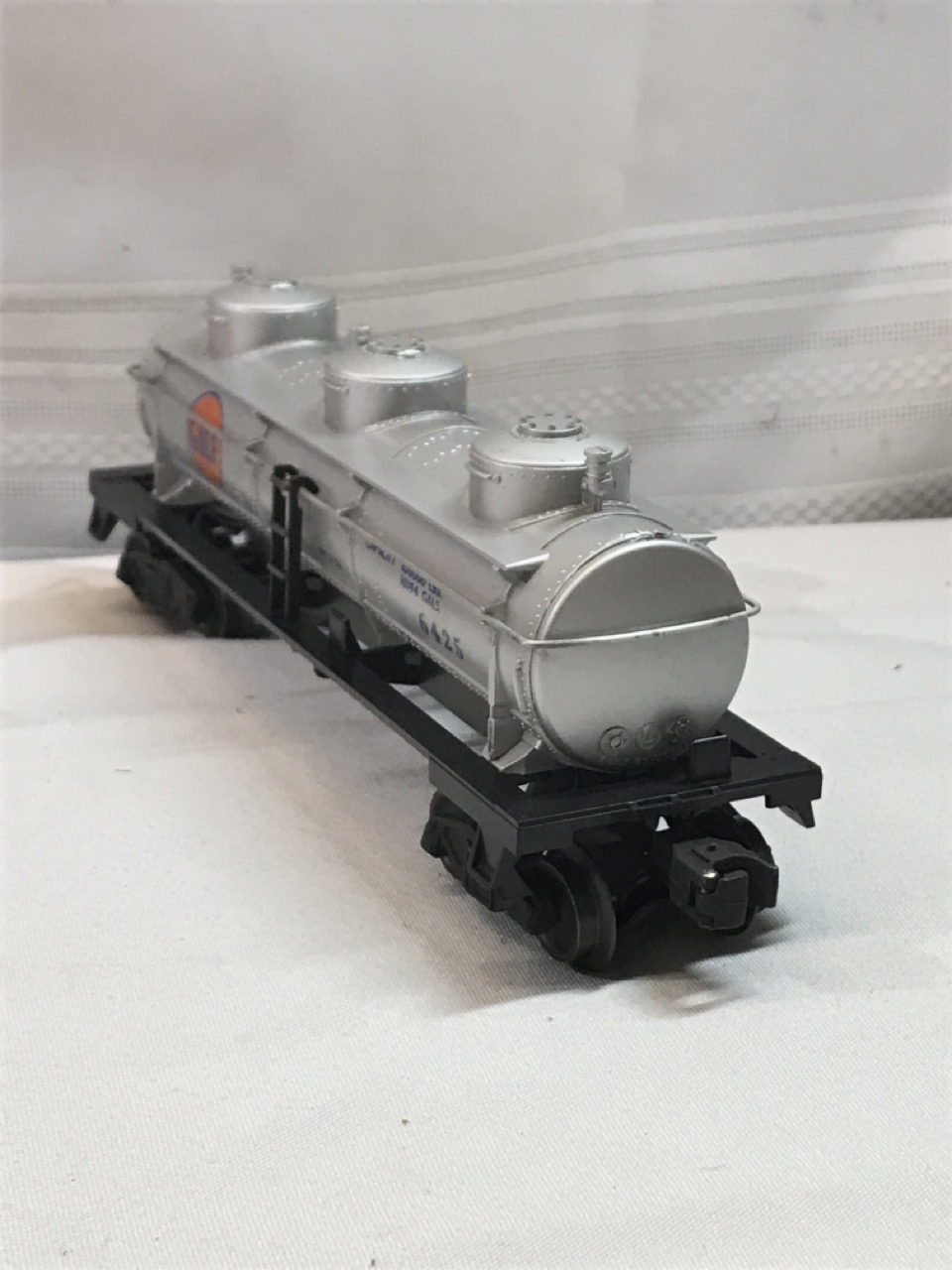 Lionel Gulf Train Cars - No. 6425 Gulf 3 Dome Tank Car and No. 6315 Gulf 1 Dome Chemical Tank Orange Plastic (with Build Date)