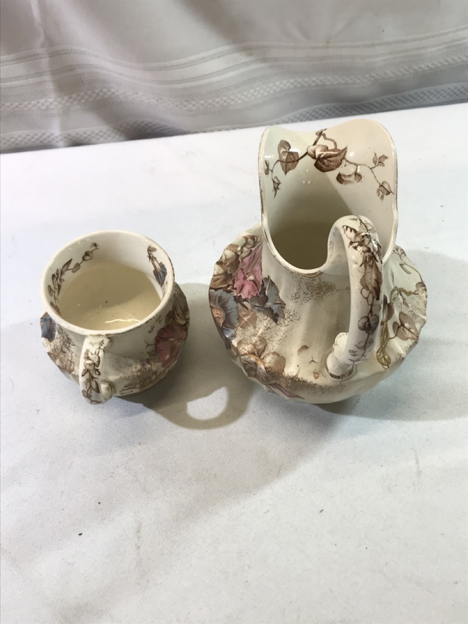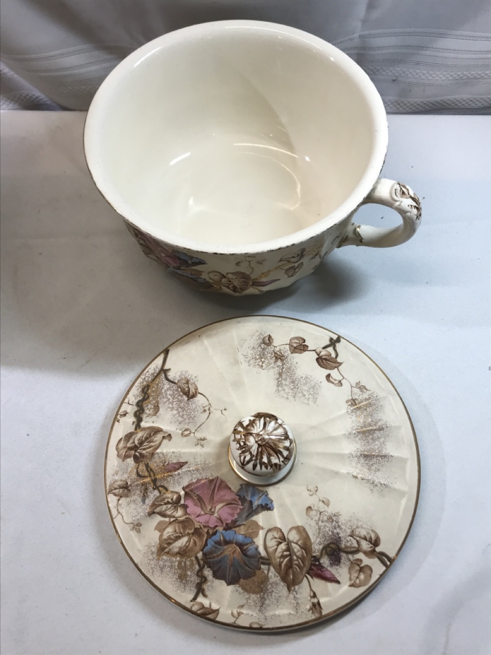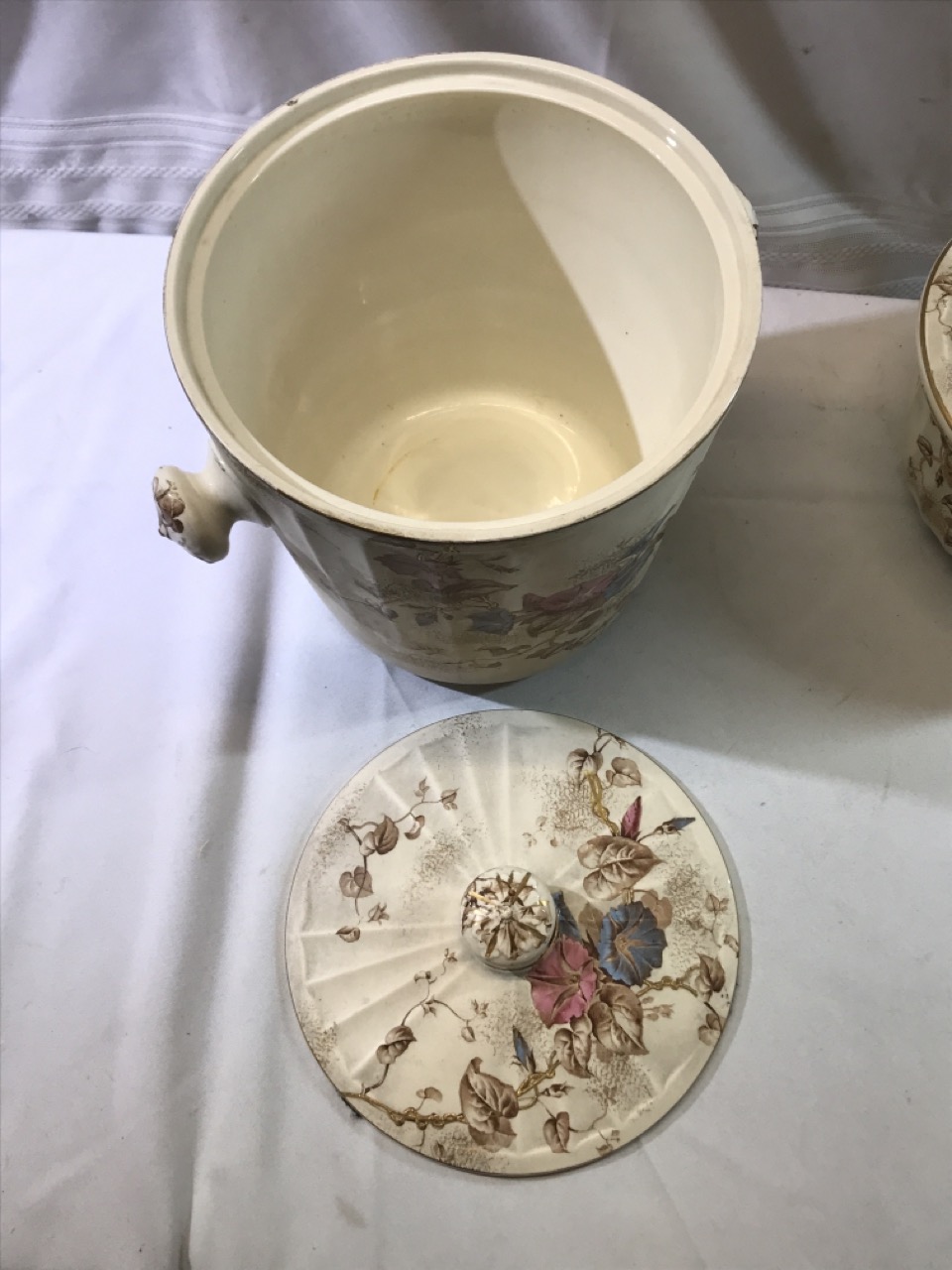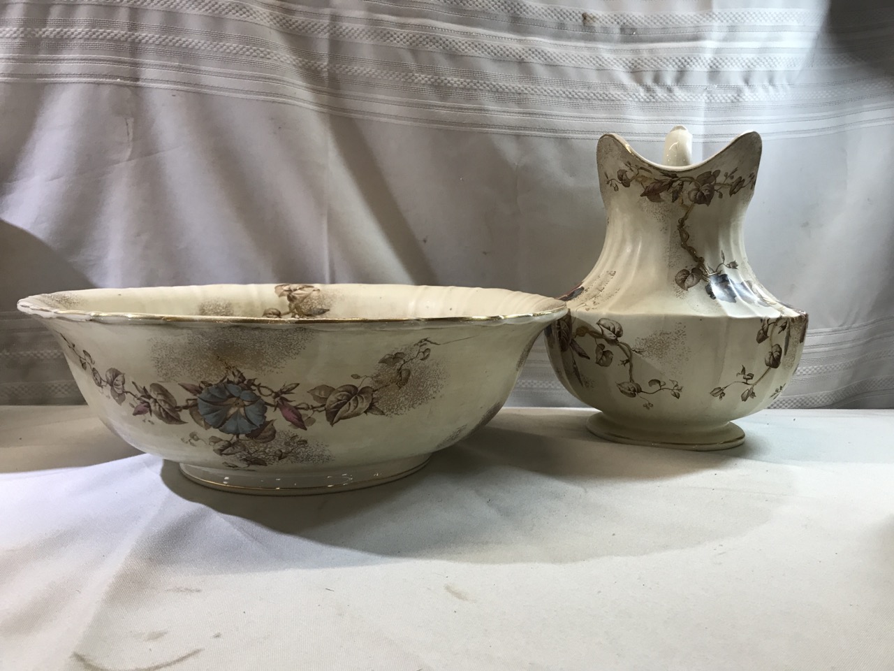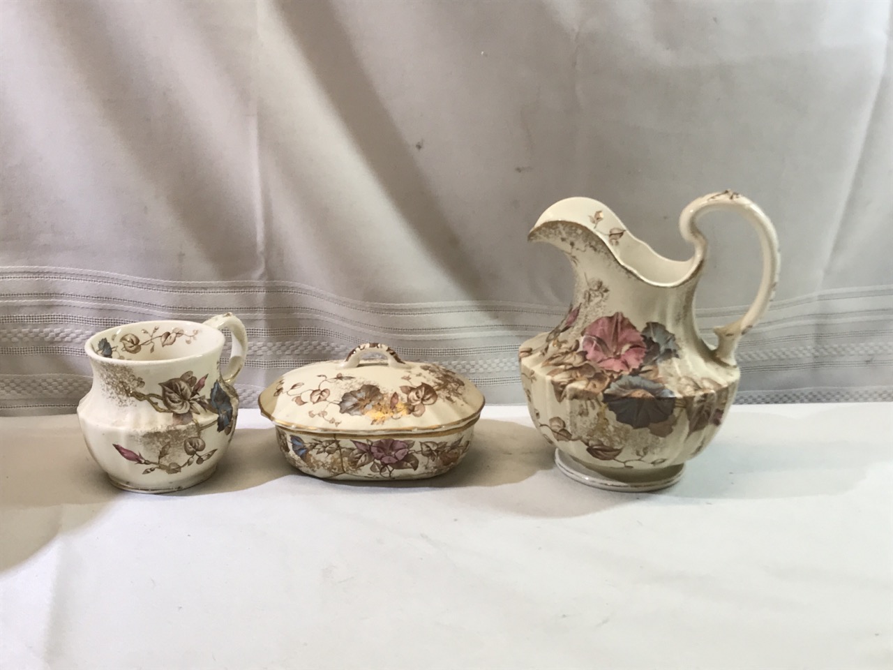 7pc BWM & Co. England Cauldon Ware Washstand Set - Morning Glory Design ~ Including Pitcher & Bowl, Shaving Mug, Pitcher, Soap Saver, Chamber Pot and Slop Jar