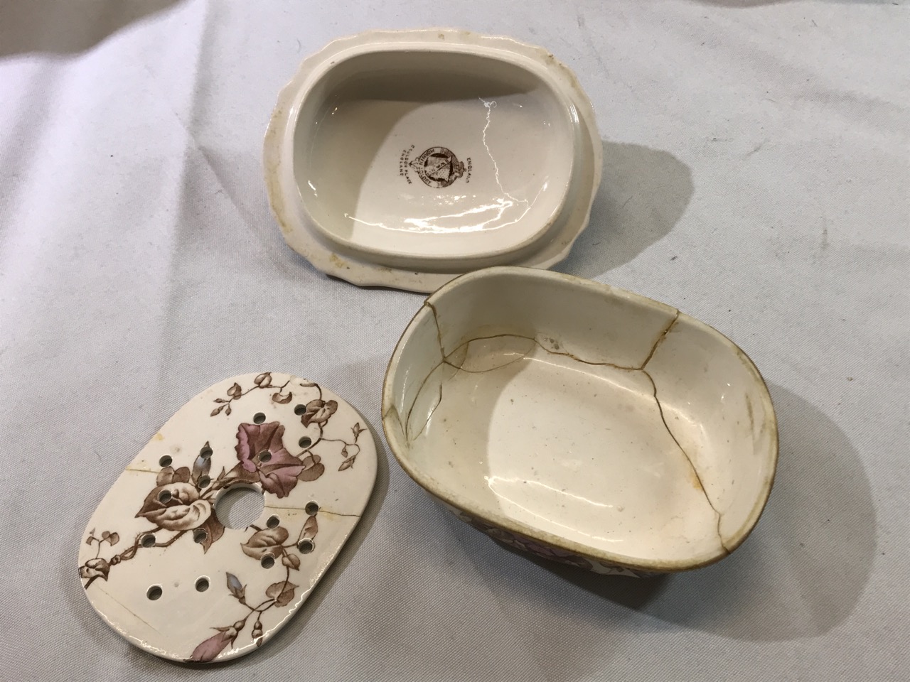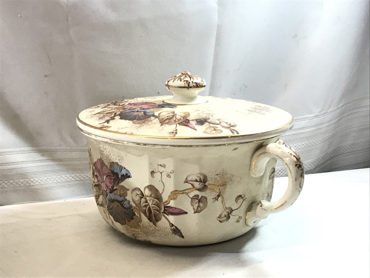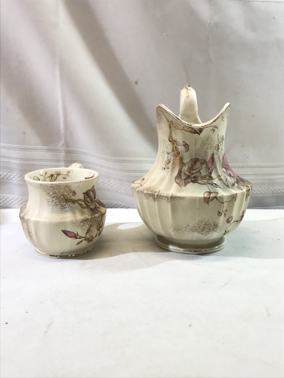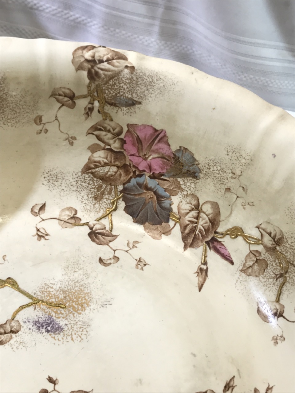 7pc BWM & Co. England Cauldon Ware Washstand Set - Morning Glory Design ~ Including Pitcher & Bowl, Shaving Mug, Pitcher, Soap Saver, Chamber Pot and Slop Jar