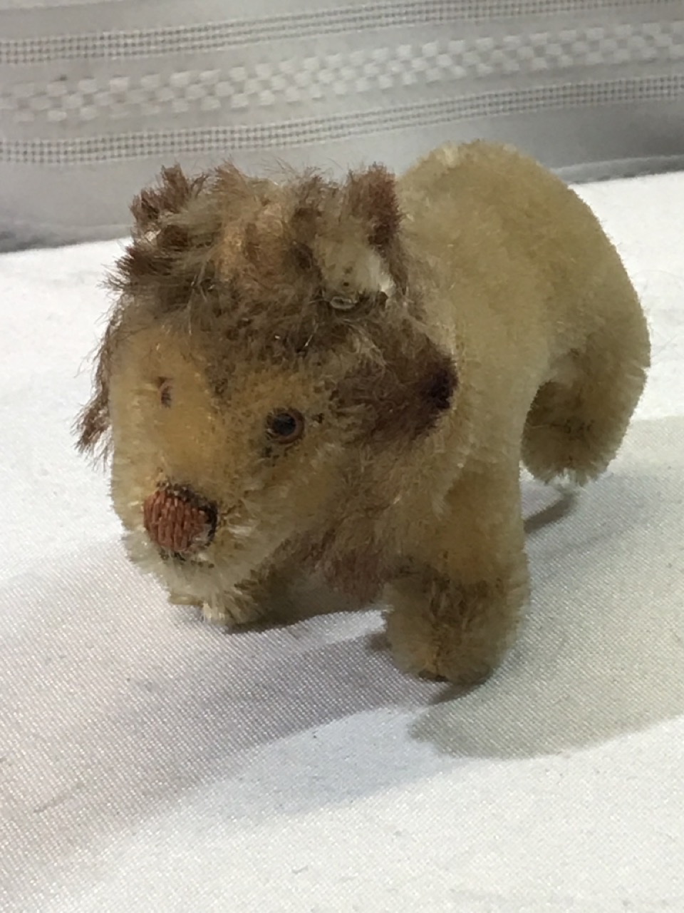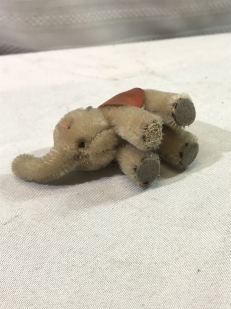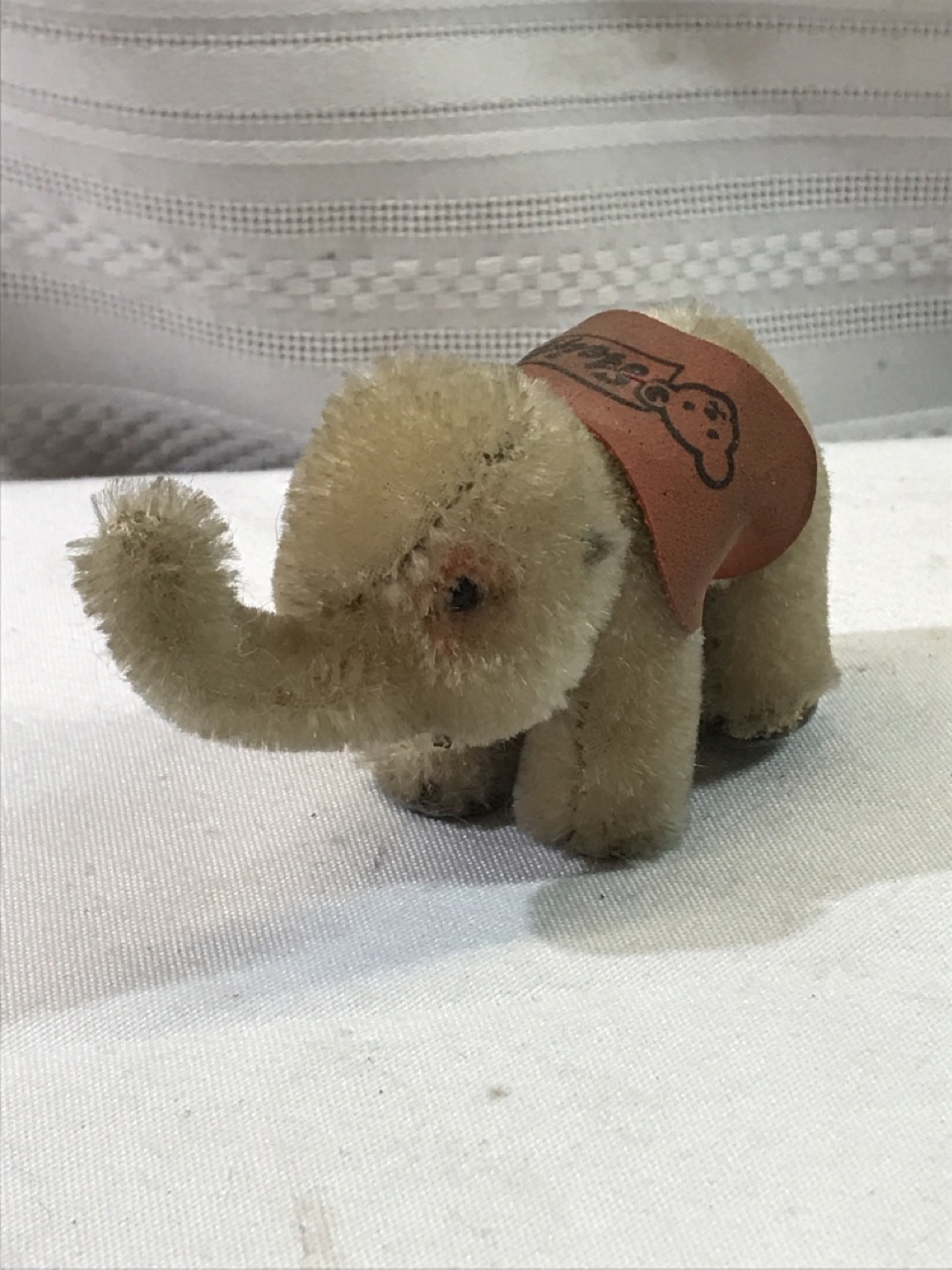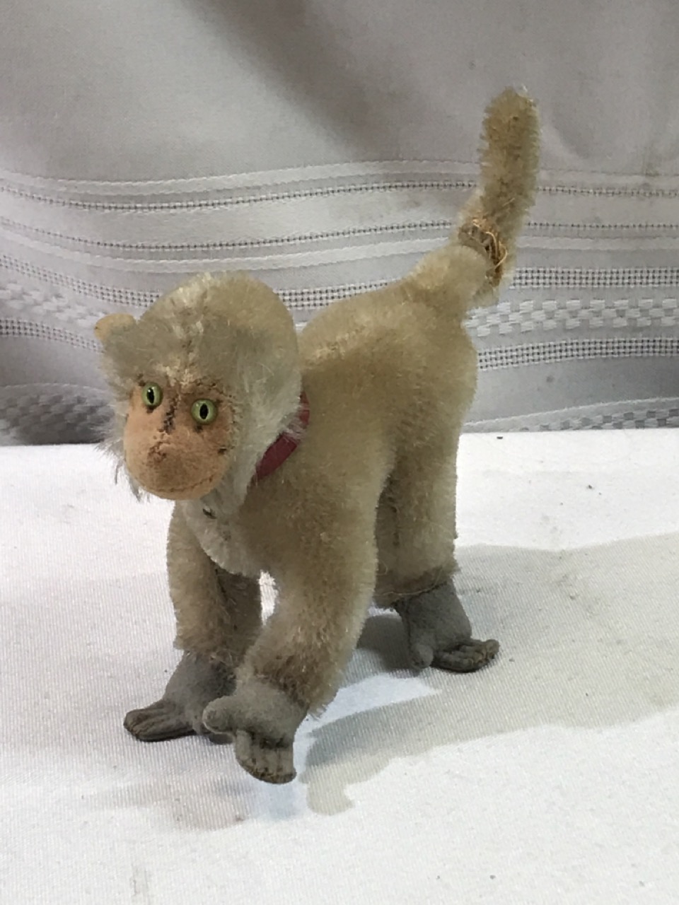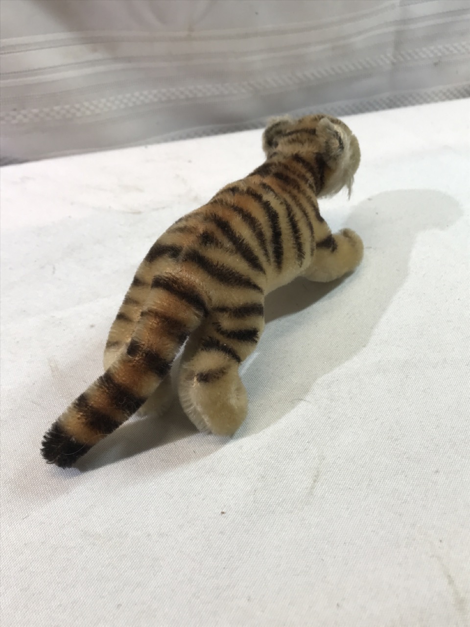 1950’s Steiff Miniature Stuffed Animals - Tiger, Elephant ( Missing Ear) , “Coco” Baboon Monkey (Damage to Tail and missing Ear) and Leo Lion (Missing Tail) - Range From 4” long to 8” Long