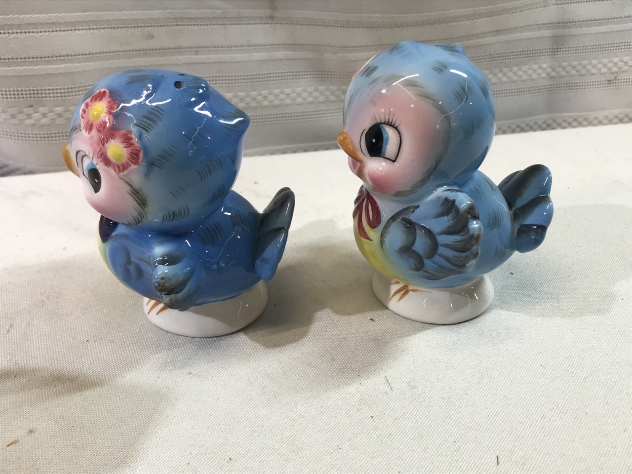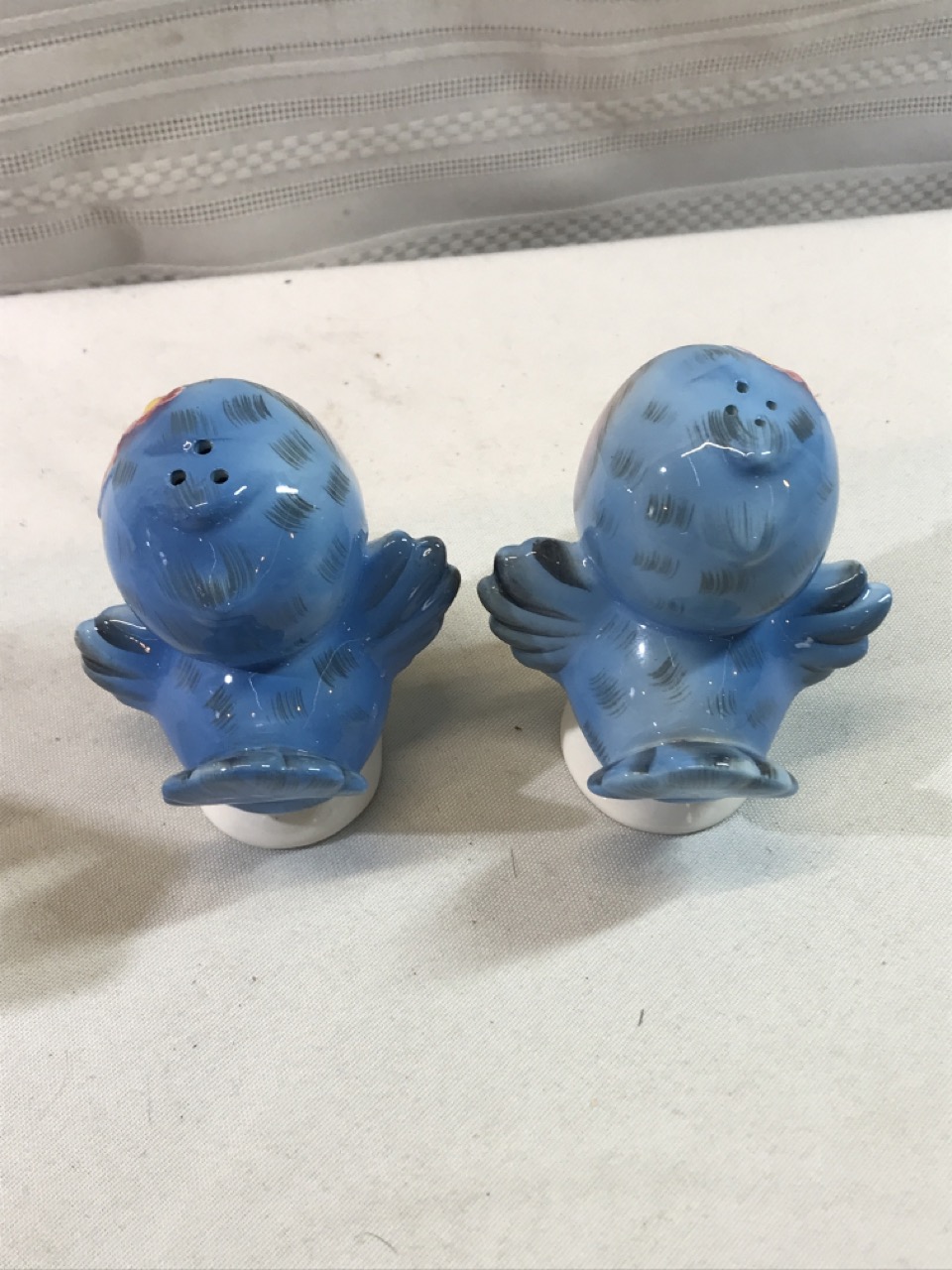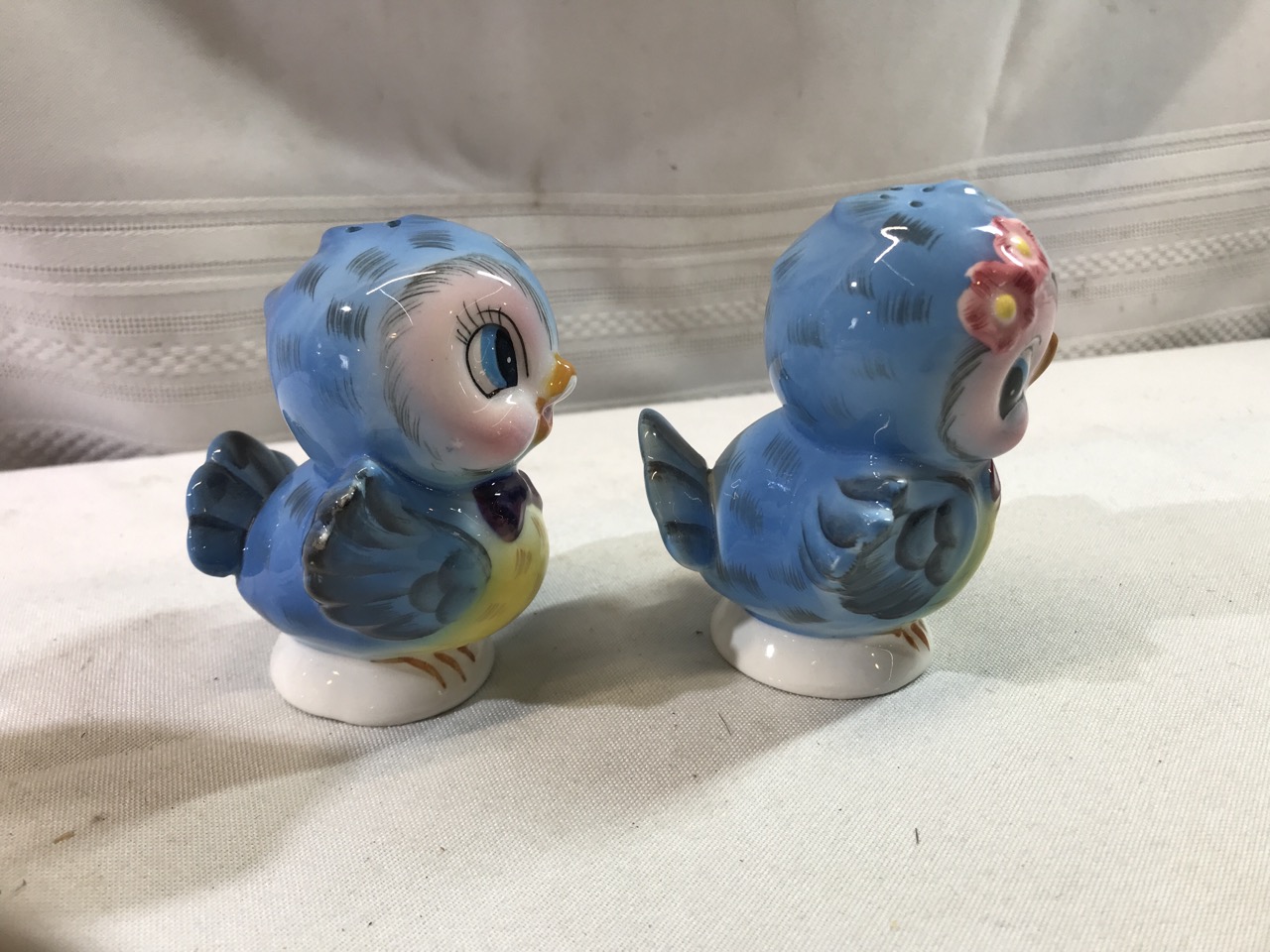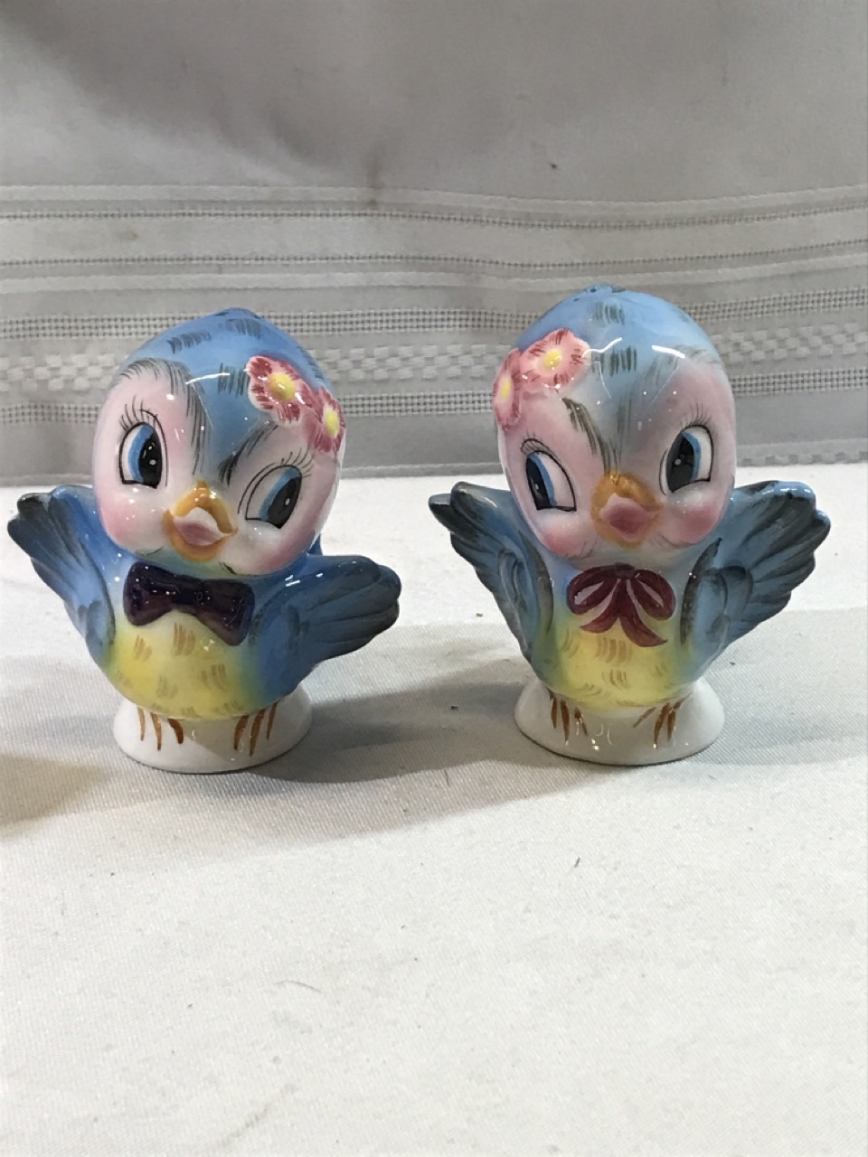 Vtg. 1950’s Lefton Bluebird S & P Shakers - Anthropomorphic~ 3 3/4” Tall ~ one Missing Cork