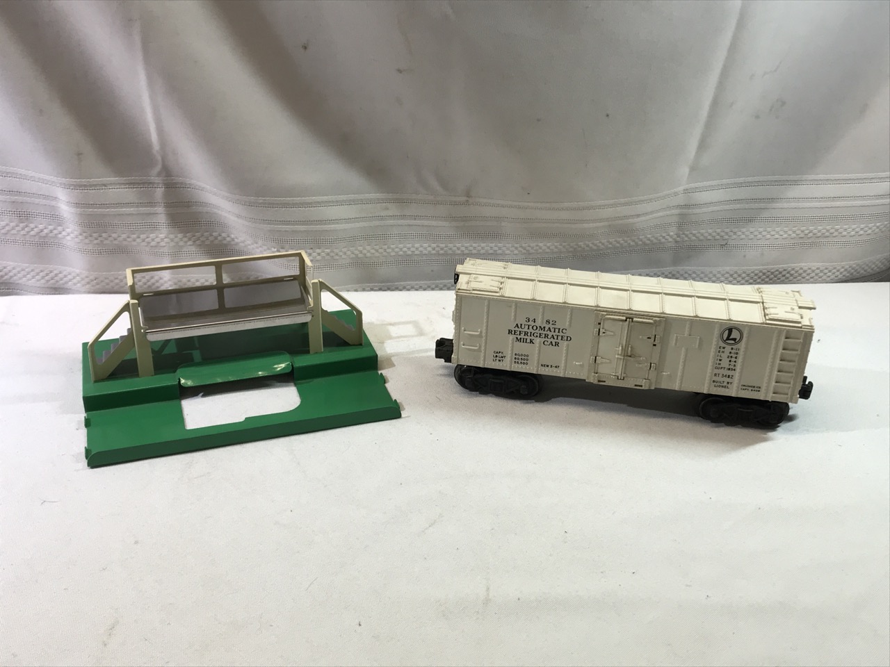 Lionel Operating Milk Car and Stand With 7 Cans - Cans in Car - No. 3482