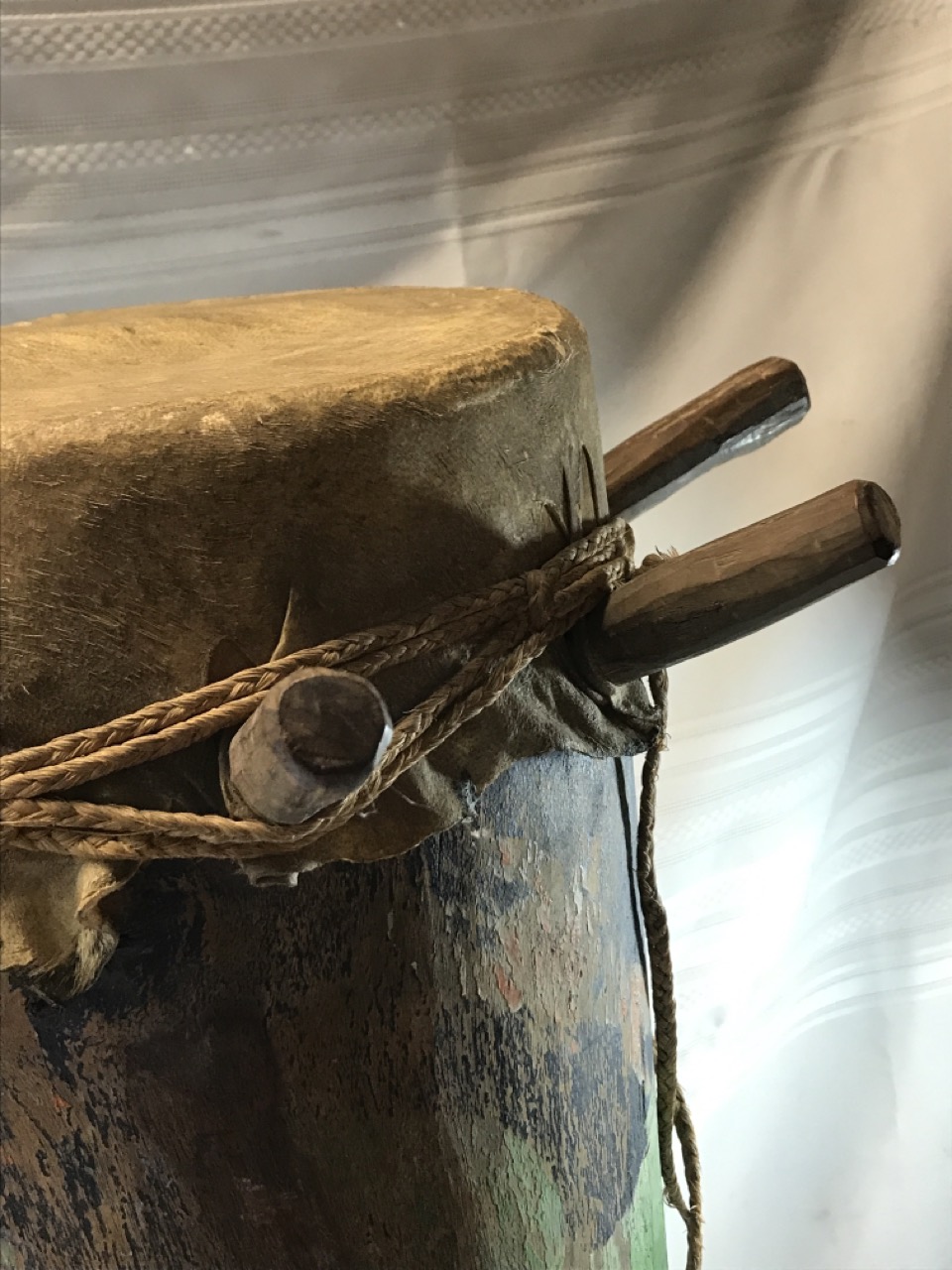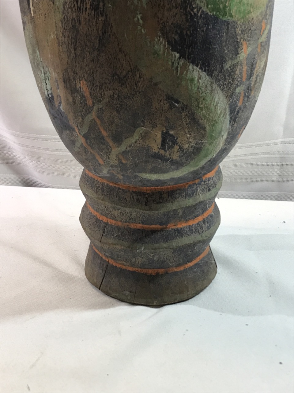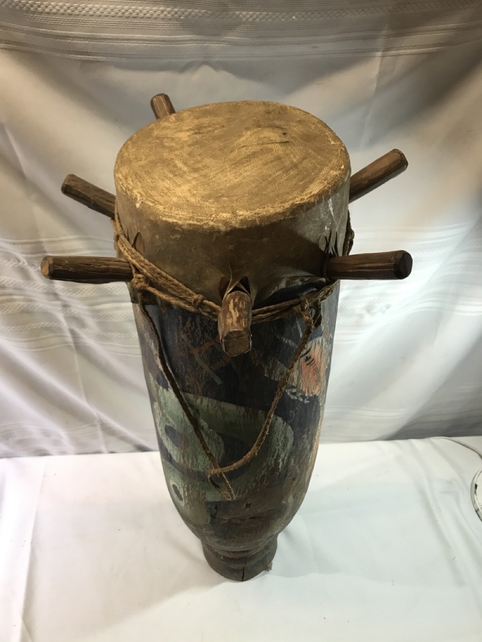 African Chokwe Drum ~ Hand Carved /Painted - 29 “ Tall x 7 1/2” around